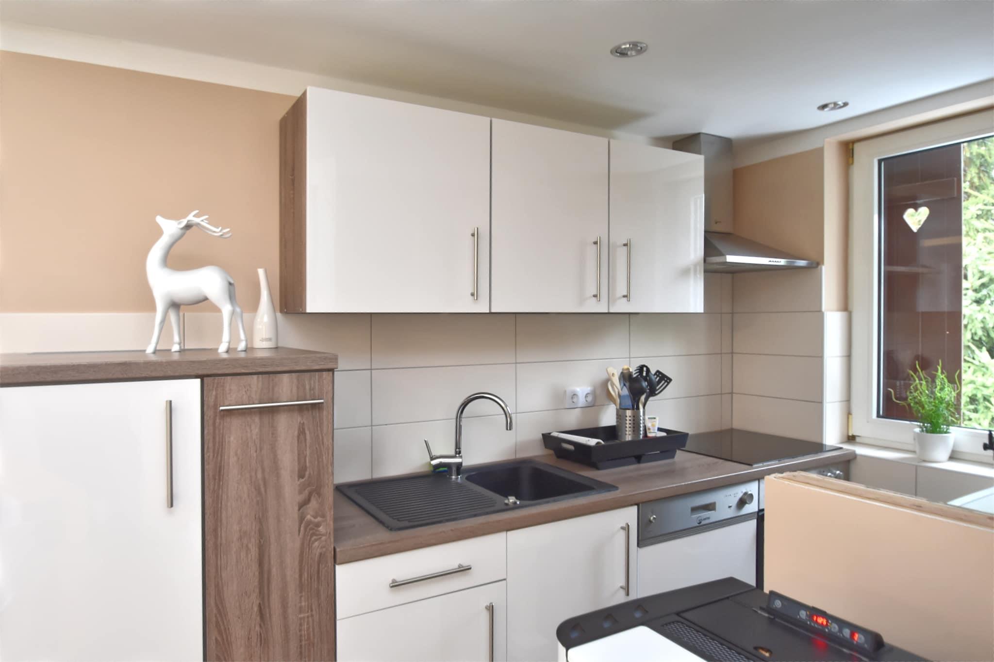 Denne indbydende tilflugtssted i stueetagen i Friedrichshöhe, Güntersberge tilbyder et hyggeligt og kæledyrsvenligt ophold midt i naturlig skønhed. Stuen/spisestuen har satellit-tv med hollandske kanaler, pillefyr, dvd-afspiller og radio - ideel til afslappede aftener. Det fuldt udstyrede åbne køkken inkluderer et keramisk komfur, ovn, mikroovn, brødrister, opvaskemaskine, køleskab med fryser og en fuldautomatisk filterkaffemaskine til selvforplejning uden stress. Gæsterne sover trygt i et soveværelse med 2 enkeltsenge med boxspring og et andet med en køjeseng, mens badeværelset har bruser, toilet, håndvask og hårtørrer. En pejs, vaskemaskine og insektnet giver ekstra komfort året rundt. Udendørs kan du slappe af på den overdækkede private terrasse (15 m²) eller nyde solen i den delvist indhegnede 300 m² store have med liggestole, liggestole, kulgrill og havemøbler. To private parkeringspladser giver nem adgang, hvilket gør dette til den perfekte base for familieferier eller naturrige weekendflugter. Med skove (5 km), søer (3 km) og langrend (3 km) i nærheden er det nemt at blande afslapning med udendørs eventyr. Essentials og restauranter ligger inden for 2-8 km, og offentlig transport - inklusive togstation og busstoppested - er kun 200 m væk.