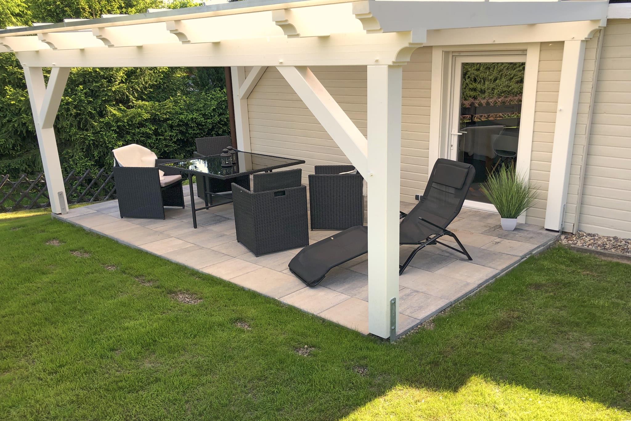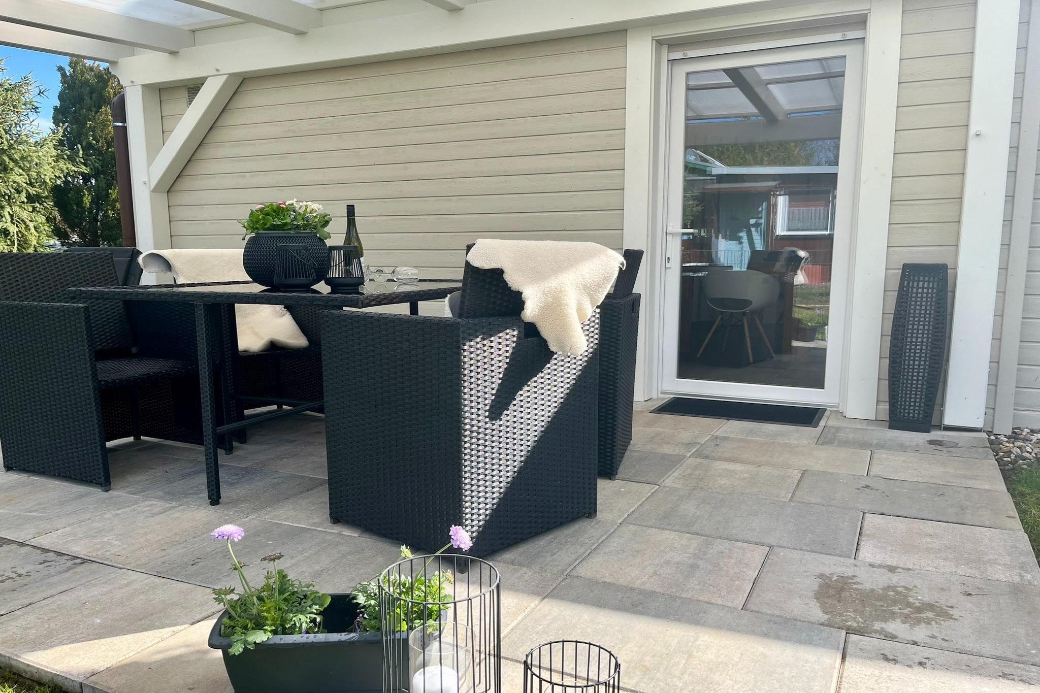 Stueetage: (Indgang , gang, åbent køkken(elkedel, brødrister, komfur(Komfur med fire kogeplader, glaskeramisk), kaffemaskine(kaffetragt, Fuldautomatisk), ovn, opvaskemaskine , køleskab(+ fryser)), stue / spisestue(Fjernsyn(fladskærm, parabol, Hollandske TV-kanaler), kakkelovn(pille), DVD-afspiller, radio), soveværelse(enkeltseng(boxmadras), enkeltseng(boxmadras)), soveværelse(køjeseng), badeværelse(bruser, håndvask, toilet, føntørrer)) pejs, mikrobølgeovn, vaskemaskine, terrasse(privat, overdækket, 15 m2), have(privat, delvist indhegnet, 300 m2), havemøbler, solstole, grill(trækul), 2x parkering, liggestole, insektnet