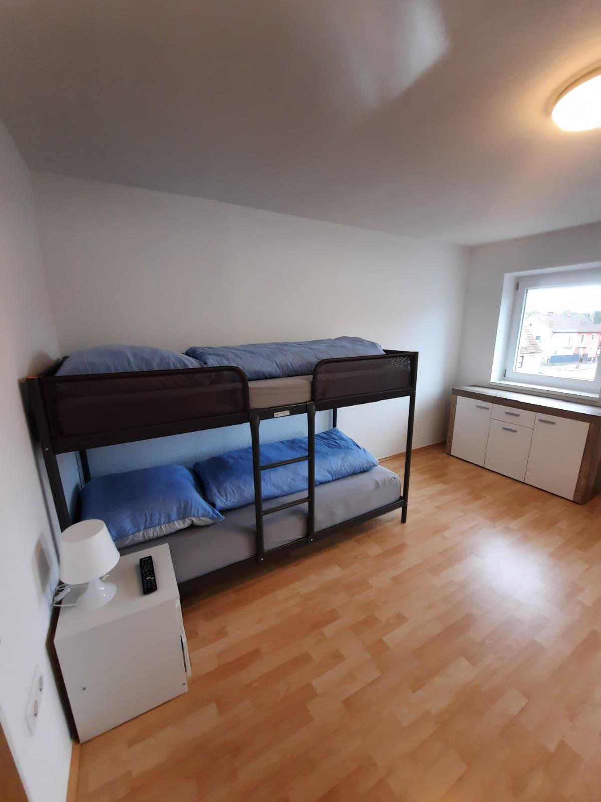 Die Ferienwohnung verfügt über 2 Schlafzimmer (Ein Schlafzimmer mit Doppelbett und ein Schlafzimmer mit einem Stockbett und dem erweiterbaren Einzelbett und Sat TV Smartfernseher mit allen gängigen Streamingapps wie Netflix, YouTube...). Auf Wunsch kann im Schlafzimmer mit Doppelbett ebenfalls ein Kinderbett zusätzlich zur Verfügung gestellt werden.