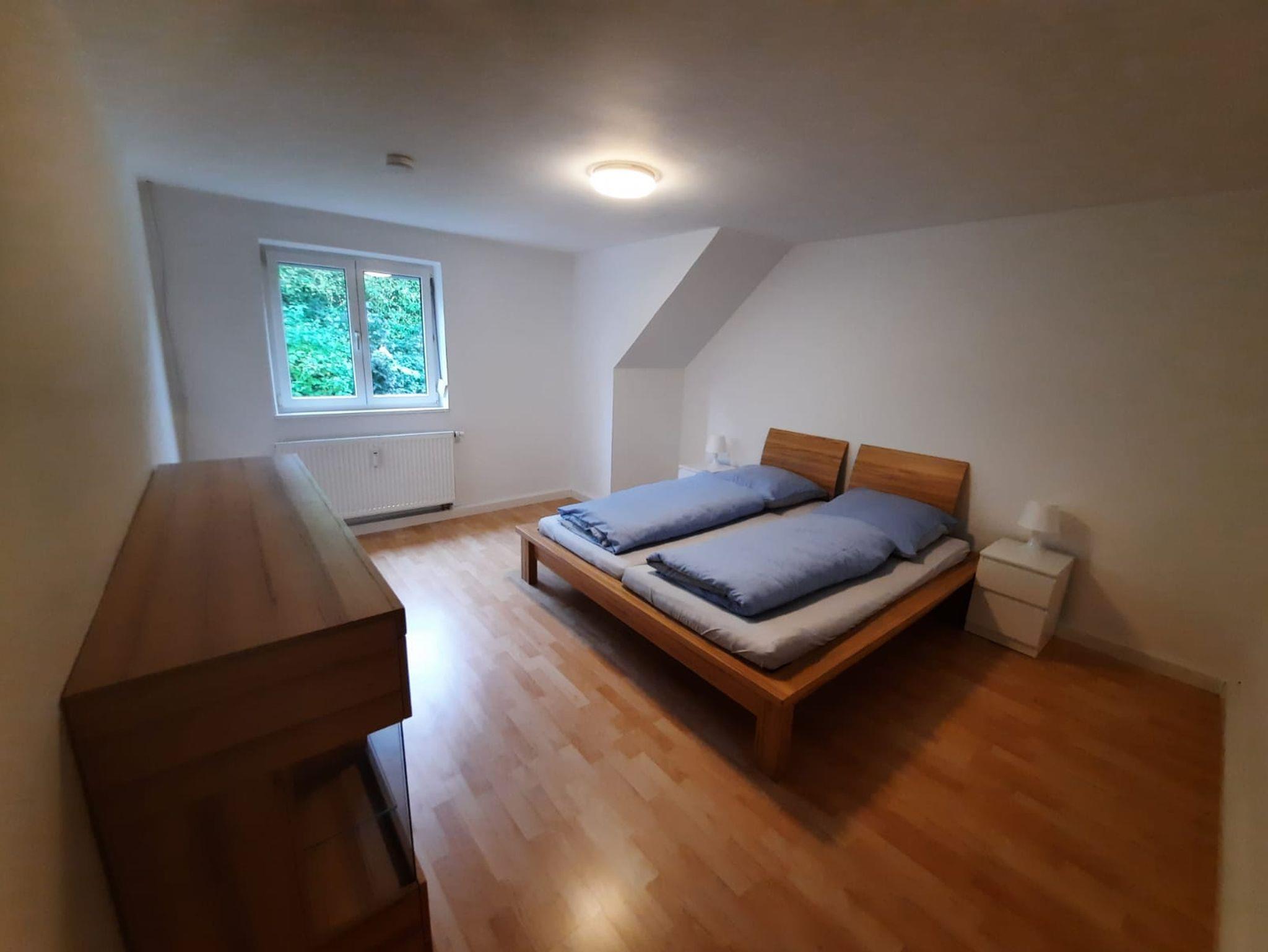 Die Ferienwohnung verfügt über 2 Schlafzimmer (Ein Schlafzimmer mit Doppelbett und ein Schlafzimmer mit einem Stockbett und dem erweiterbaren Einzelbett und Sat TV Smartfernseher mit allen gängigen Streamingapps wie Netflix, YouTube...). Auf Wunsch kann im Schlafzimmer mit Doppelbett ebenfalls ein Kinderbett zusätzlich zur Verfügung gestellt werden.
