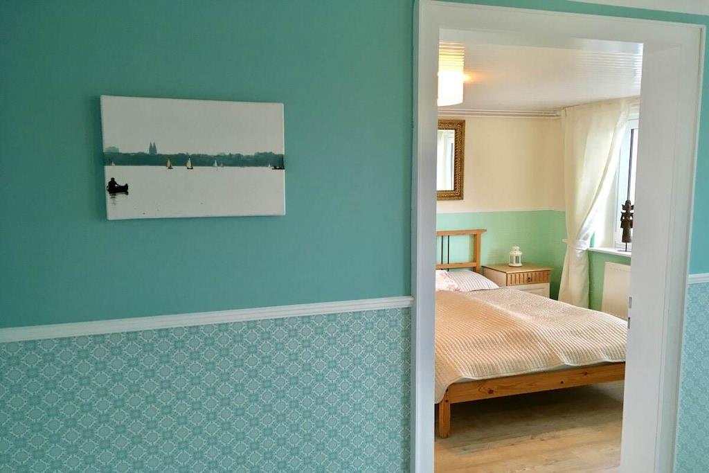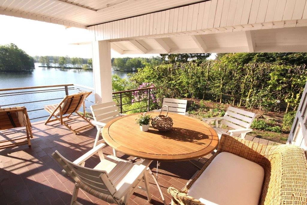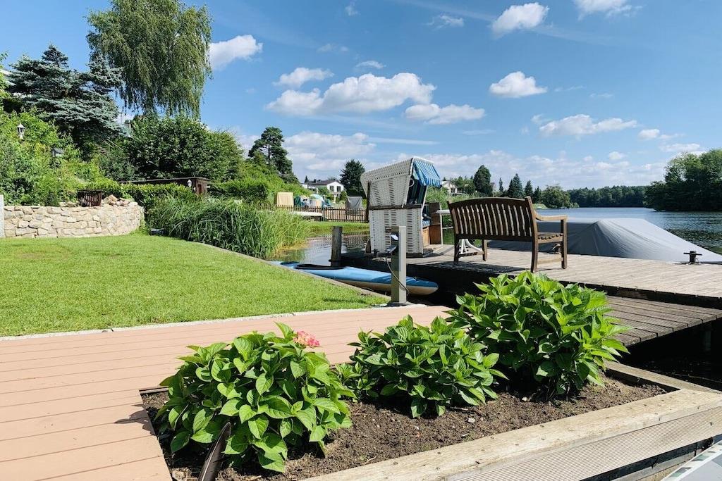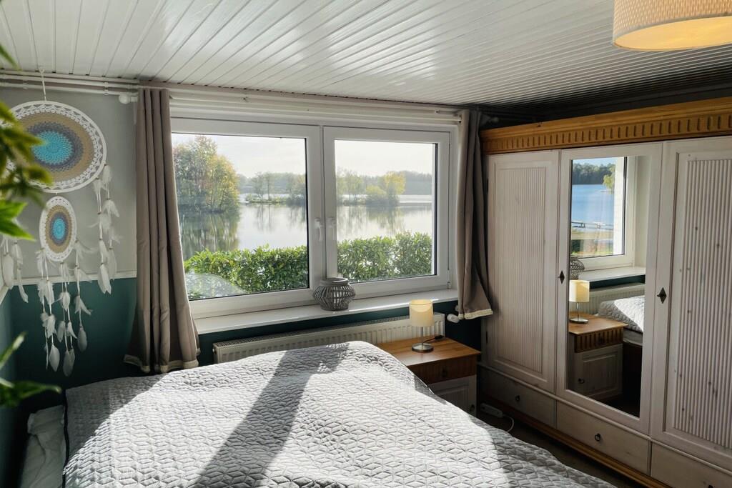 Das Ferienhaus liegt idyllisch in einem großen Garten und bietet auf 130m² Wohnfläche einen lichtdurchfluteten Wohn- und Essbereich mit herrlichem Seeblick, drei Schlafzimmer, eine Küche mit Einbauküche, ein Badezimmer mit Dusche und WC sowie eine Terrasse und einen Balkon. Der gemütliche Wohnbereich ist mit einem Fernseher mit Netflix und einem Bluetooth-Radio ausgestattet. Ein Kaminofen sorgt nach einem Spaziergang für wohlige Wärme. Im Erdgeschoss befinden sich zwei Schlafzimmer. Eine Treppe führt in das Souterrain, wo ein Familienzimmer mit direktem Zugang zu einem Freisitz und Seeblick liegt. Schatten- und Sonnenplätze im Garten laden zur Entspannung ein. Mit dem Ruderboot können Sie den See erkunden.