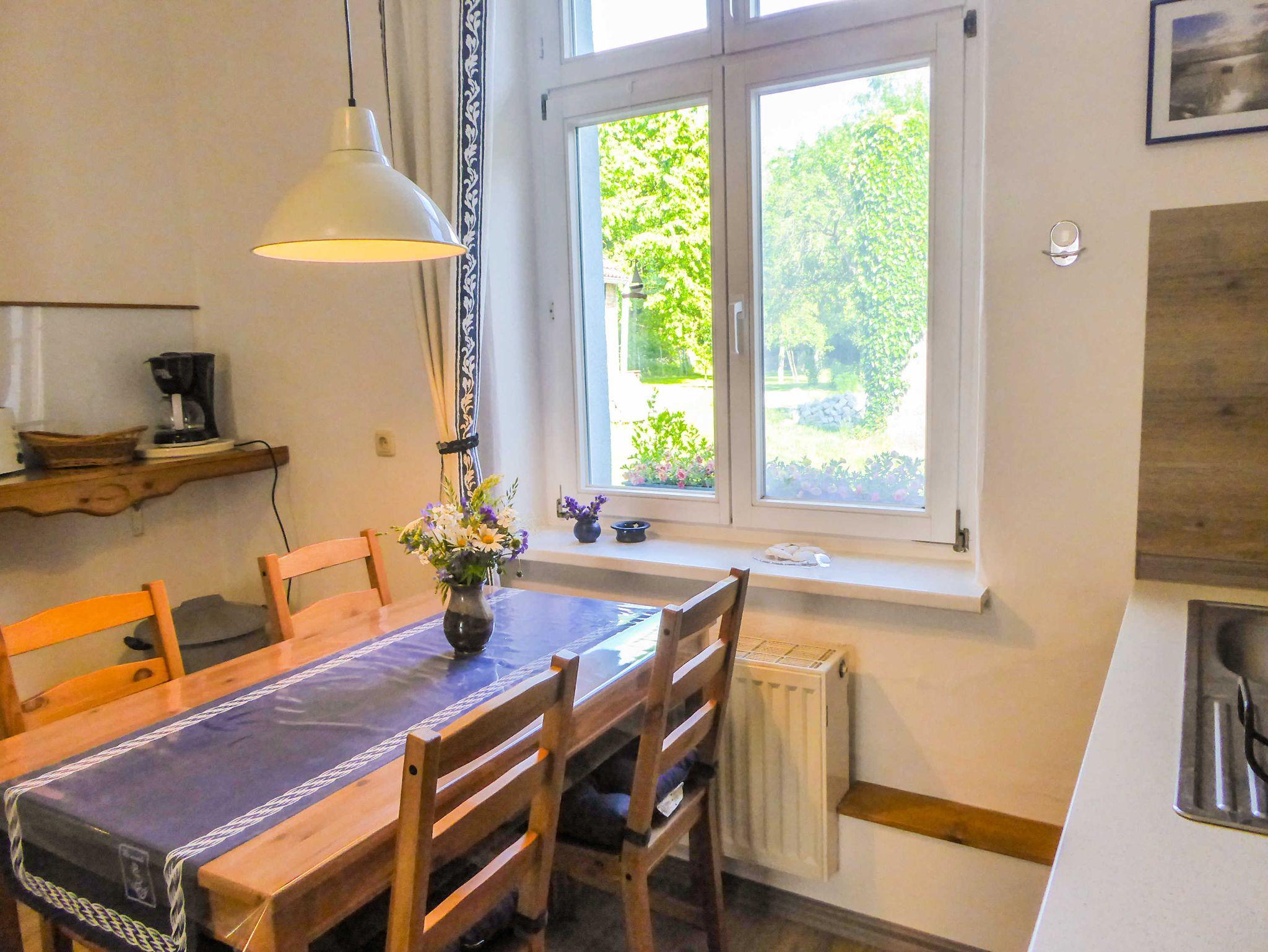 In einem Gebäude des frühen 19. Jahrhunderts, der ehemaligen Dorfschule, befindet sich heute eine ruhige 60 m² große Ferienwohnung. Generationen von Dorfschullehrern haben hier schon gewirkt und gewohnt. Die Wohnung ist ideal für zwei Personen. Helle großzügige Räume, modern und gemütlich eingerichtet, stehen Ihnen zur Verfügung. Das Wohnzimmer sowie ein separates Schlafzimmer laden zum Wohlfühlen ein. Internet (WLAN) ist kostenfrei vorhanden.