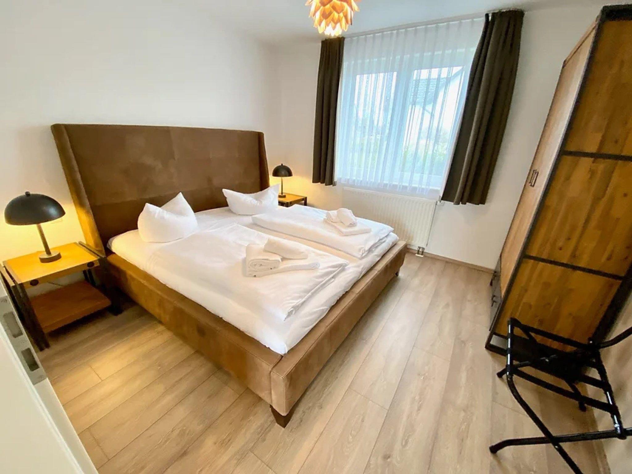 • 2 Schlafzimmer mit je einem 1,80 m breiten Doppelbett und 1 Schlafzimmer mit 2 je 90 cm breiten Einzelbetten