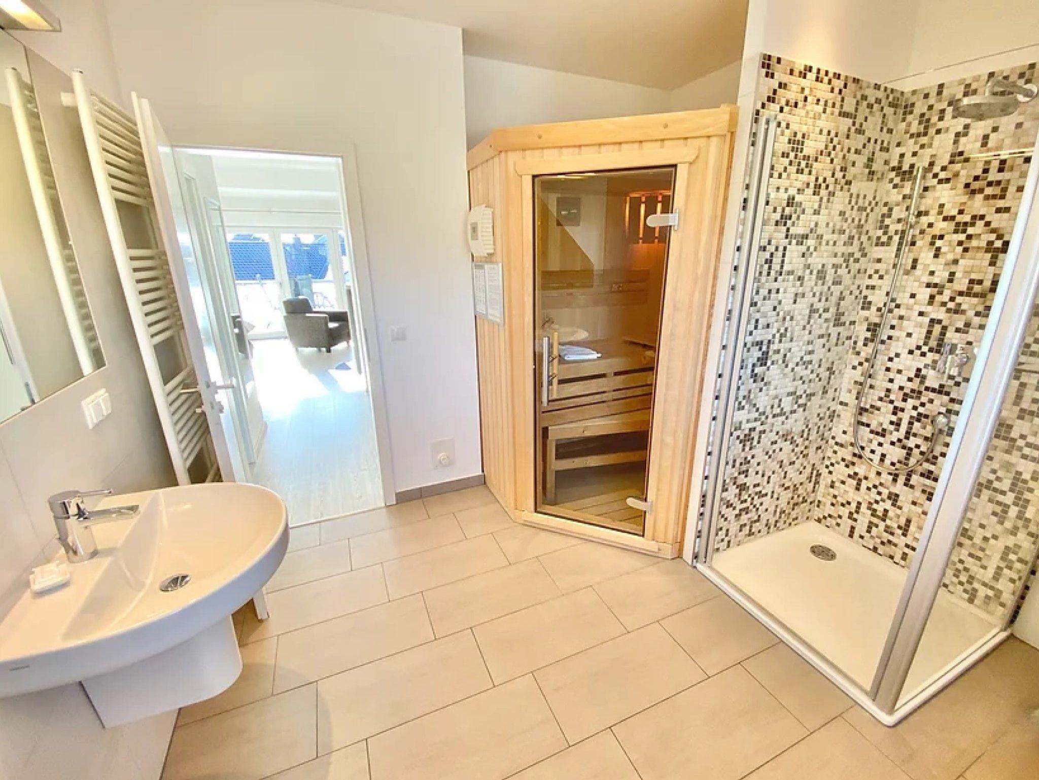 Die 3-Zimmer-Ferienwohnungen DELUXE erstrecken sich über zwei Etagen, so dass Sie sich fast wie in einem eigenen Haus fühlen. Als besonderen Clou gibt es in jeder Wohnung eine private Sauna und einen Kamin. Große Fenster schaffen lichtdurchflutete Räume, hohe Decken und eine großzügige Raumaufteilung eine befreiende Luftigkeit. Die hochwertigen Möbel und stilvollen Accessoires werden höchsten Designansprüchen gerecht. Die tageslichtdurchfluteten Badezimmer sind extrem geräumig und besitzen ein Bidet. Jede Wohnung verfügt über einen großzügig bemessenen Balkon mit einem schönen Blick auf die Zickerschen Berge.