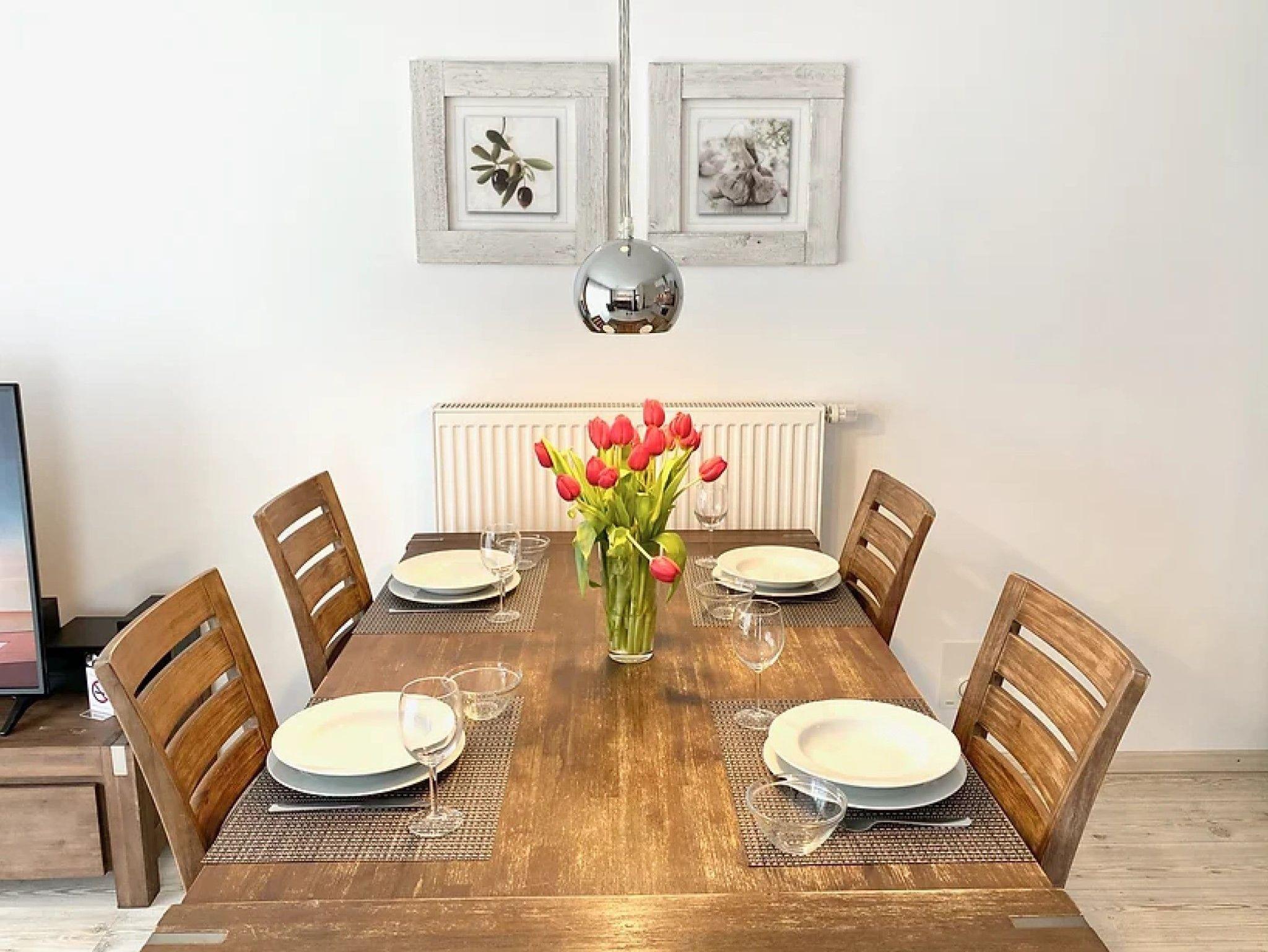 Die ca. 60 qm große 2-Zimmer Ferienwohnung DELUXE befindet sich im Erdgeschoss und bietet eine Terrasse mit eigenem Garten. Die Wohnung eignet sich für 1-2 Personen.