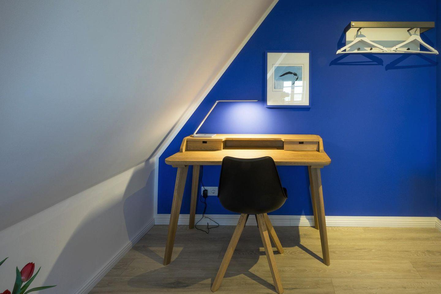 Die Wohnung beherbergt eine kleine Sammlung maritimer Holzschnitte und ist – inspiriert vom Bauhausstil - in kräftigen Farben und kontrastreichem schwarz-weiß gestaltet. Kunst und Farben in Verbindung mit der endlosen Weite im Rhythmus der Gezeiten, wechselnde Himmelslandschaften in atemberaubenden Lichtstimmungen bieten Genuss und Erholung pur. Für Fahrräder steht ein abschließbarer Abstellraum zur Verfügung.