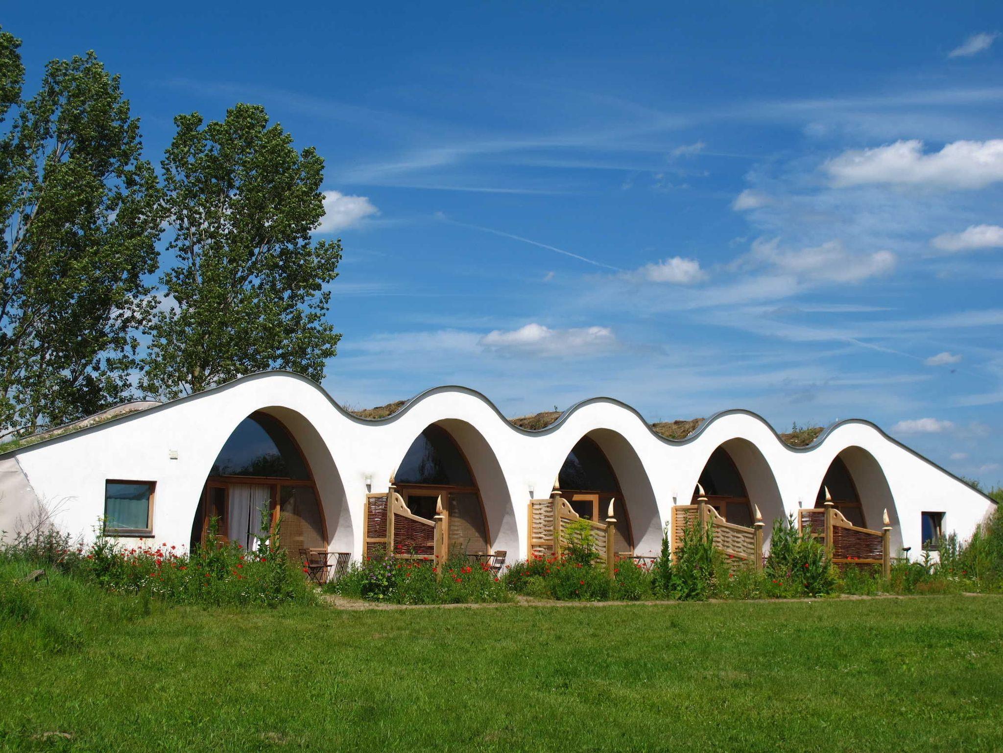 Die Tonnen, wie die einzigartigen, geschwungenen Ferienunterkünfte auf dem Wangeliner Gartengelände intern genannt werden, wurden von einem engagierten Team um Professor Gernot Minke erbaut. Im Jahr 2015 fertiggestellt, sind diese Gästeunterkünfte ein außergewöhnliches Meisterwerk. Sie sind der erste selbsttragende Tonnengewölbebau aus Strohballen, der in Deutschland genehmigt wurde.