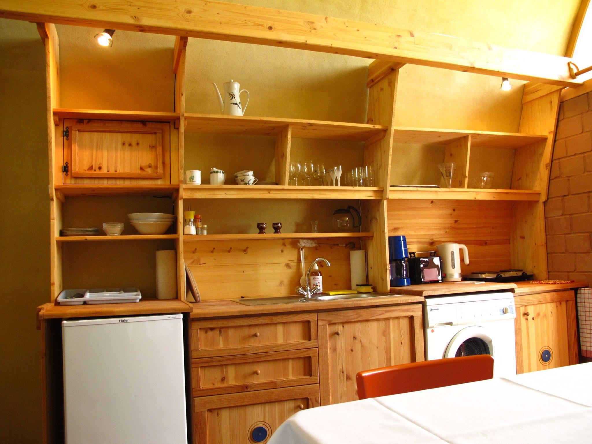 Die Küche, die Teil des Raumes ist, bietet Ihnen die Möglichkeit, einfache Mahlzeiten zuzubereiten. Dafür stehen Ihnen ein Kühlschrank, Kochplatten, Wasserkocher, Toaster, Kaffeezubereiter sowie Geschirr zur Verfügung.