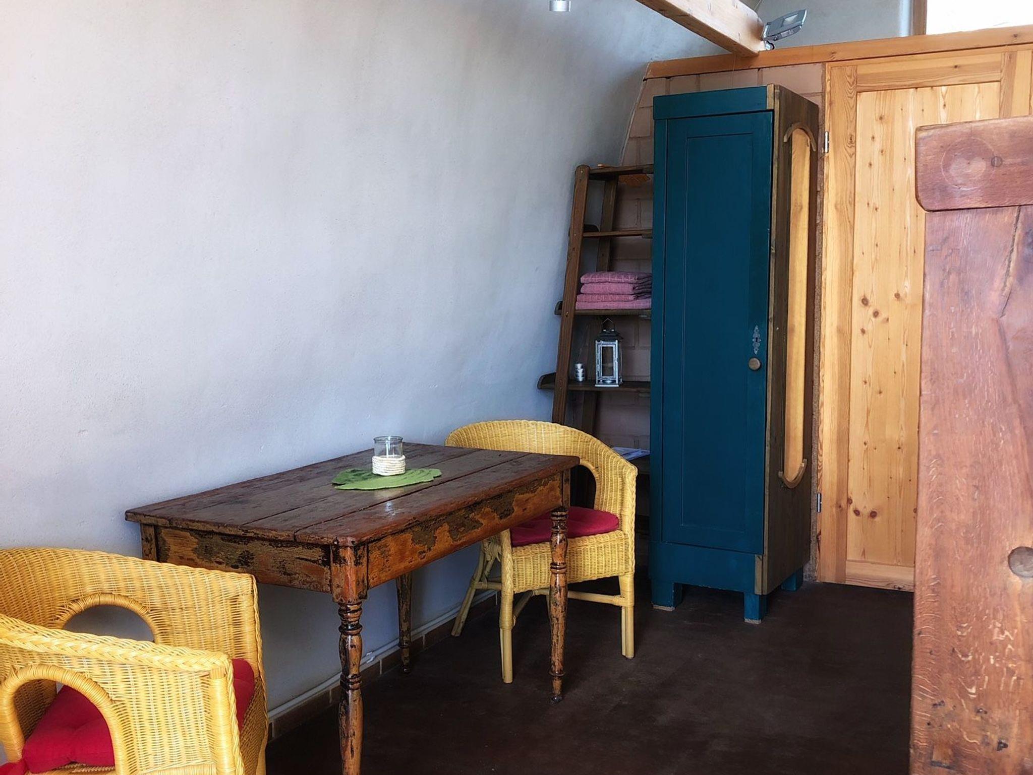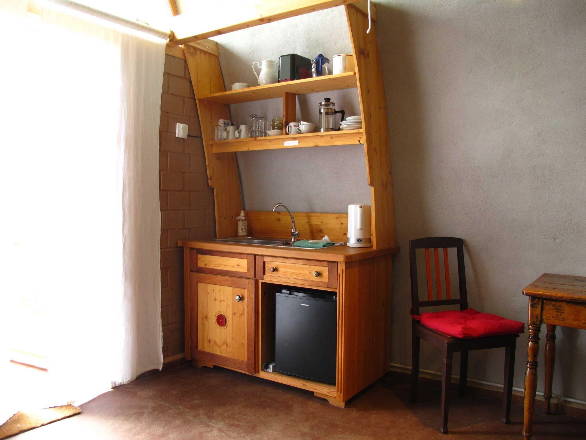 In der integrierten Mini-Küche können Sie Ihr Frühstück zubereiten. Kühlschrank, Wasserkocher, Toaster und Geschirr sind vorhanden. Leider steht aus Sicherheitsgründen keine eigene Kochplatte zur Verfügung. Allerdings öffnen wir von Mai bis Oktober zusätzlich die auf dem Gelände befindliche Sommerküche für Gäste, die in ihrer Unterkunft keine Kochmöglichkeit haben. In der Sommerküche befinden sich eine voll ausgestattete Küche und weitere Sitzmöglichkeiten.