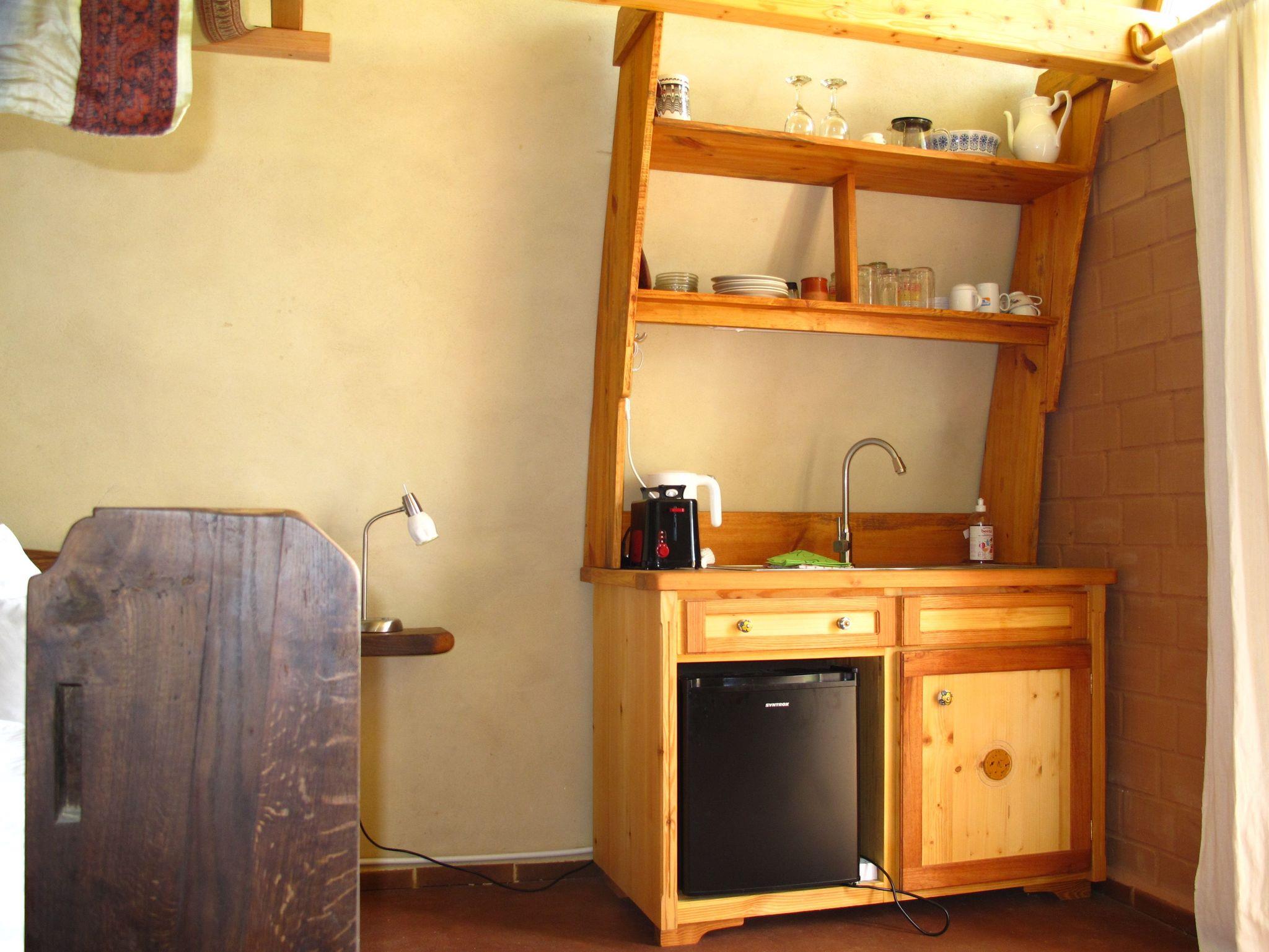 Die Unterkunft ist einfach ausgestattet, denn die Natur steht bei uns im Vordergrund. Die Wände sind mit Lehm verputzt, der Fußboden wurde mit Kalk hergestellt. Die Innenwände sind aus Lehmsteinen errichtet. Warme, aufeinander abgestimmte Naturfarben geben dem Raum eine fast mediterrane Atmosphäre, in der sich Gäste sehr wohl fühlen.