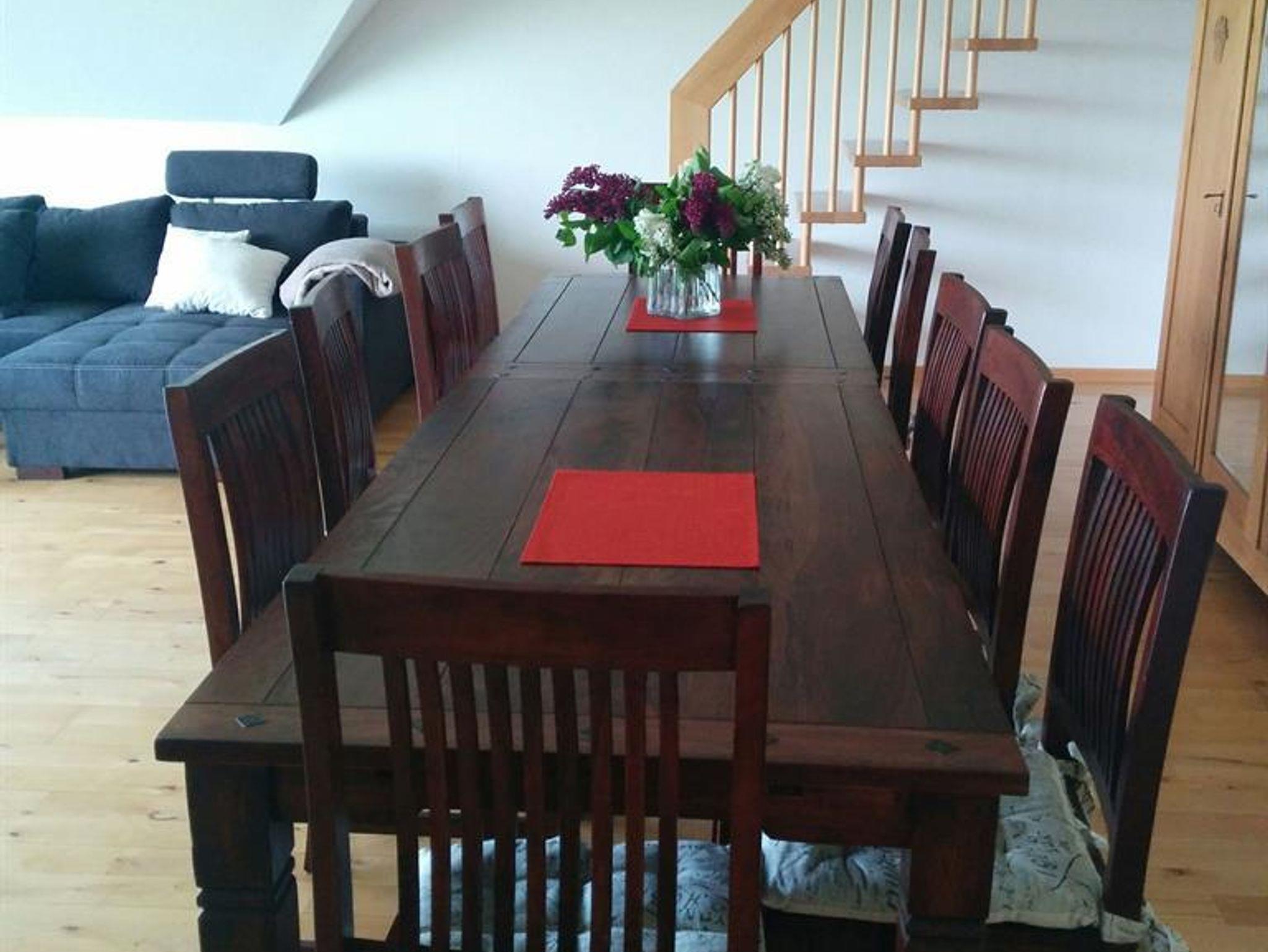 Die weitläufige, helle Wohnung mit 120 m² umfasst im ersten Stock zwei Doppelschlafzimmer, ein Bad, Gäste-WC, eine separate Küche sowie ein großes Wohnzimmer mit Esstisch. Im gemütlichen Spitzboden stehen vier Einzelbetten zur Verfügung.