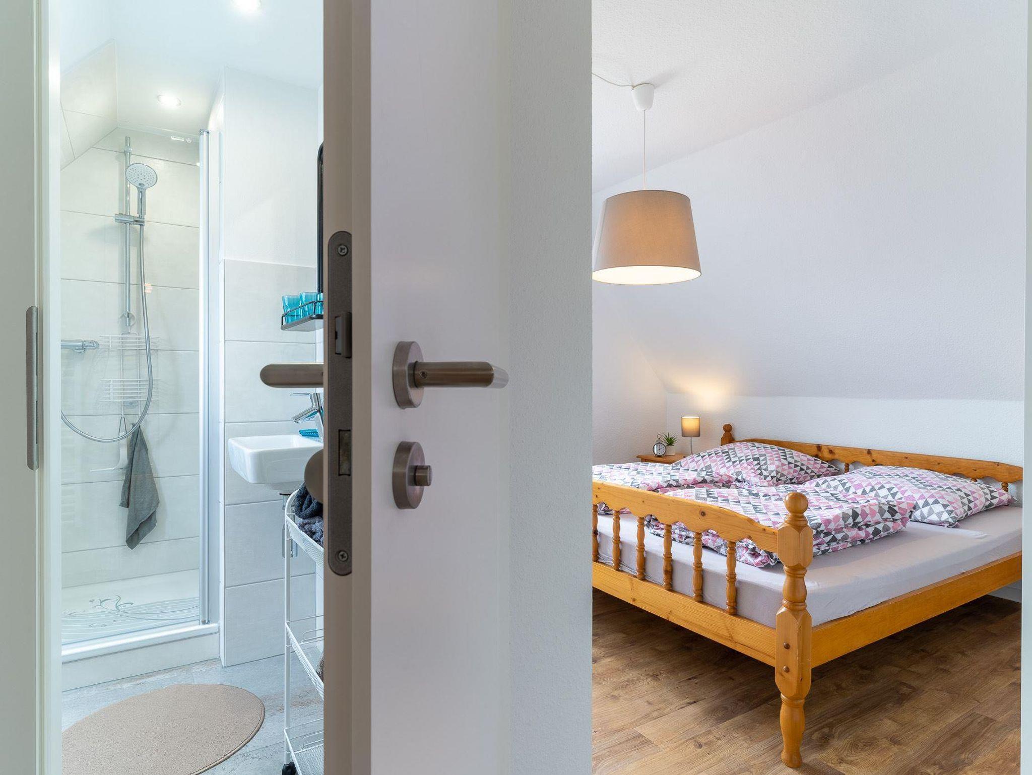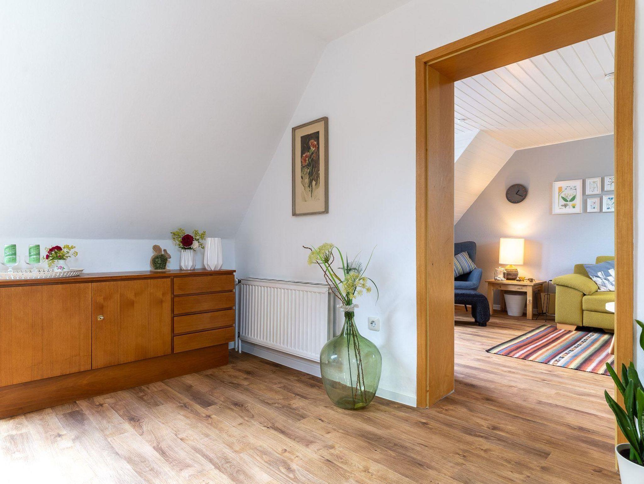 Die ca. 50qm große Ferienwohnung befindet sich im 1. Obergeschoss und ist für 2 Personen ausgestattet.