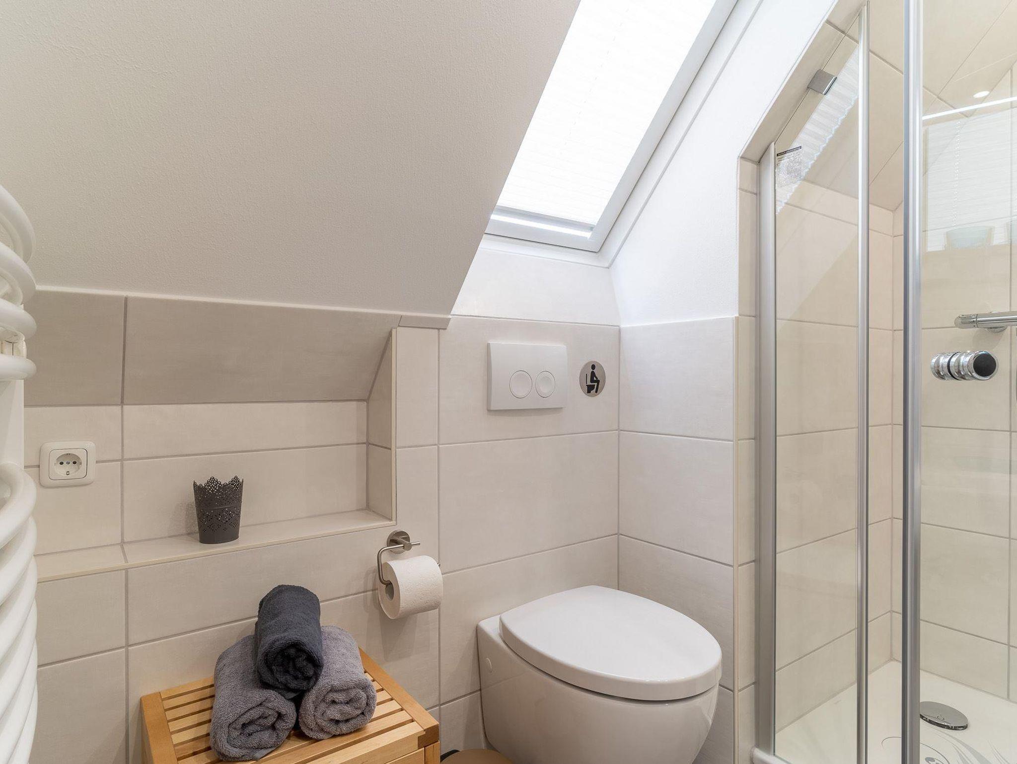• Sanitäranlagen: Haartrockner, Dusche, Waschbecken, bodengleiche Dusche, Bettwäsche und Handtücher leihbar für 15,00 € p.P.