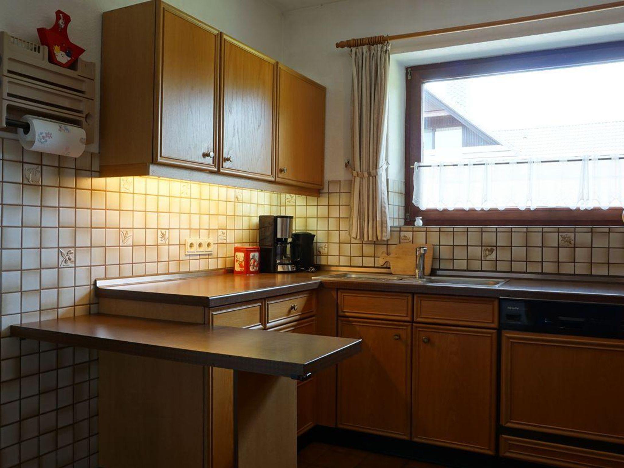 Die voll ausgestattete Küche lässt keine Wünsche offen und beinhaltet einen Backofen, ein Cerankochfeld, einen Geschirrspüler, eine Mikrowelle, einen Kühlschrank und eine Kaffeemaschine.