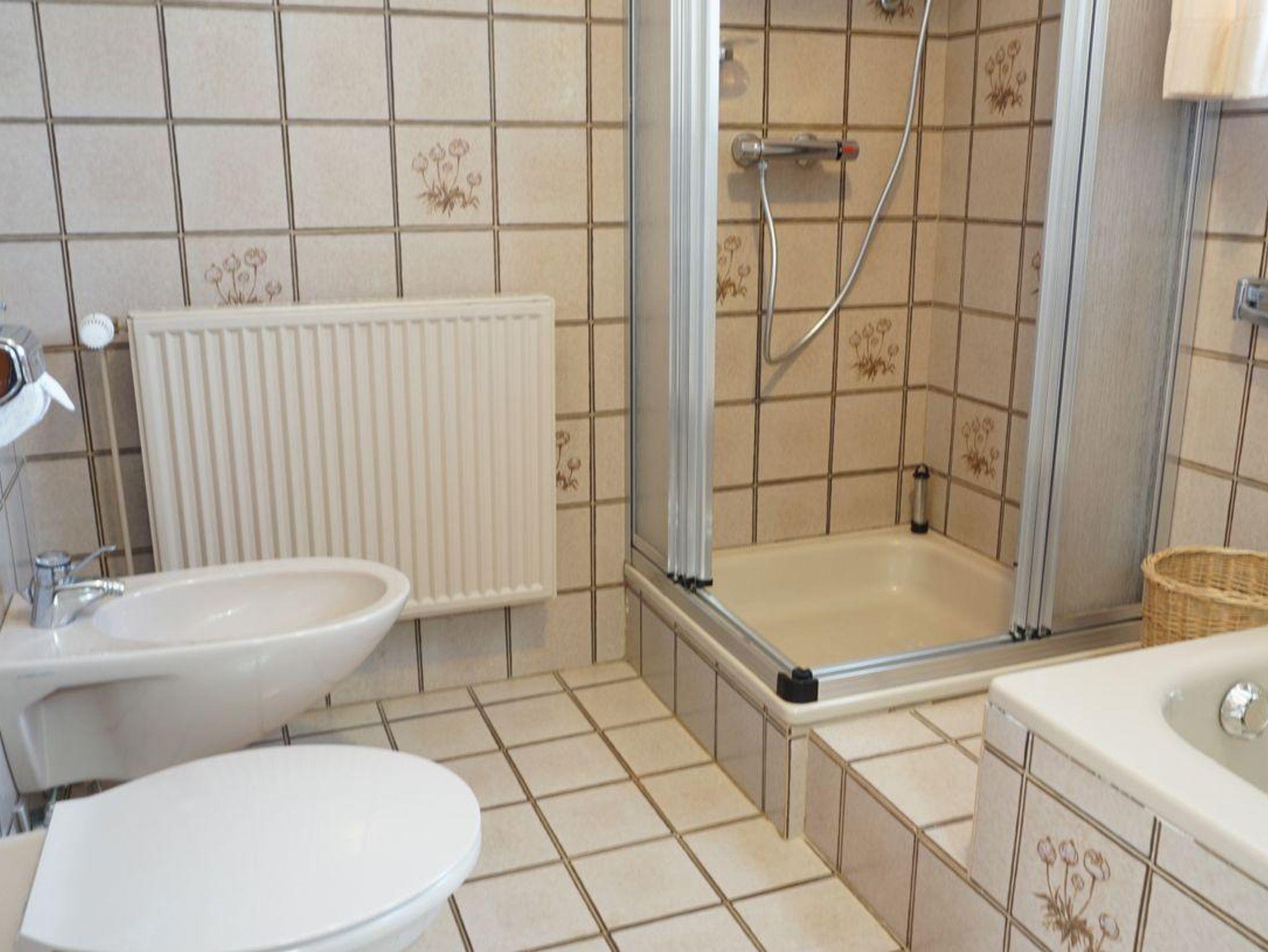 Das Haus verfügt über zwei Schlafzimmer mit Doppelbetten und ein Schlafzimmer mit zwei Einzelbetten sowie einem Schreibtisch. Ein modernes Duschbad und ein Vollbad bieten Komfort für alle Gäste sowie nochmal ein Gäste WC.