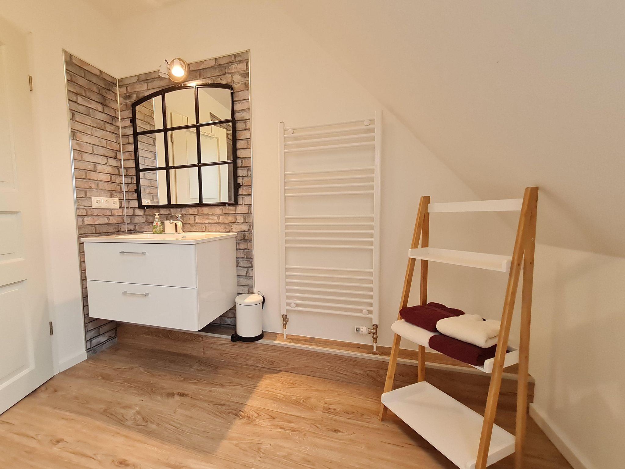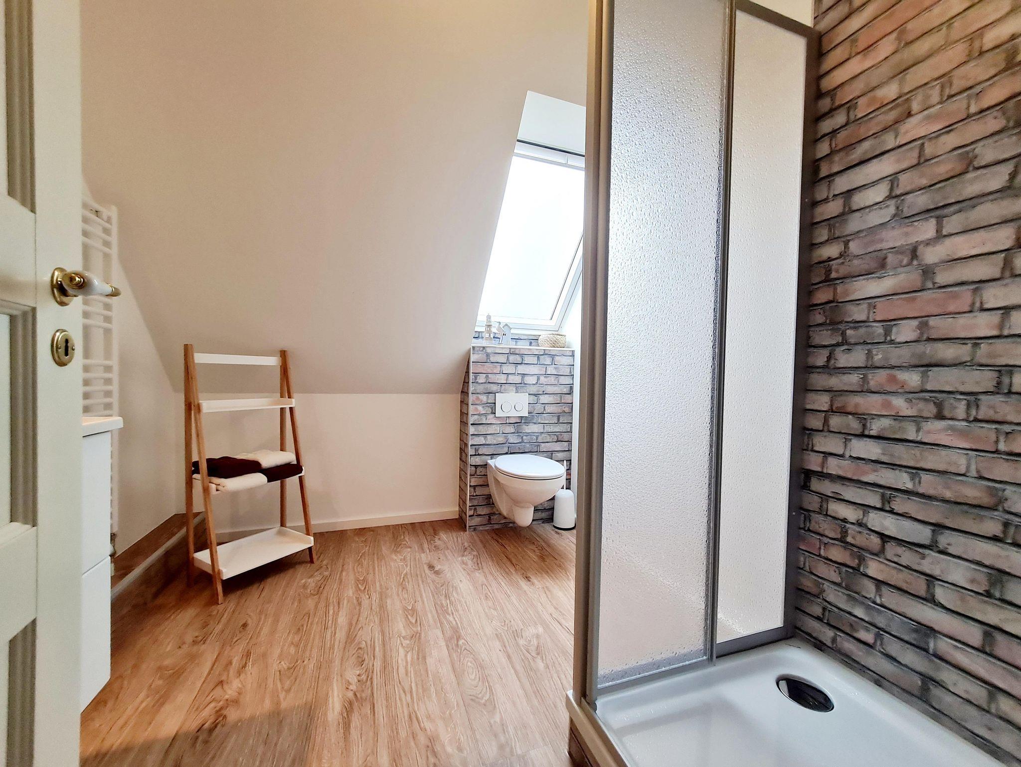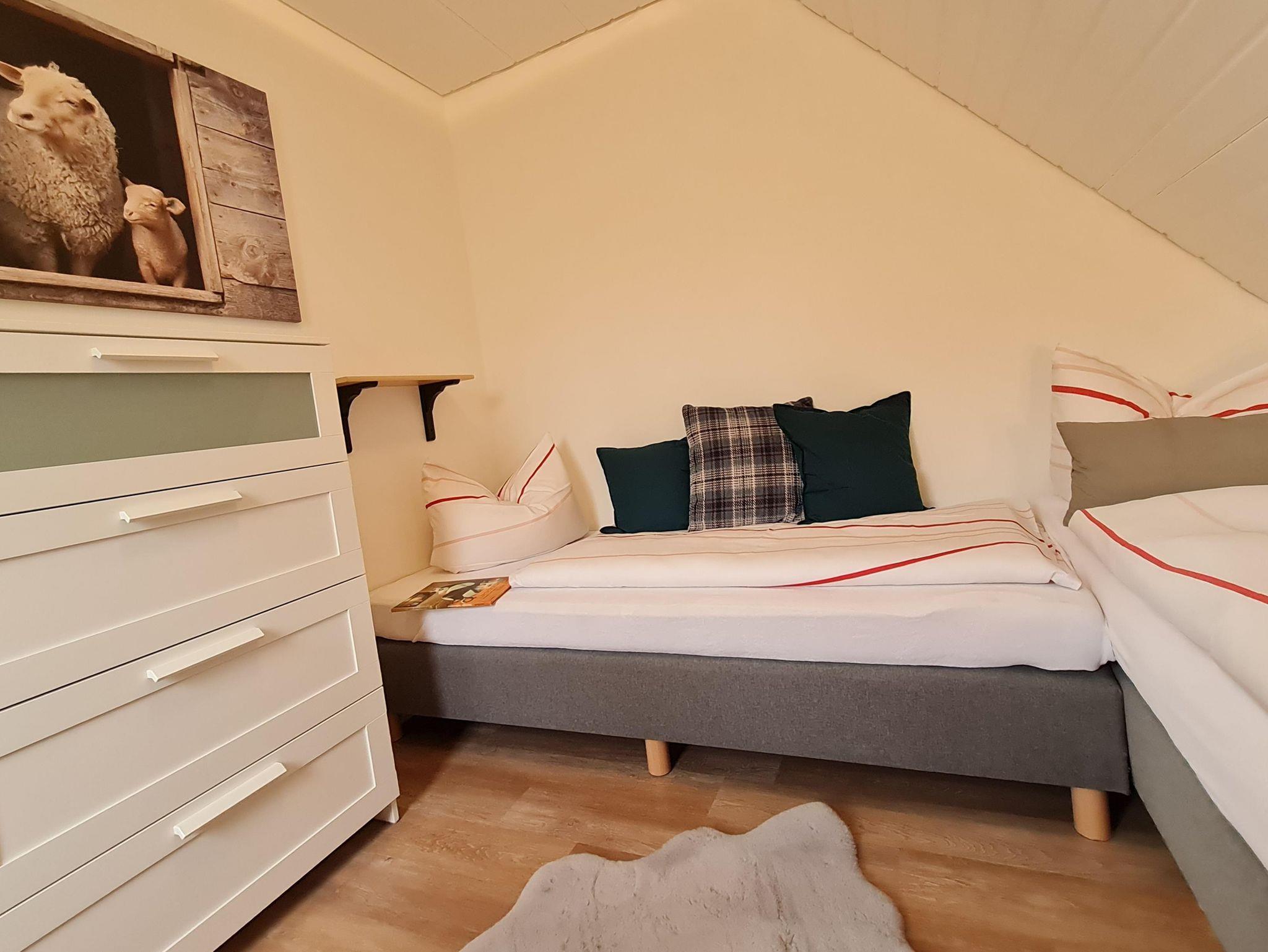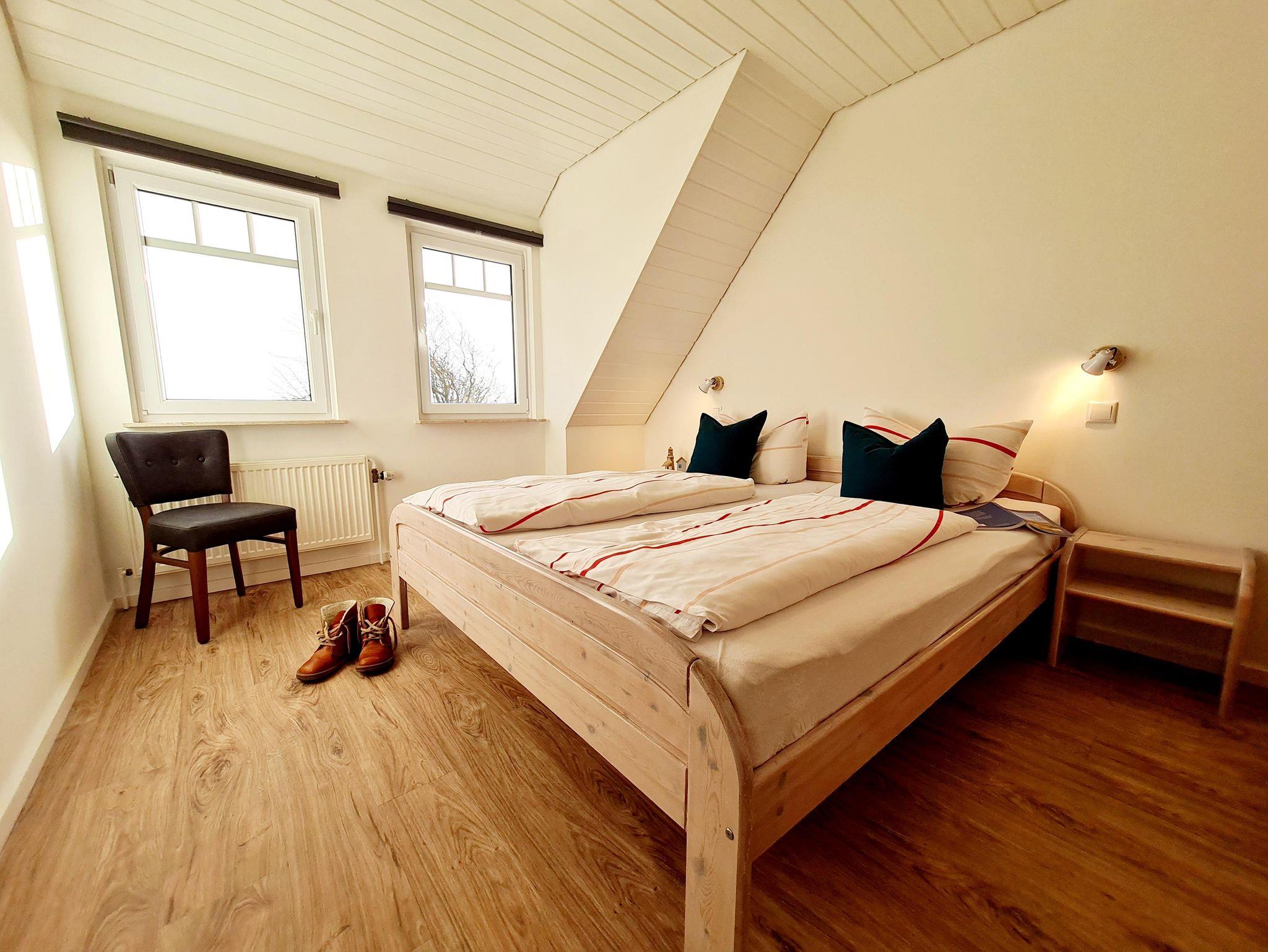 Unsere Ferienwohnung „Gröne Wech“ liegt ebenso im 1. Stock des Ferienhauses und beschreibt den Blick auf einen sehr alten „Grünen Weg“, der früher einmal die Verbindung zum Dorf „Welt“ ermöglichte. Heute ist der Weg nicht mehr mit Maschinen nutzbar, dafür aber sehr wohl für unsere Pferde. Die Wohnung ist spiegelverkehrt zur Wohnung „Driftfenn“ aufgebaut und enthält somit dasselbe Equipment. Die Wohnung besteht aus einem Vorflur mit Garderobe, einem Elternschlafzimmer mit Doppelbett und Kleiderschrank, einem Badezimmer, einer Küchen- und Wohnkombination (Herd mit Backofen, Dunstabzugshaube, Spülmaschine, Kühlschrank mit Gefrierfach, Kaffeemaschine, Toaster und Wasserkocher, Mikrowelle) und dem Kinderschlafzimmer mit Etagenbett und Einzelbett sowie einem Schreibtisch. WLAN ist im Bauernhaus sowie im Garten und auf dem Hofplatz jederzeit verfügbar und zusätzlich buchbar; die Ferienwohnungen im Ferienhaus sind nicht für den WLAN-Empfang ausgelegt. Wir bitten um Verständnis.