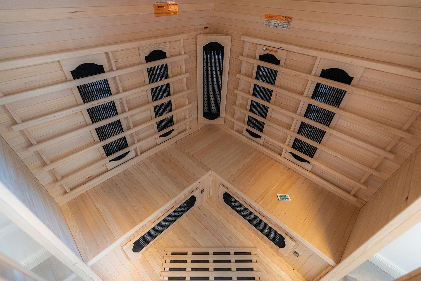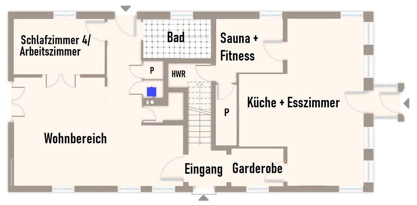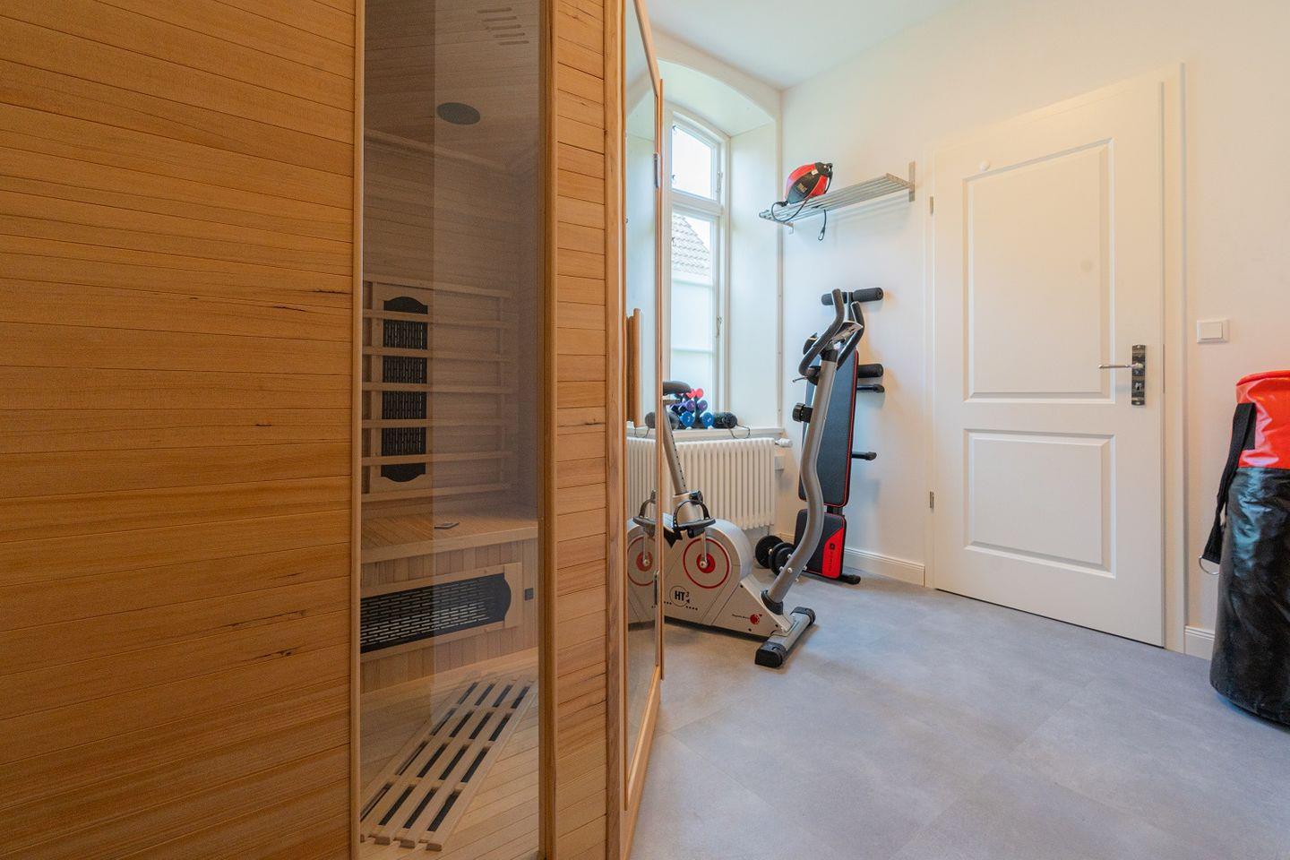 Sauna/Fitnessraum: 4 Personen Infrarotsauna, Ergometer, Hantelbank, Boxsack, Klimmzugstange.