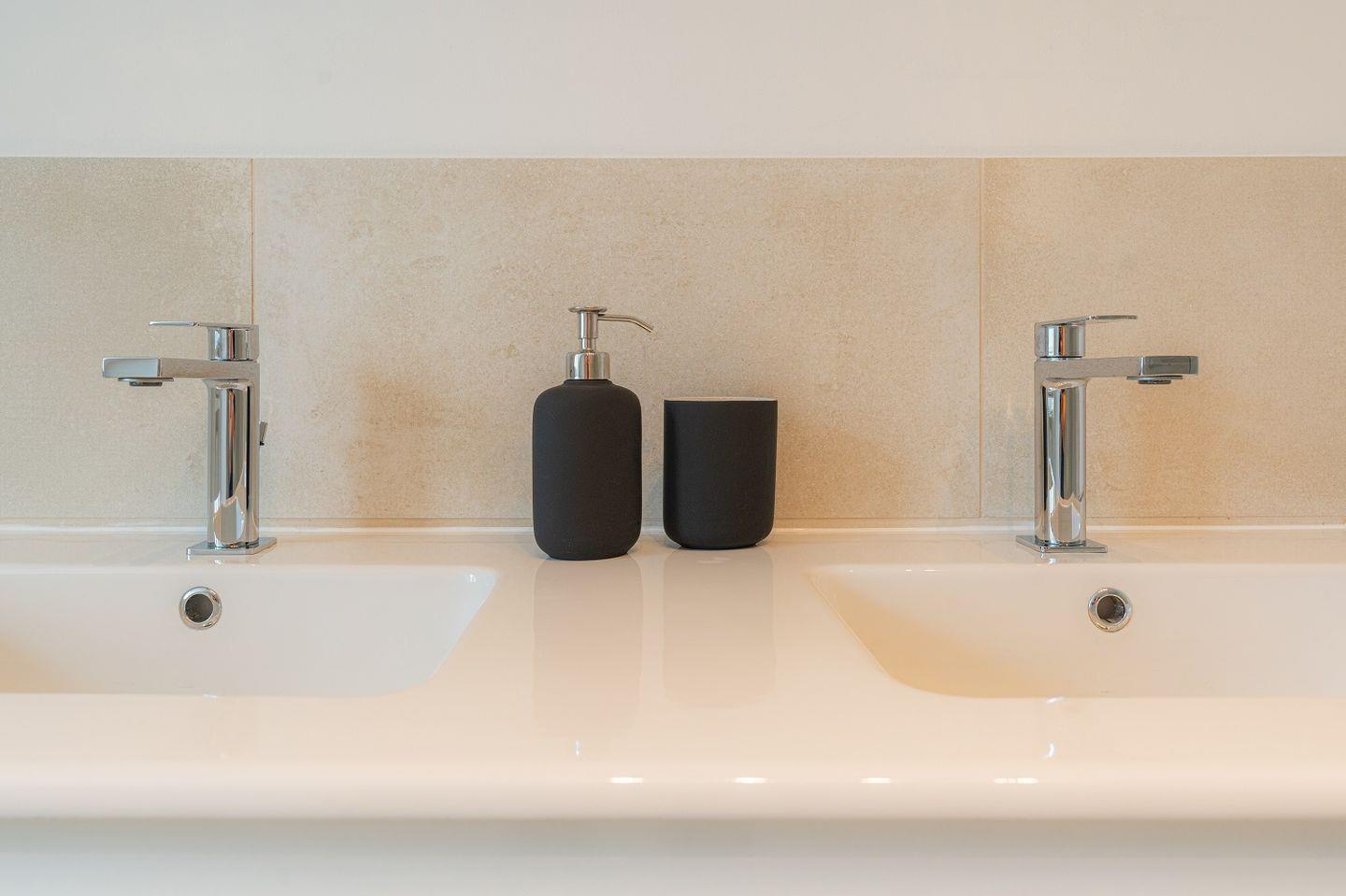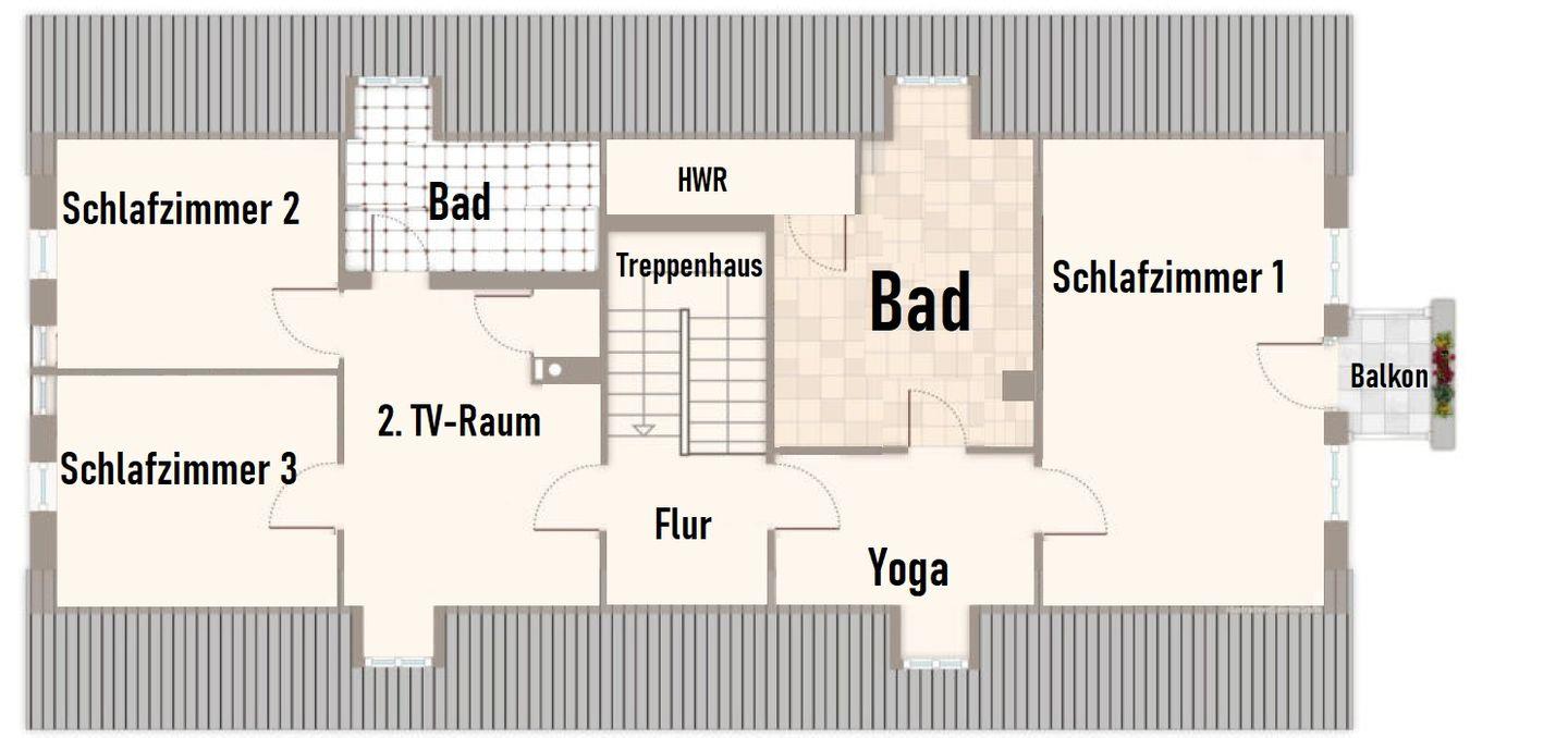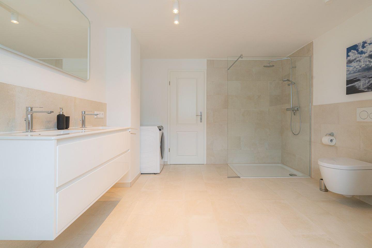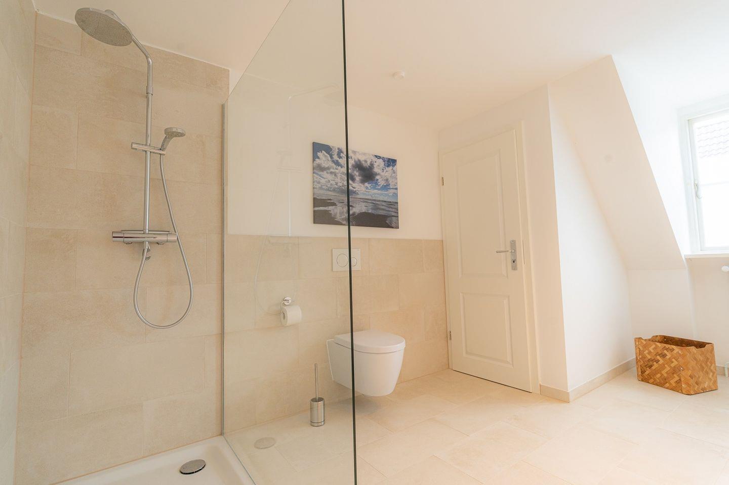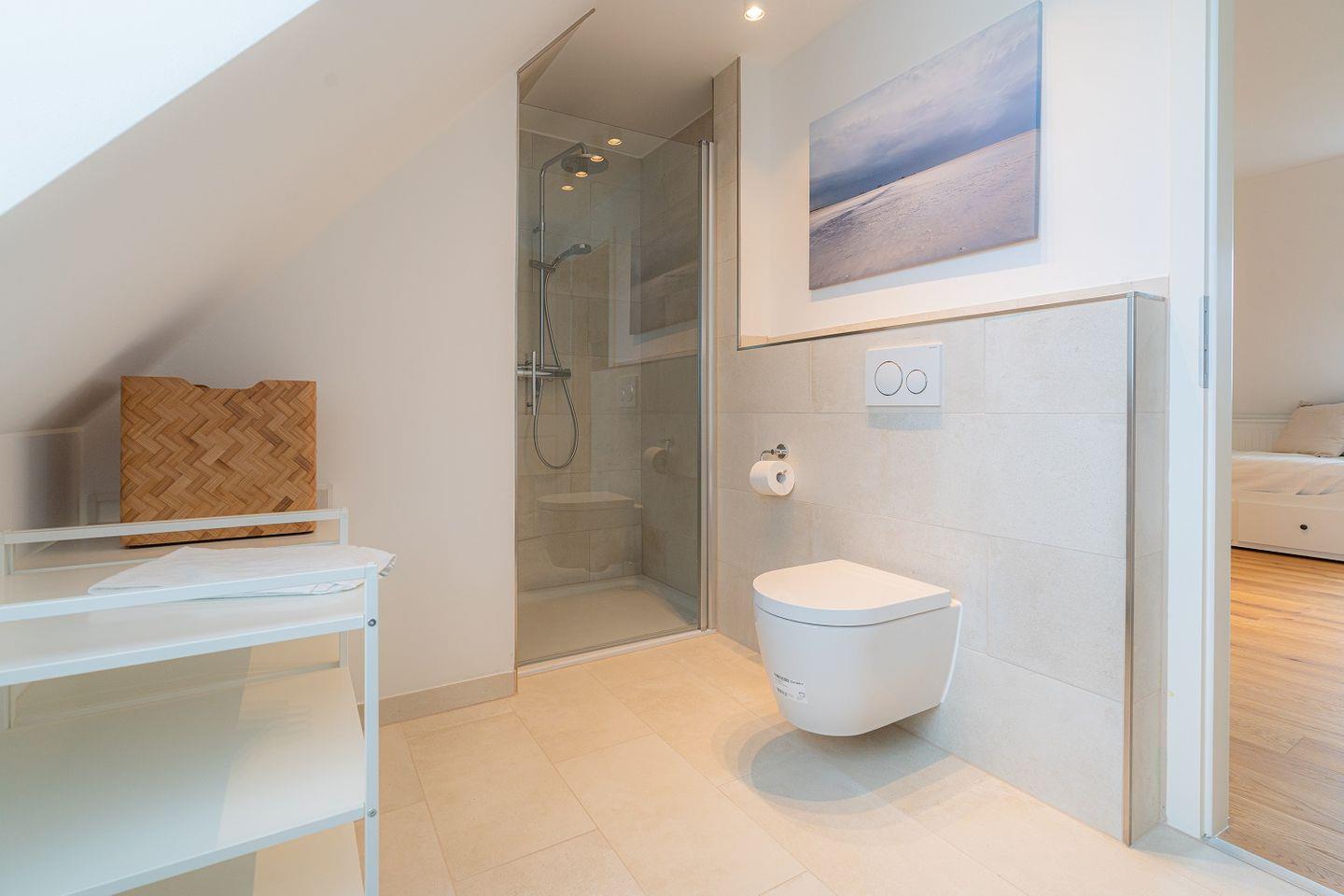 2 große Duschbäder mit ebenerdiger Dusche, WC, Föhn.