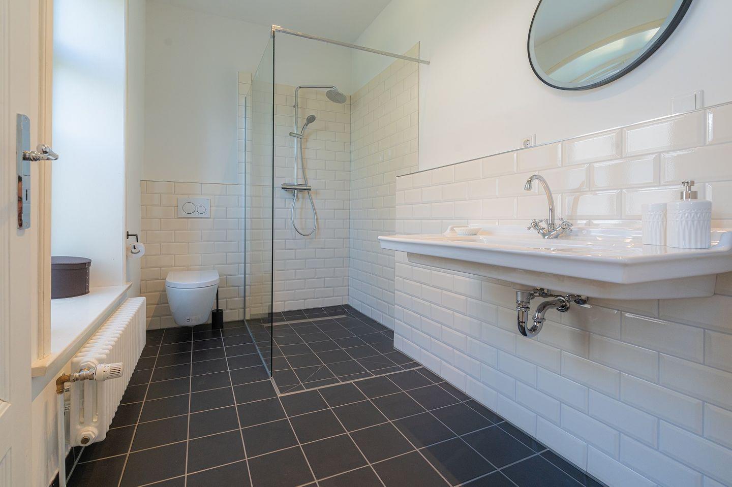 Großes Duschbad mit ebenerdiger Dusche, WC, Föhn.