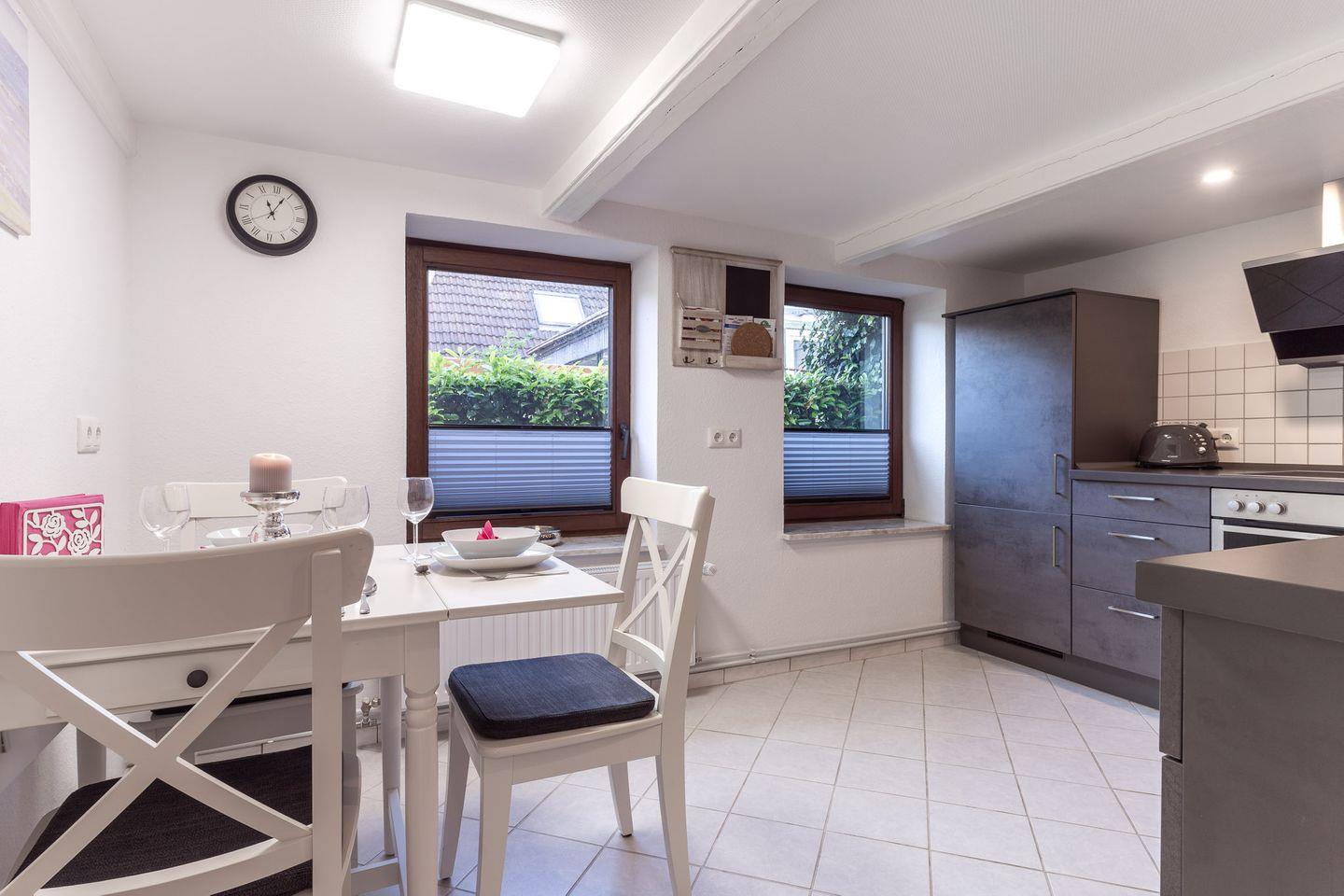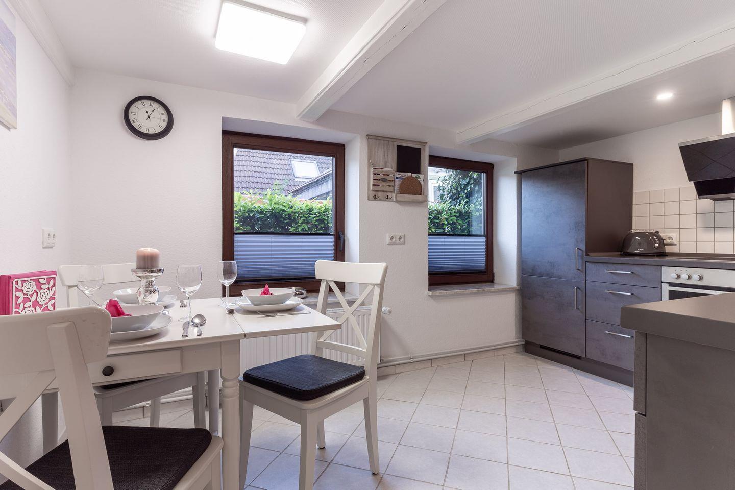 In diesem charmanten und frisch sanierten Ferienhaus finden 6 Personen Platz auf 90m². Mit drei Schlafzimmern, einem modernen Badezimmer mit offener Dusche und einer voll ausgestatteten Küche inklusive Backofen und Geschirrspülmaschine wird Ihren Aufenthalt sowohl erholsam als auch unkompliziert machen. Das Haus verfügt über einen einladenden Essbereich, Internetzugang und ist kinderfreundlich mit Hochstuhl und Babybett für die kleinen Gäste.