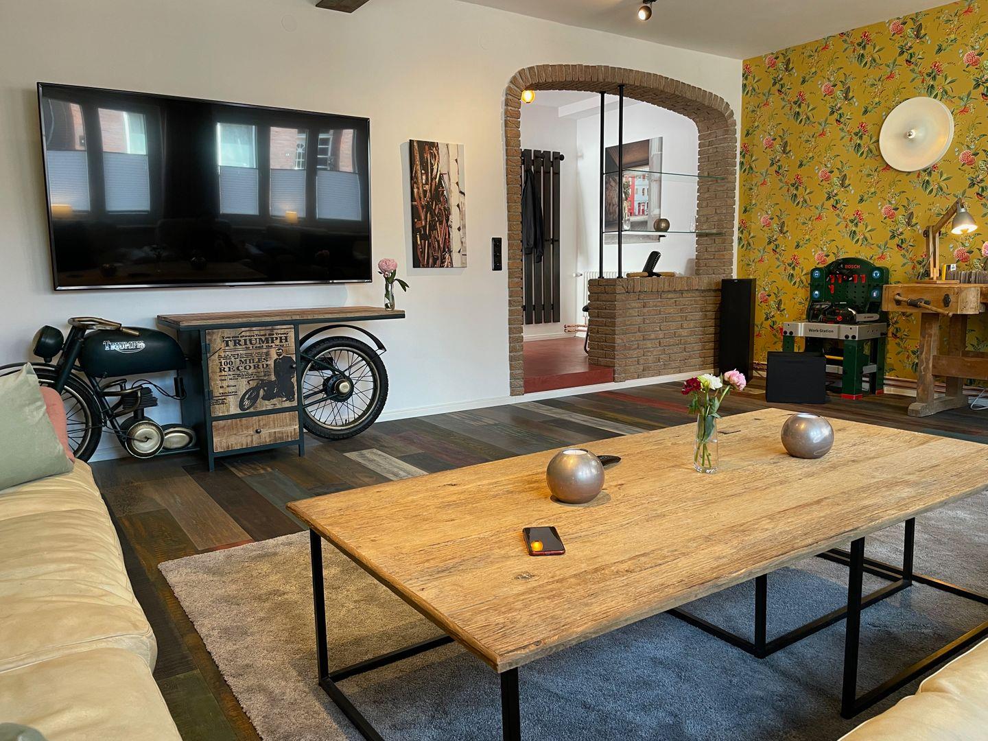 Voll ausgestattet ist der offene Küchen-Essbereich zentraler Ort und vor dem riesigem Fernseher mit Netflix und IP-TV können es sich im 40qm Wohnzimmer wirklich alle zusammen gemütlich machen. Schnelles Internet gibt’s natürlich!