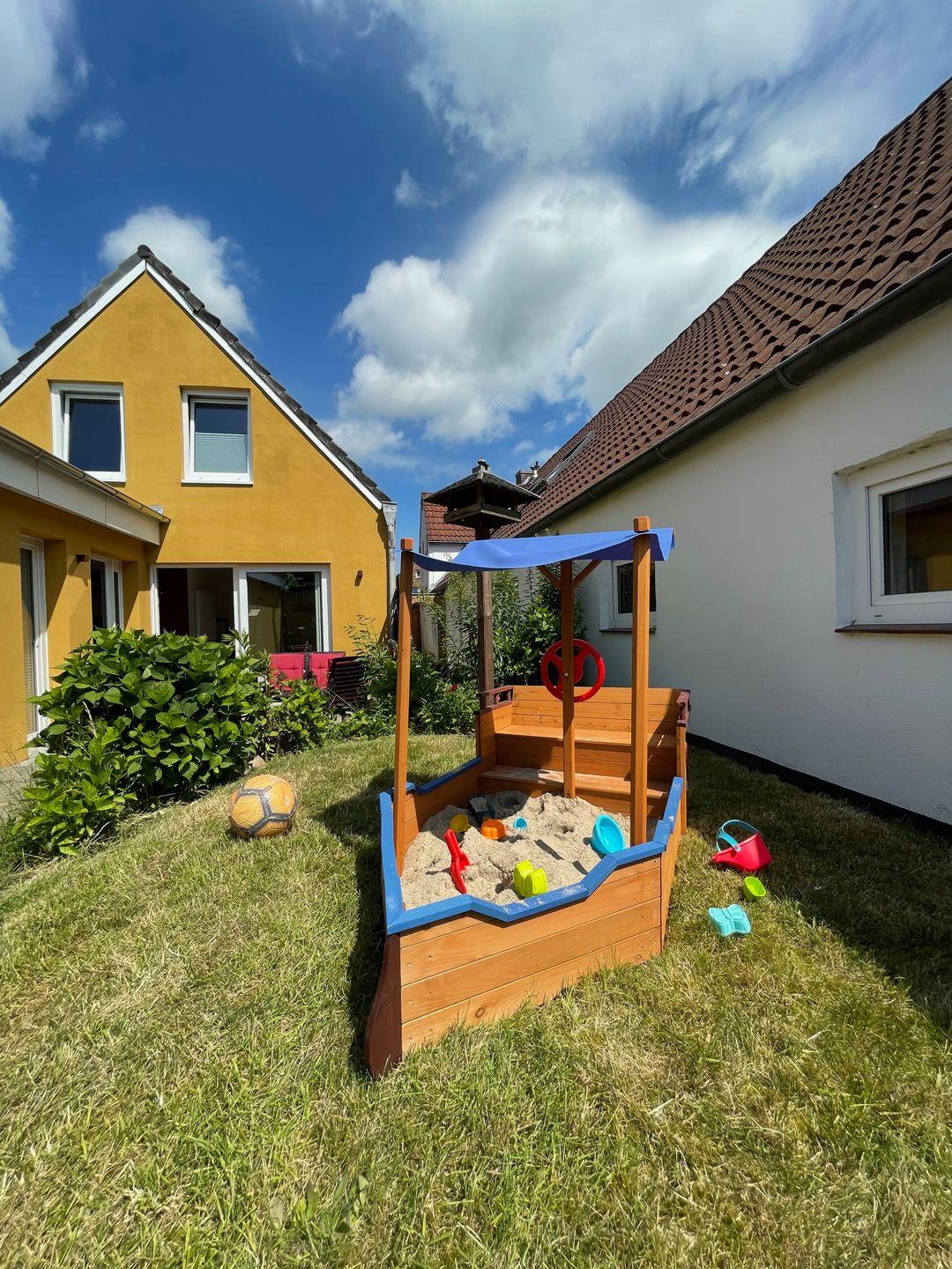 Großes Ferienhaus im Herzen von Garding kurz vor St. Peter Ording mit dem längsten Sandstrand Deutschlands. 120m2 bieten Platz für 6 Personen mit 3 Schlafzimmern, 3 Bäder, Küche und Essbereich, Wohnbereich und Terrasse.