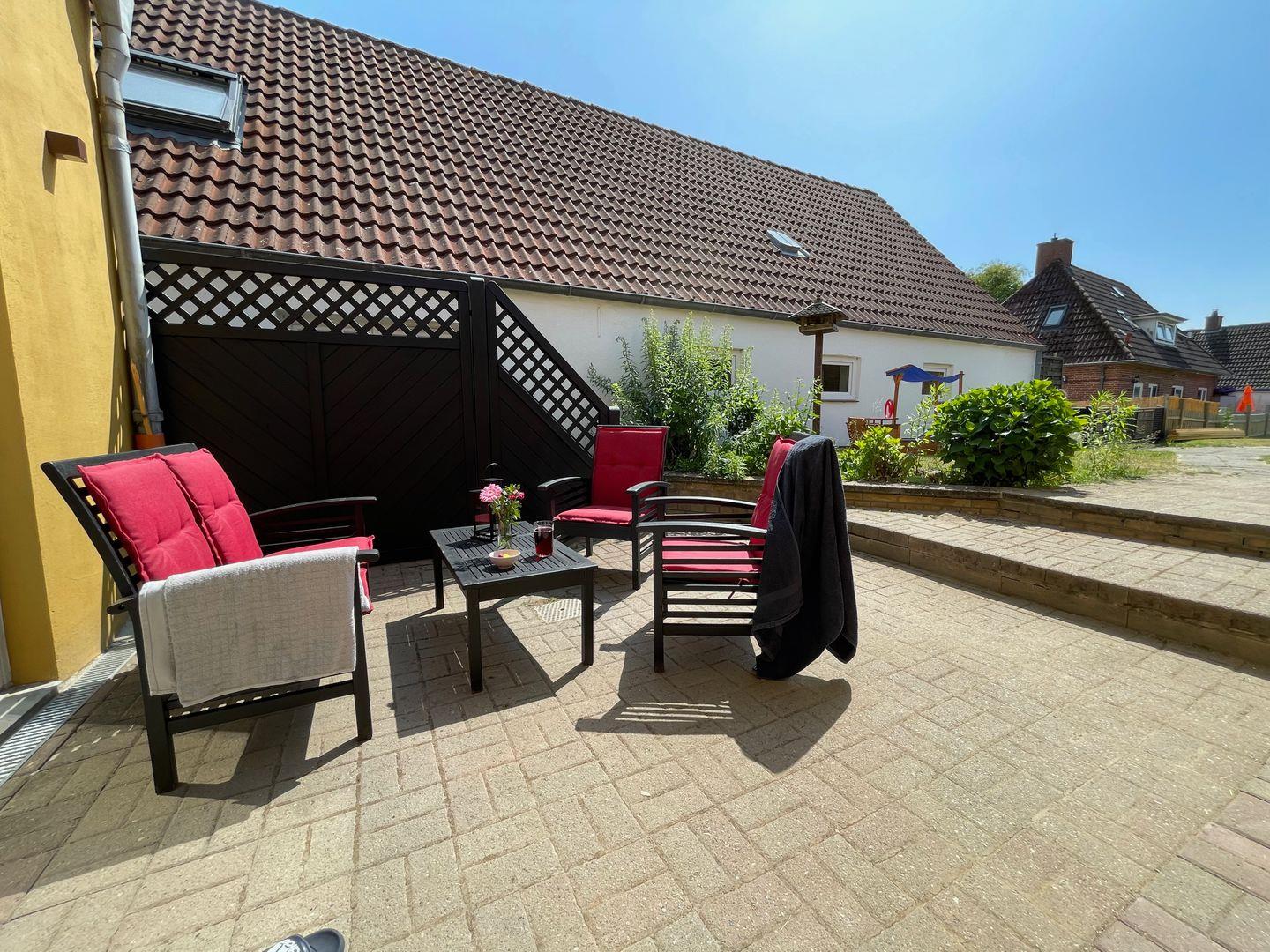 Viel Platz drinnen, viel Platz draußen. Im langgestreckten Garten kann man im Liegestuhl die Nordseebrise genießen und dann beim gemeinsamem Grillabend den Tag ausklingen lassen.