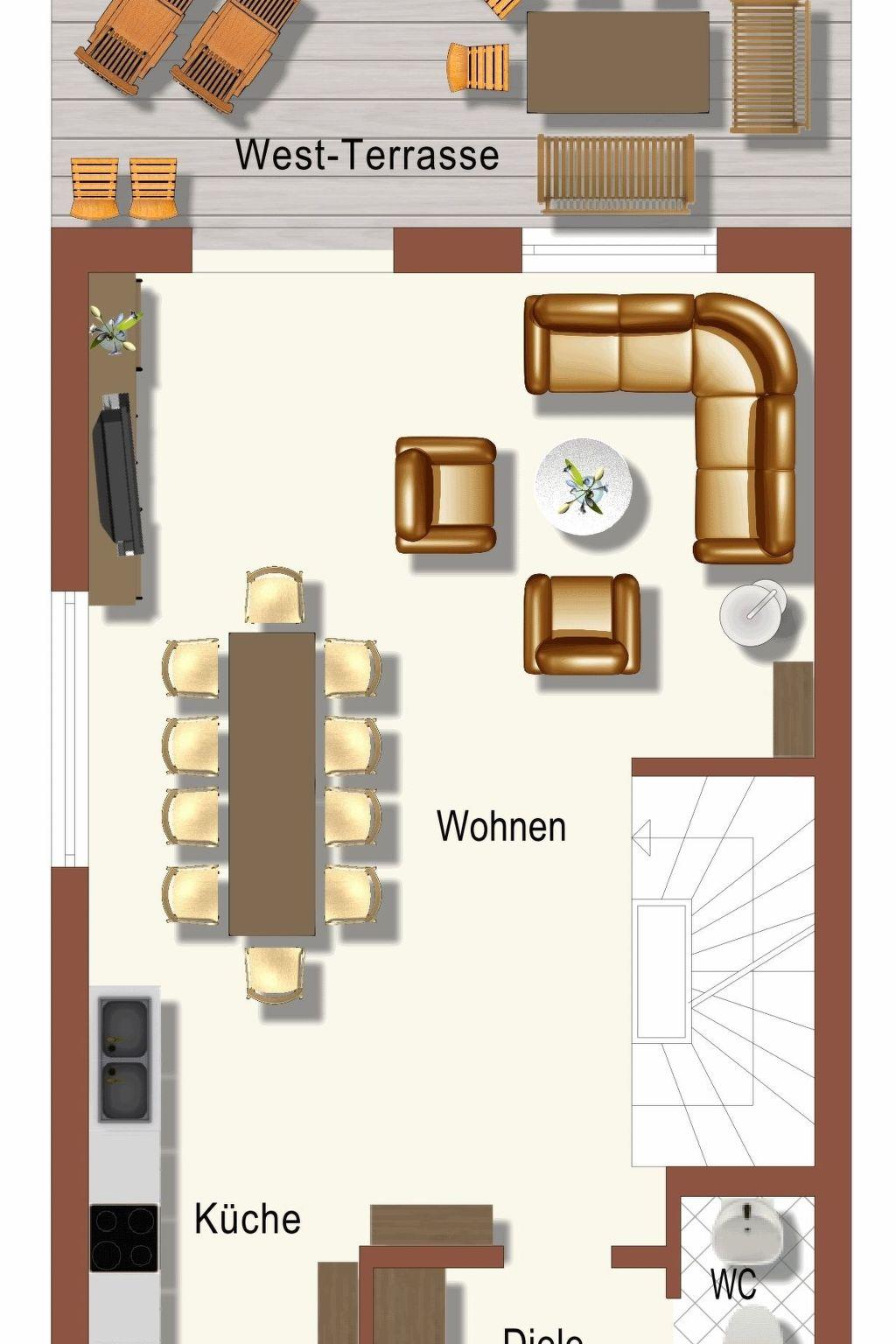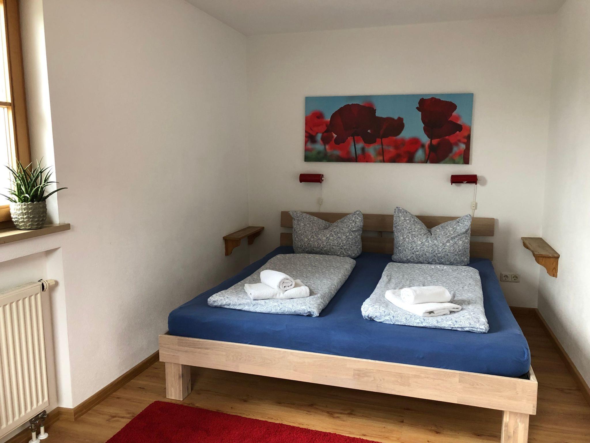 The holiday home has 4 bedrooms, 3 bathrooms and a guest WC. There is a large double bed in each bedroom. There is also a pull-out sofa bed and a 1.40 metre extra bed. The entire house is rented out with its own entrance, laundry room and ski room, 2 TV flats, WLAN, 2 balconies, sunny terrace, garden with barbecue facilities, 2 car parking spaces and much more.