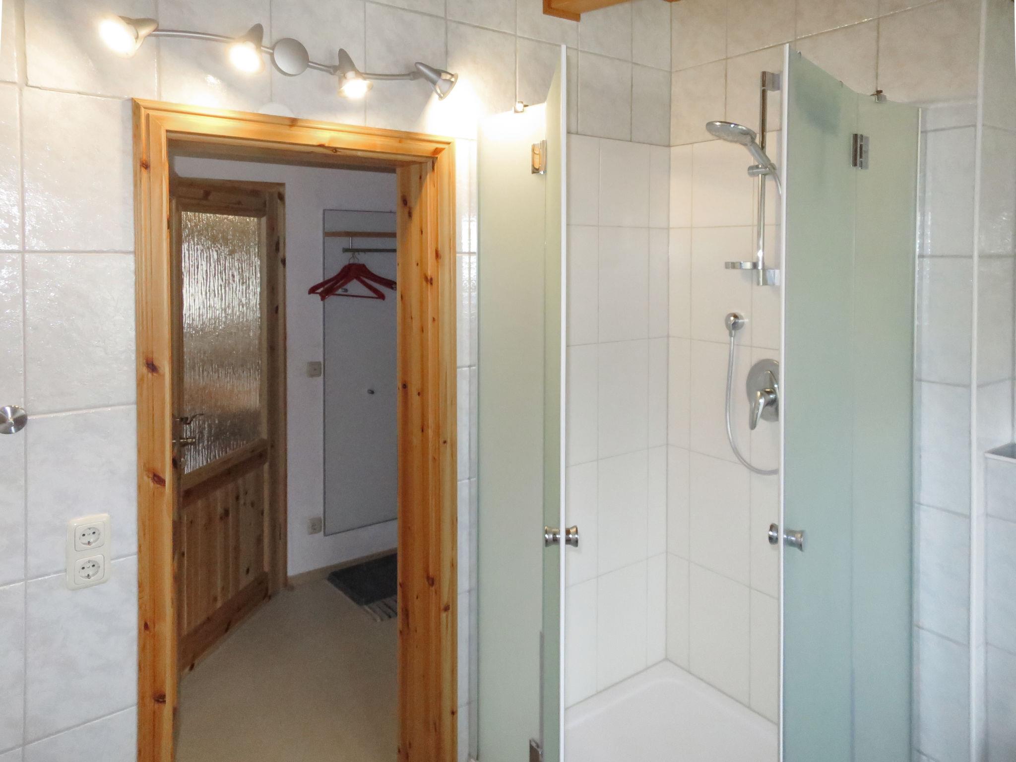 "Eberhorn", 3-room apartment 75 m2 on 2nd floor. Partly with sloping ceilings, cosy furnishings: living/sleeping room with 1 double fold-away bed (160 cm, length 190 cm), satellite TV, CD-player and DVD. 1 room with 1 double bed (180 cm, length 200 cm). Exit to the balcony, north-west facing position. 1 room with 2 beds (90 cm, length 200 cm). Exit to the balcony, south-east facing position. Kitchen (oven, dishwasher, 4 ceramic glass hob hotplates, toaster, kettle, microwave, electric coffee machine) with dining table. 2 showers/WC. Gas heating, solar energy heating. Large balcony, small balcony. Balcony furniture. Facilities: children's high chair, baby cot. Internet (WiFi, free). Please note: non-smokers only. Smoke alarm. fire blanket.