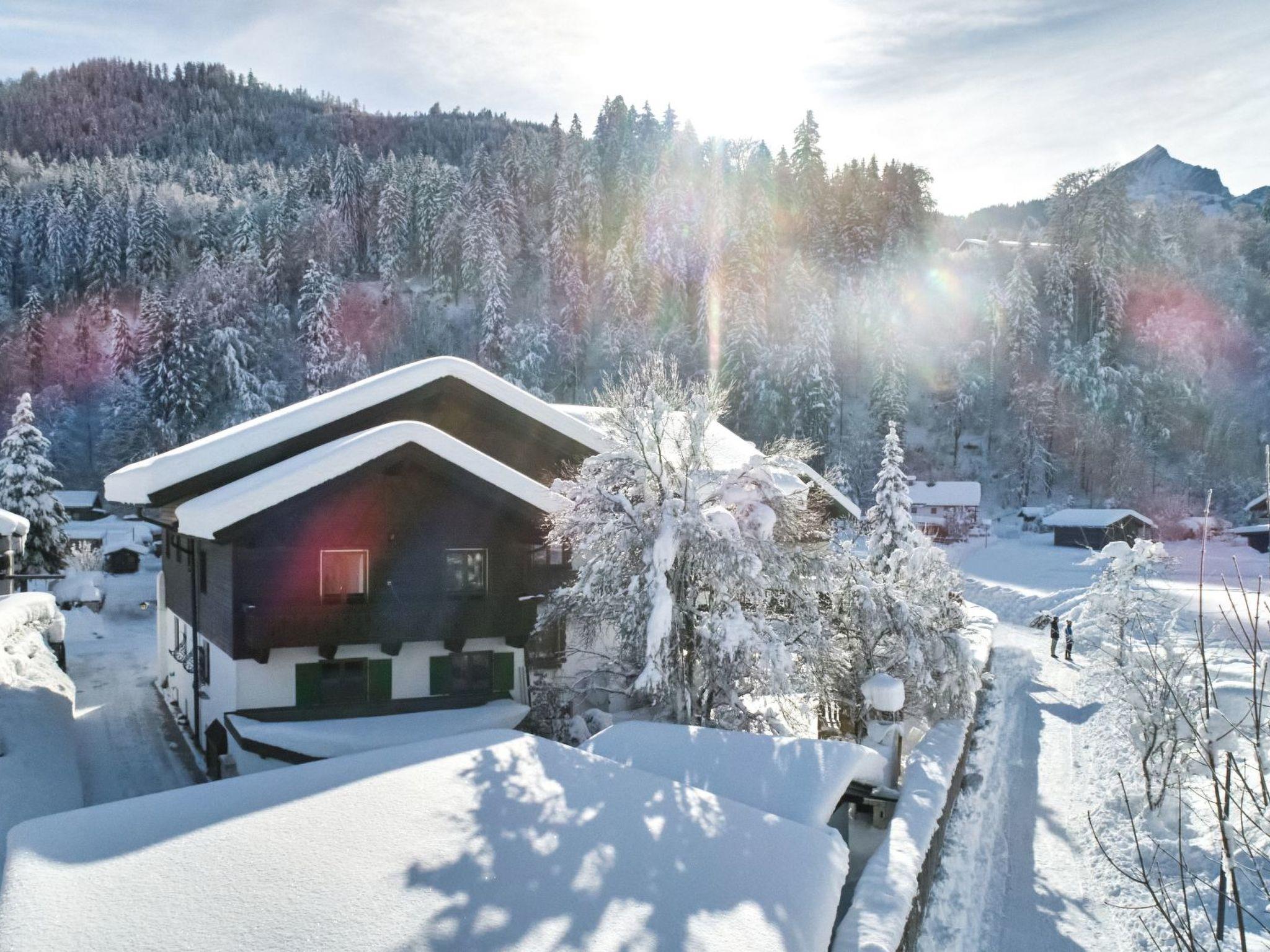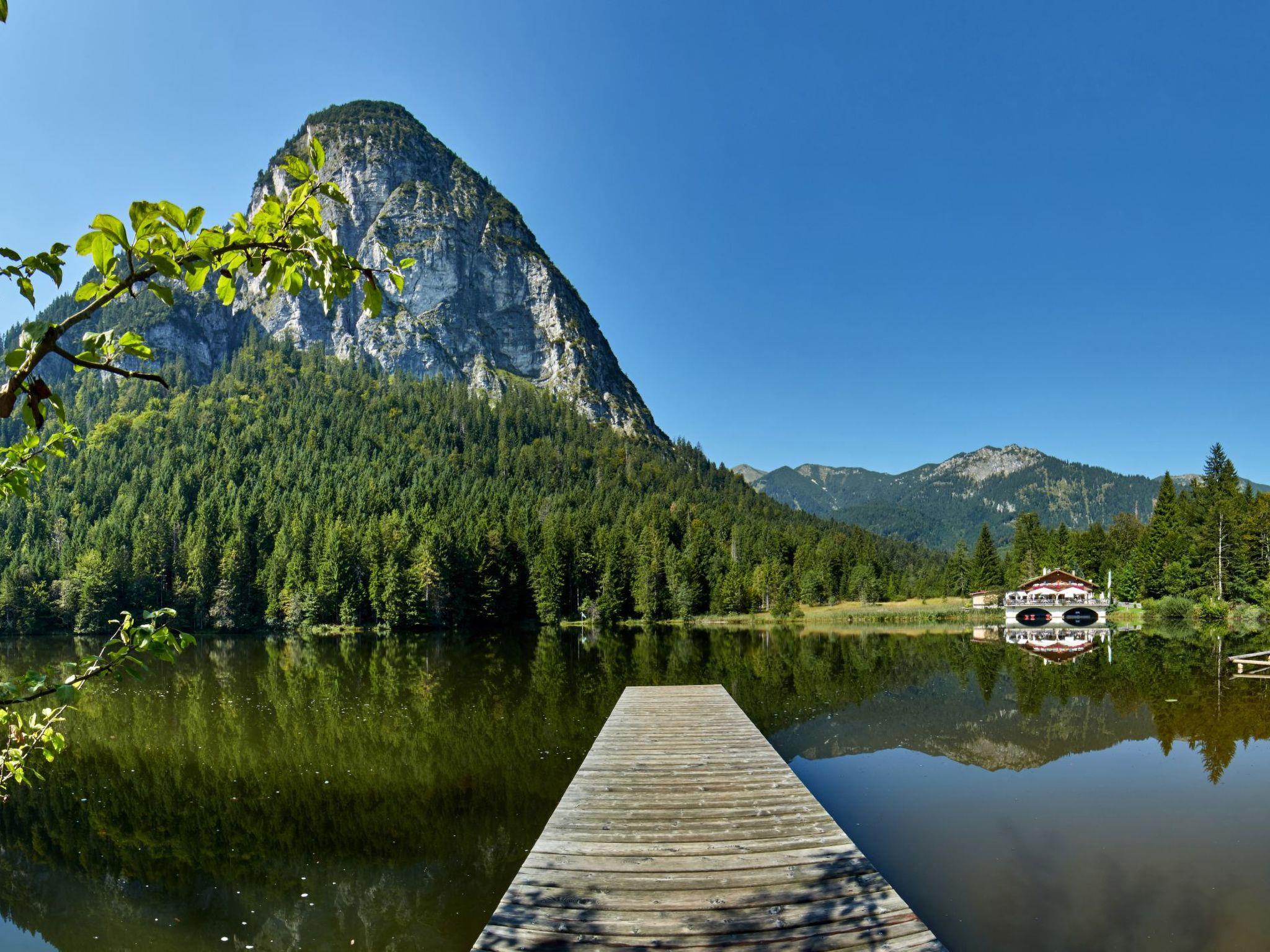 By taking the Riessersee footpath that leads directly past the house, you can reach, after a 2-minute walk to the south, a waterfall fed from the Riessersee lake above; going north, you can quickly reach the lively town centre of Garmisch.