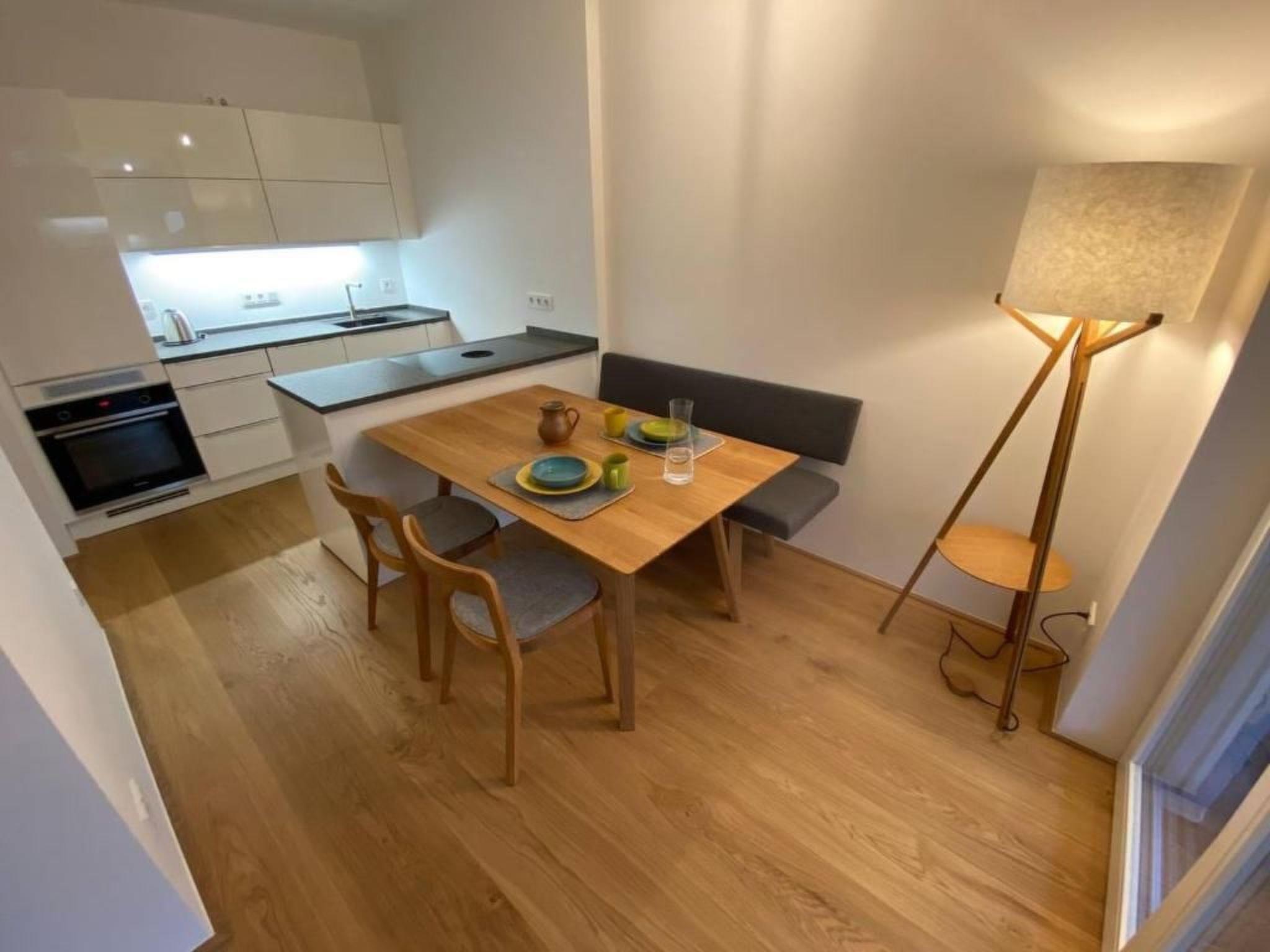Inside you will find practical and well thought-out furnishings to make your stay as comfortable as possible. The flat has an inviting bedroom for restful nights and a bathroom with an inviting bathtub that invites you to relax after a long day of adventure. For your convenience, the kitchen is equipped with a dishwasher and kettle, making preparing meals and hot drinks a breeze.