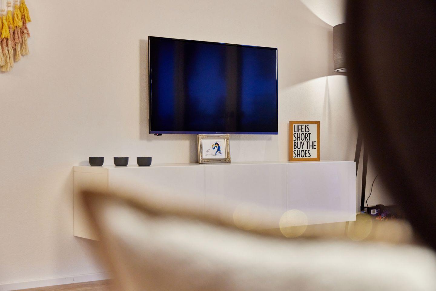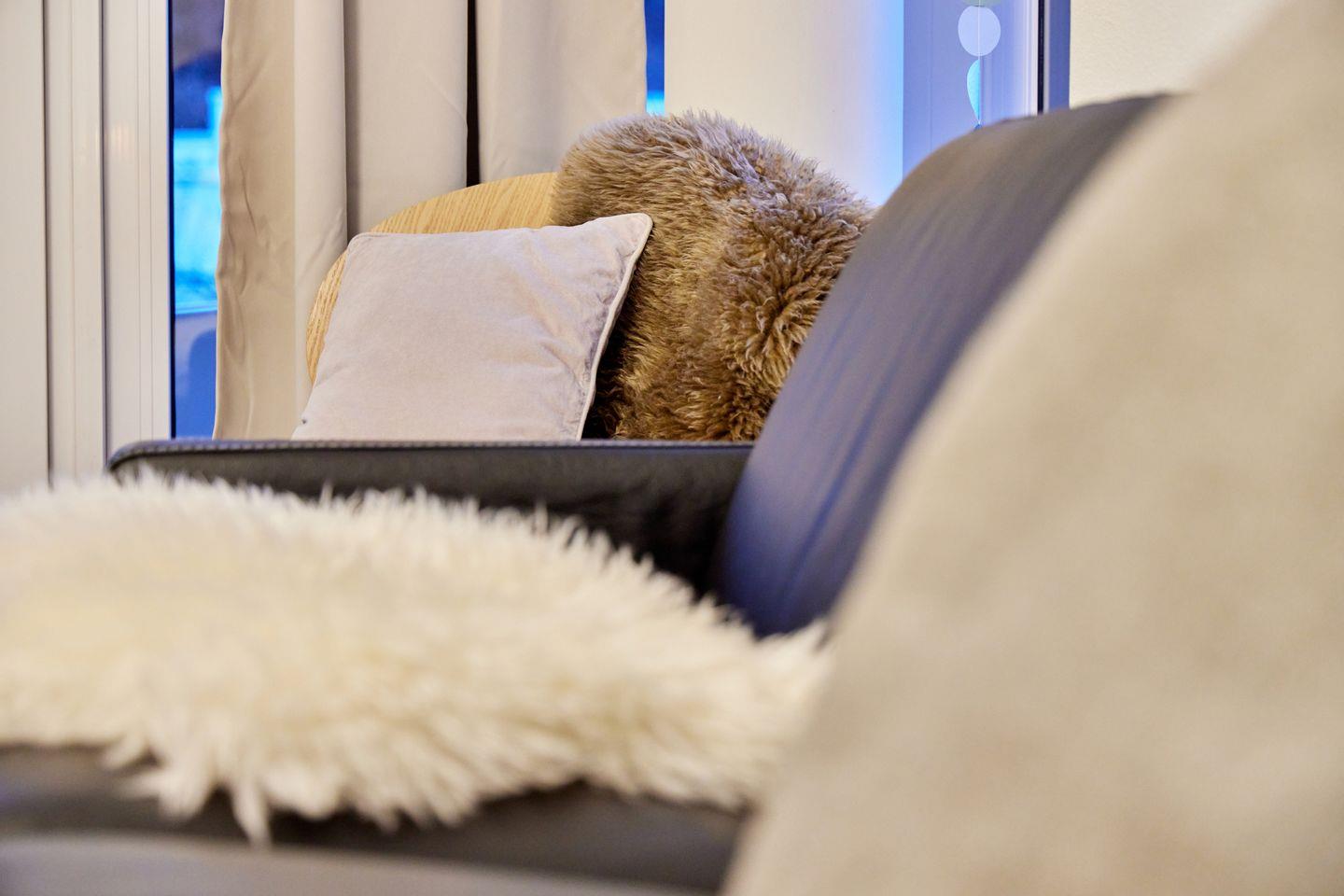 Die Wohnlandschaft mit bequemem Sofa und Sesseln lädt zum Füße hochlegen ein. Dank Flachbild-Fernseher ist hier auch jederzeit für Unterhaltung gesorgt.