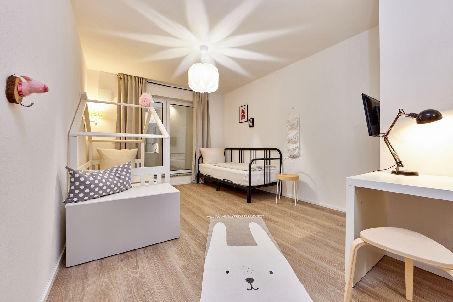 Im Kinderzimmer stehen ebenfalls ein großer Kleiderschrank, sowie zwei Einzelbetten für Kinder, die sich jeweils ausziehen lassen und so bis zu 4 Kindern schöne Schlafgelegenheiten bieten. Ein Flachbild-Fernseher sorgt für Unterhaltung und eine eigene Spielecke lässt Kinderherzen höher schlagen.