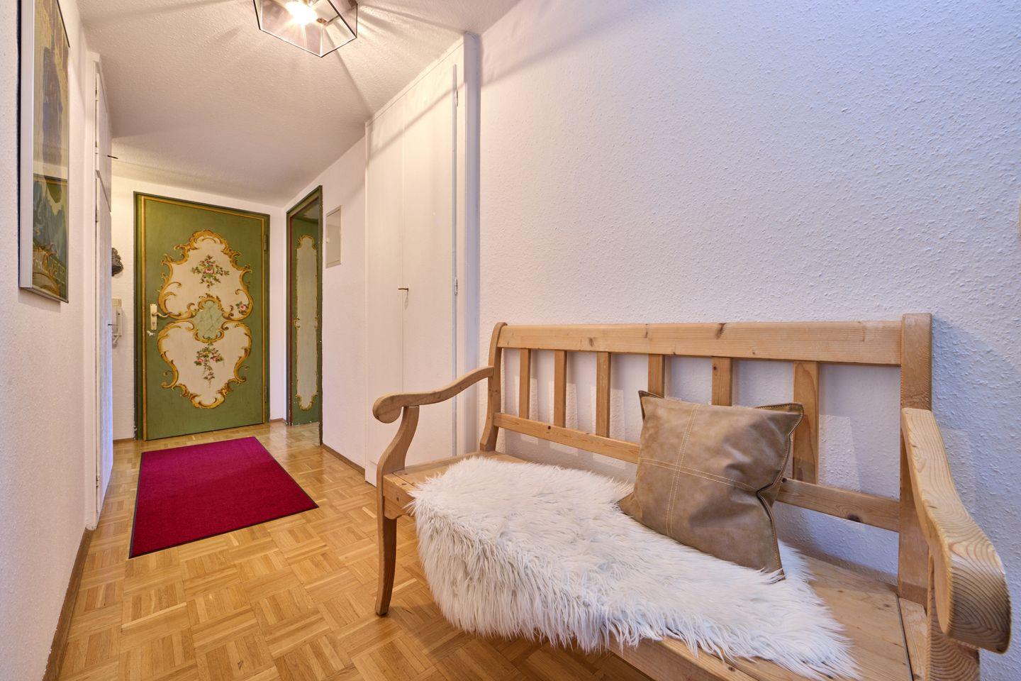 Die Wohnung liegt sehr ruhig, ideal für alle, die nach Erholung und Entspannung suchen. Gleichzeitig erreichen Sie in weniger als 10 Minuten zu Fuß sowohl malerische Wanderwege in der Umgebung, als auch die lebhafte Partenkirchner Fußgängerzone, mit ihren diversen Einkaufsmöglichkeiten. Ein sonniger Balkon lädt dazu ein, die Seele baumeln zu lassen und die frische Bergluft zu genießen.