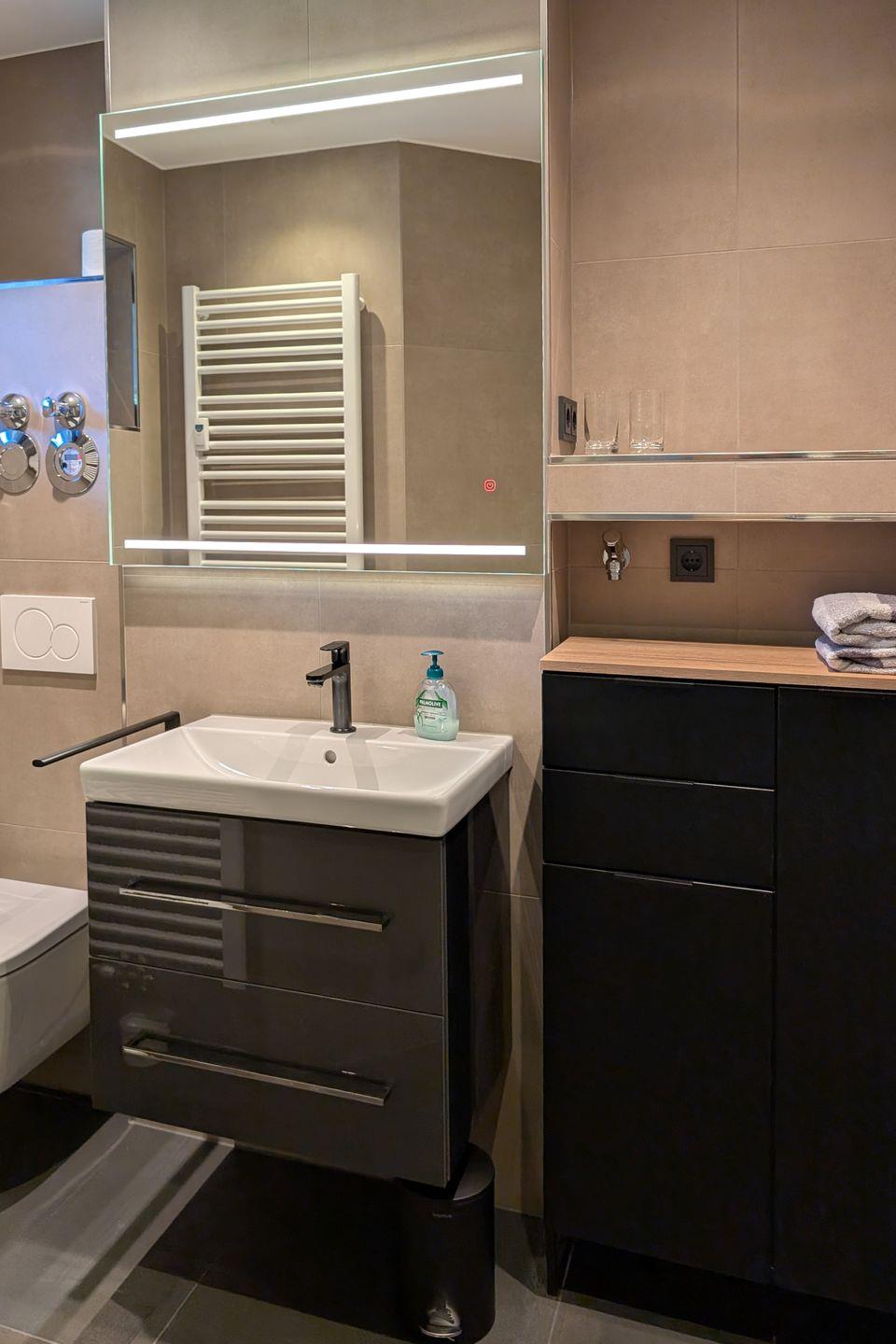 Das moderne Badezimmer ist mit Dusche ausgestattet; kostenfreies WLAN ist selbstverständlich vorhanden. Praktisch für längere Aufenthalte: Waschmaschine und Trockner stehen im gemeinschaftlichen Waschkeller zur Verfügung. Ob aktiver Bergurlaub, Skiwochenende oder entspannte Auszeit zu zweit – „FreiBlick“ verbindet modernes Wohnen mit alpiner Atmosphäre und einer Lage, die Garmisch-Partenkirchen angenehm nah und erlebbar macht.