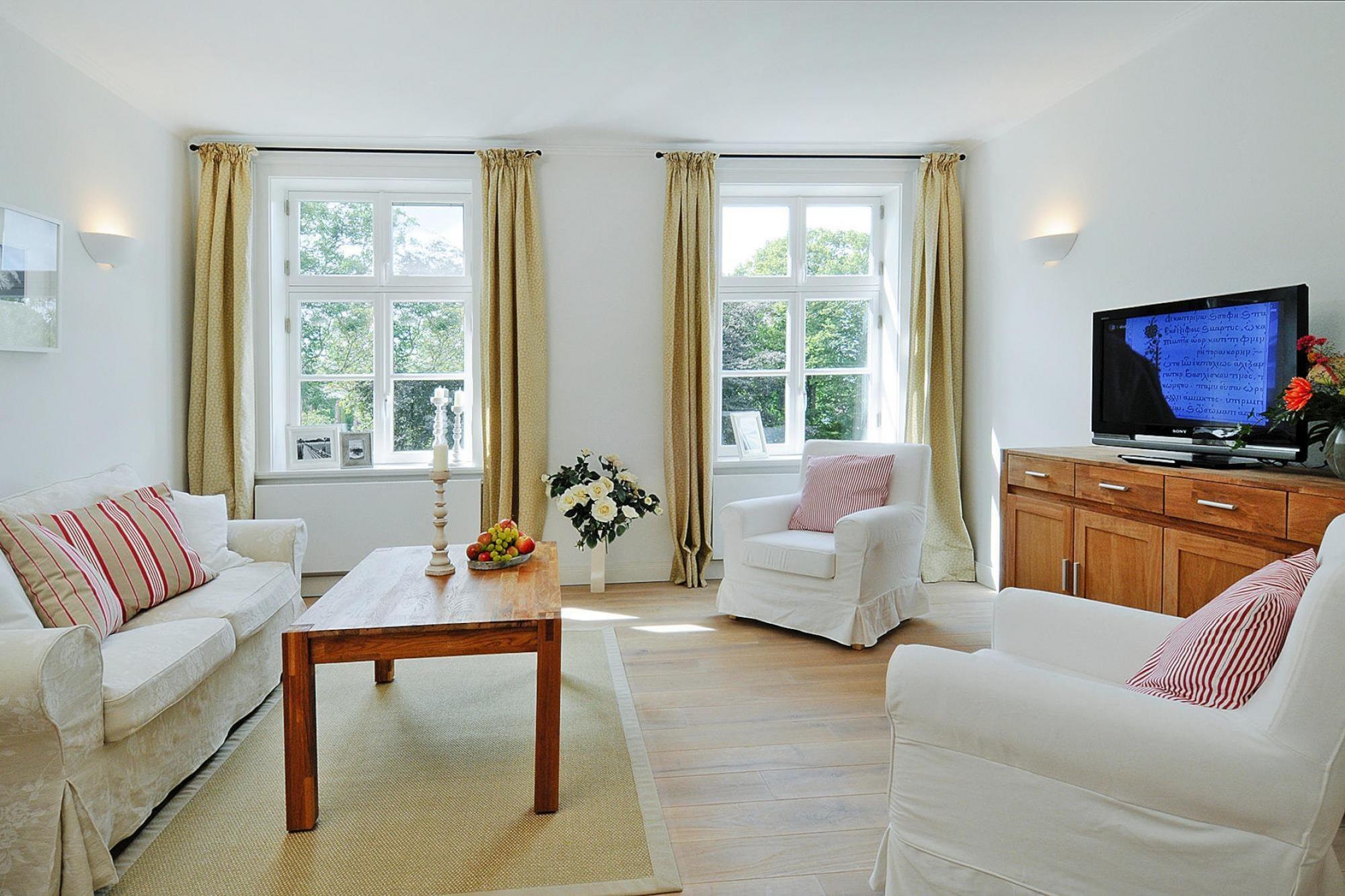Luksuriøse 5-stjernede ferielejligheder i det renoverede Zicker-landsted på den idylliske Zudar-halvø i den sydlige del af Rügen. Du bor kun 600 m fra Østersøen, midt i fredelig, skovklædt natur. Herregården, bygget i anden halvdel af 1800-tallet, og godsets tidligere gård ligger lige ved siden af hinanden i godsets 16.000 kvadratmeter store park. Den relativt uberørte halvø Zudar er omgivet af flere vandområder: Rügischer Bodden, som er en del af Greifswalder Bodden, Schoritzer Wiek og Strelasund, en arm af Østersøen. Detaljer: Forbrugsbaserede energiomkostninger, sengelinned, håndklæder, slutrengøring Aktiviteter i nærheden: Sauna og fitness på landet. Du kan også låne en bog på ejendommens bibliotek og slappe af på solterrassen. Eller slentre og slentre gennem den smukke park, hvis træer giver vidunderlig skygge på varme, solrige dage. Den uspolerede strækning på Zudar-halvøen er særlig ideel til afslappende gåture, vandreture og cykelture. På kun 10 minutter er du ved vandet Ikke egnet til personer med nedsat mobilitet