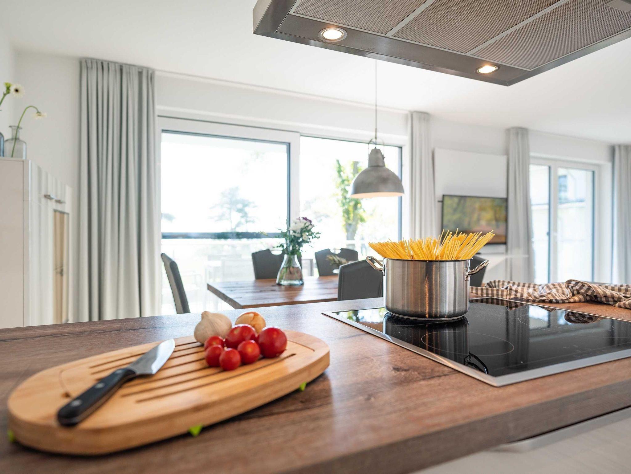 Alle Terrassenwohnungen und Appartements sind mit viel Liebe zum Detail in hochwertiger Ausstattung eingerichtet. Von großen Rasenflächen und ebenen Gehwegen umgeben, stehen unsere Ferienhäuser auf die Haffküste ausgerichtet und auf einer weitflächigen Außenanlage zueinander. Unsere Haffterrassen laden mit Sitzgelegenheiten an der Steilküste zum Entspannen bei einem Glas Wein ein.