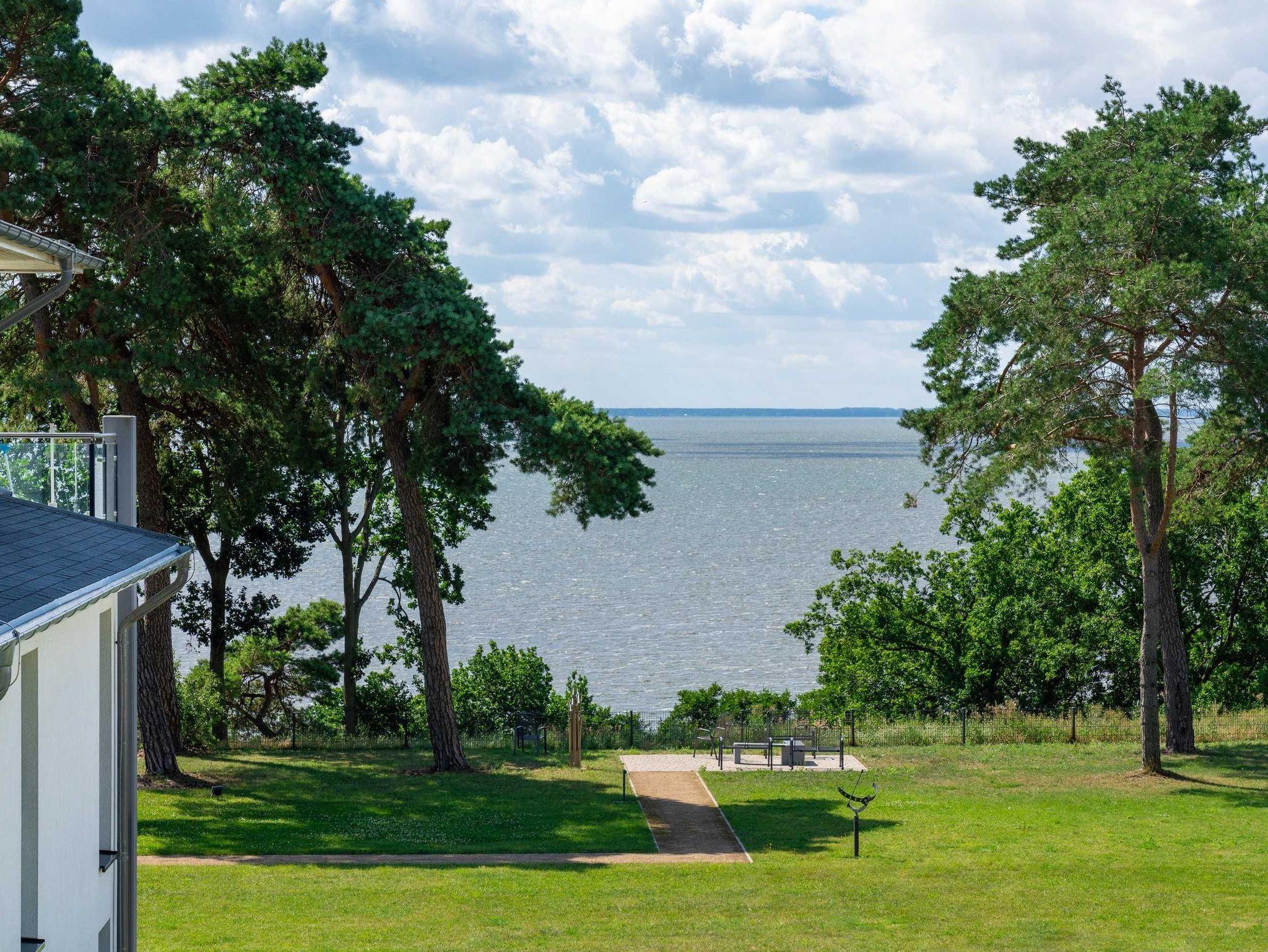 Unsere Ferienwohnanlage bietet von großen Sonnenterrassen ein traumhaftes Panorama auf das direkt vor uns gelegene Stettiner Haff, das in seiner Weite größer als der Bodensee ist. Der fantastische Blick auf das funkelnde Meer wird Sie verzaubern.