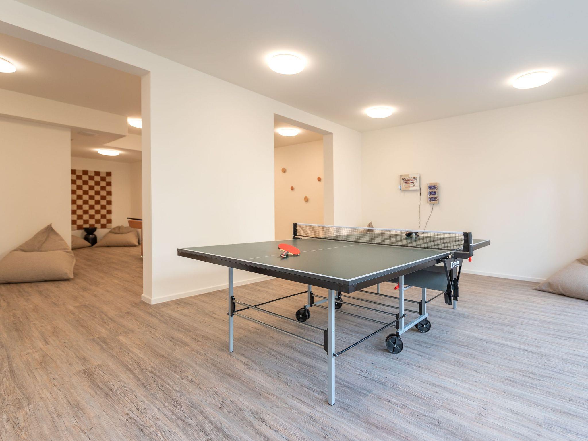 Entspannung pur erwartet Sie im hauseigenen Wellnessbereich unter dem Dach: Zwei Saunen, ein stilvoller Ruheraumund eine Dachterrasse mit Ausblick sorgen für erholsame Momente. Aktive Gäste freuen sich über den kleinen Fitnessraum im Untergeschoss sowie den großzügigen Gemeinschaftsbereich mit Billard, Kicker, Tischtennis und Kinderspielecke alles kostenfrei nutzbar.