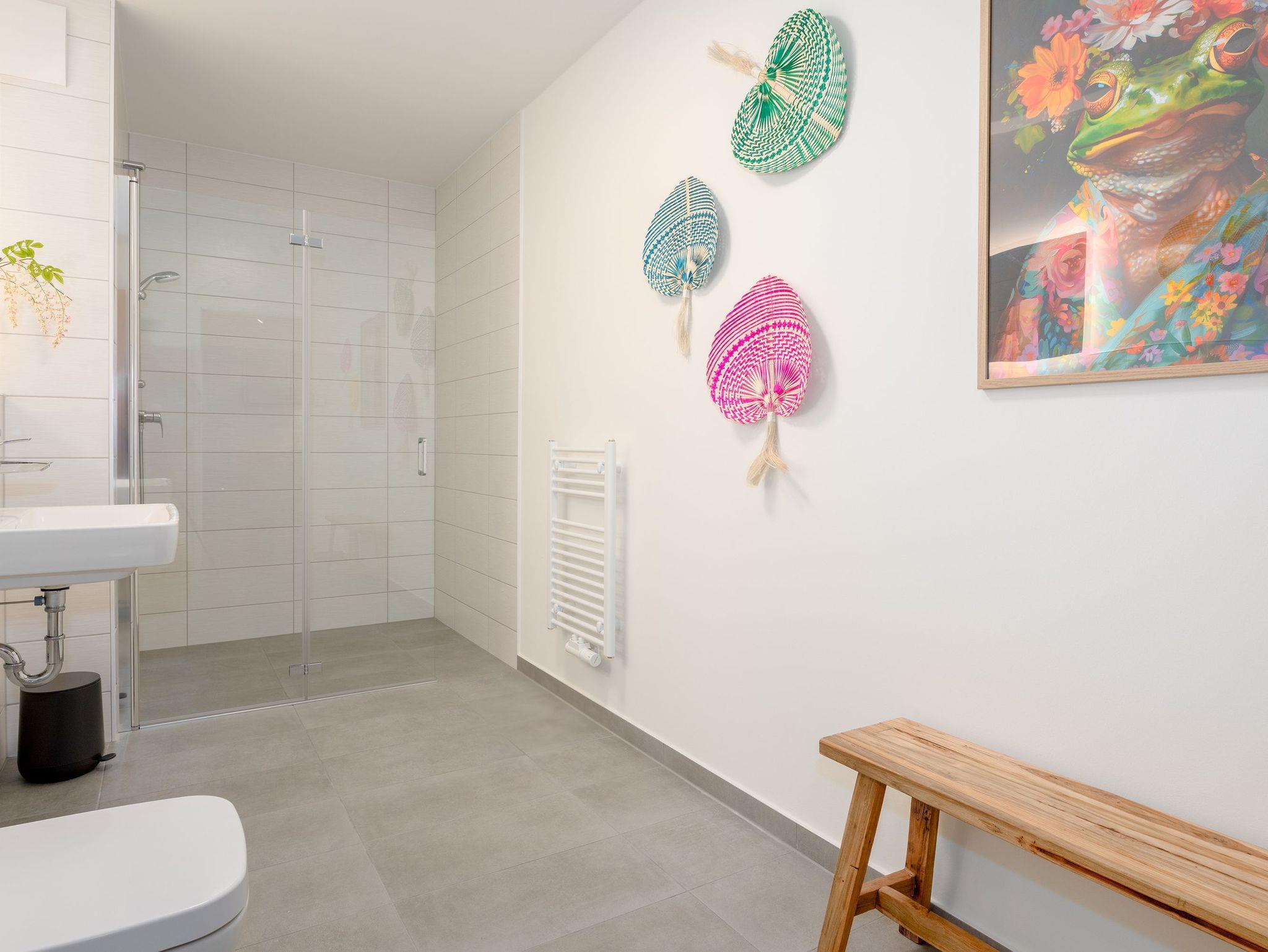 Im separaten Schlafzimmer mit komfortablem Doppelbett in Überlänge (2,10?m) finden Sie erholsamen Schlaf. Das moderne Duschbad bietet praktischen Komfort im Alltag. Der offene Wohnbereich mit Schlafcouch und direktem Zugang zur möblierten Sonnenterrasse lädt zu entspannten Stunden im Freien ein ob beim Frühstück oder einem ruhigen Abend mit Blick ins Grüne.