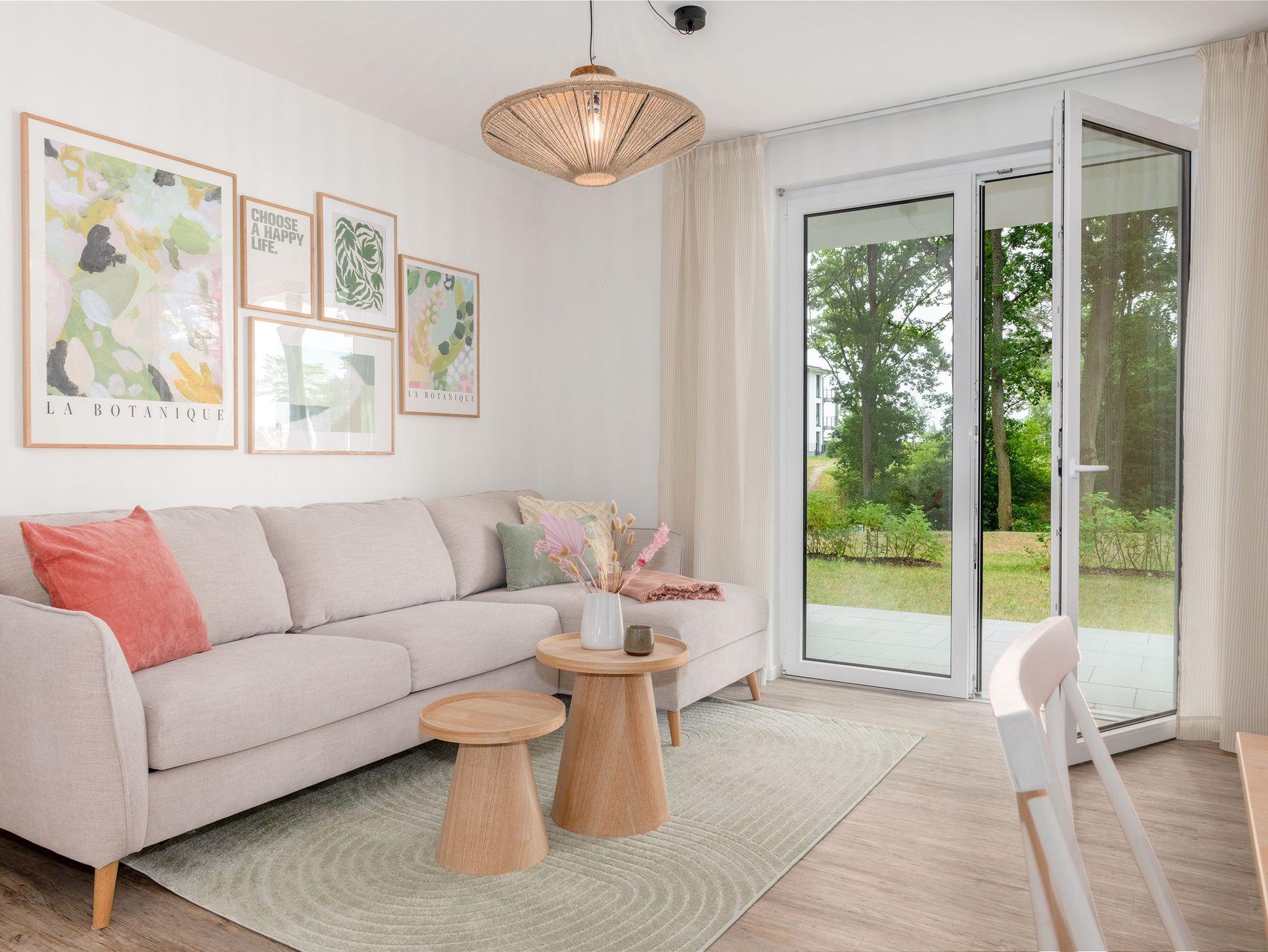 Die rauchfreie und hundefreundliche Wohnung ist ebenerdig gelegen und somit auch für Gäste mit Hund ideal. Sie wurde von der Usedomer Inneneinrichterin Julia de la Motte mit einem feinen Gespür für Ästhetik, Funktionalität und Wohlfühlatmosphäre eingerichtet. Warme Farben, hochwertige Materialien und ein durchdachtes Raumkonzept sorgen vom ersten Moment an für entspannte Urlaubstage.