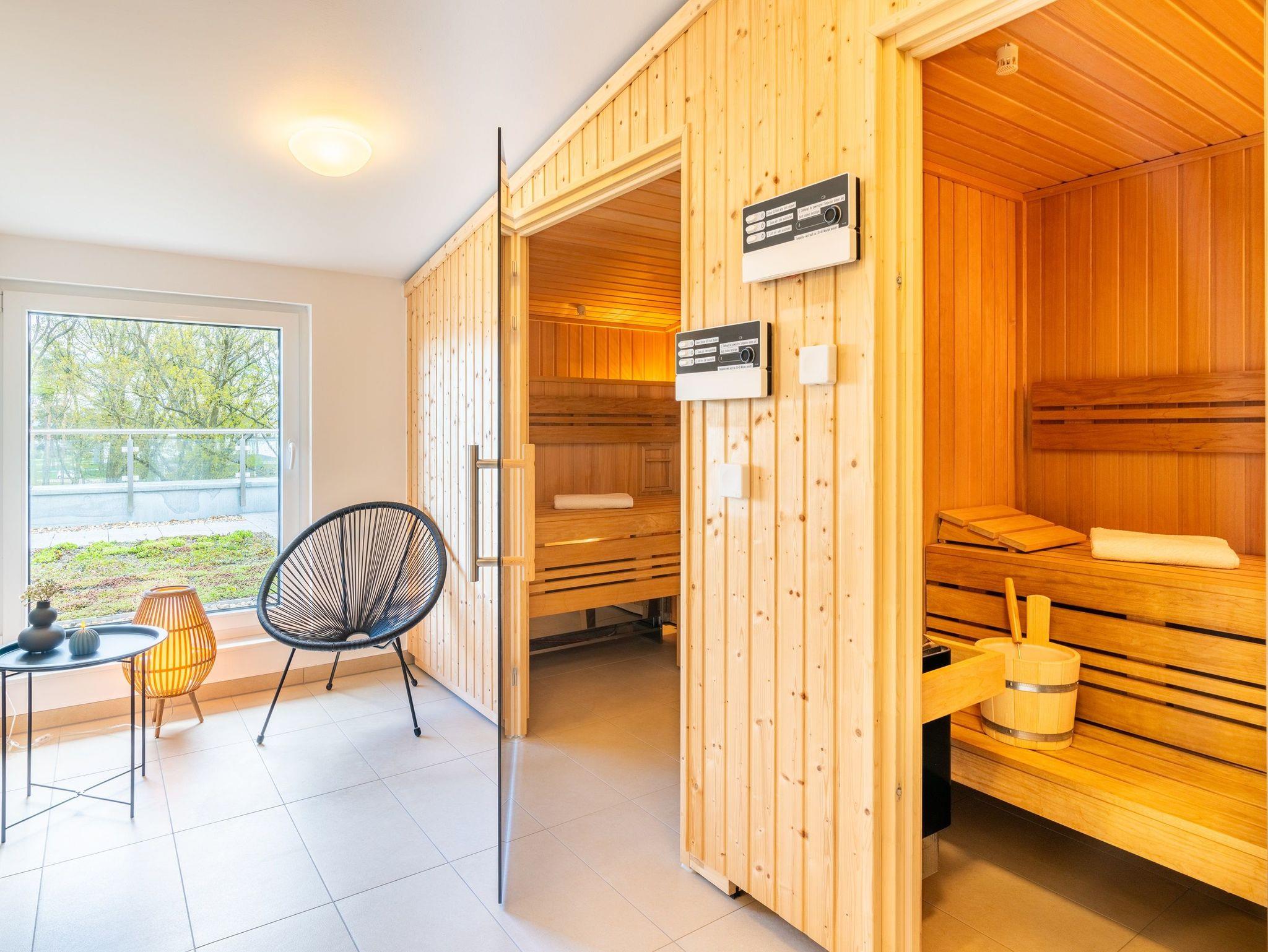 Weit ab von der Hektik und den Besuchermassen öffentlicher Wellnessangebote, finden Sie im Dachgeschoss des Hauses auf 190 m² die Ruhe, die Sie sich verdient haben. Entspannen Sie im hauseigenen, kostenfreien Wellnessbereich mit drei Saunen. Genießen Sie die klare Ostseeluft auf der großen angrenzenden Dachterrasse.