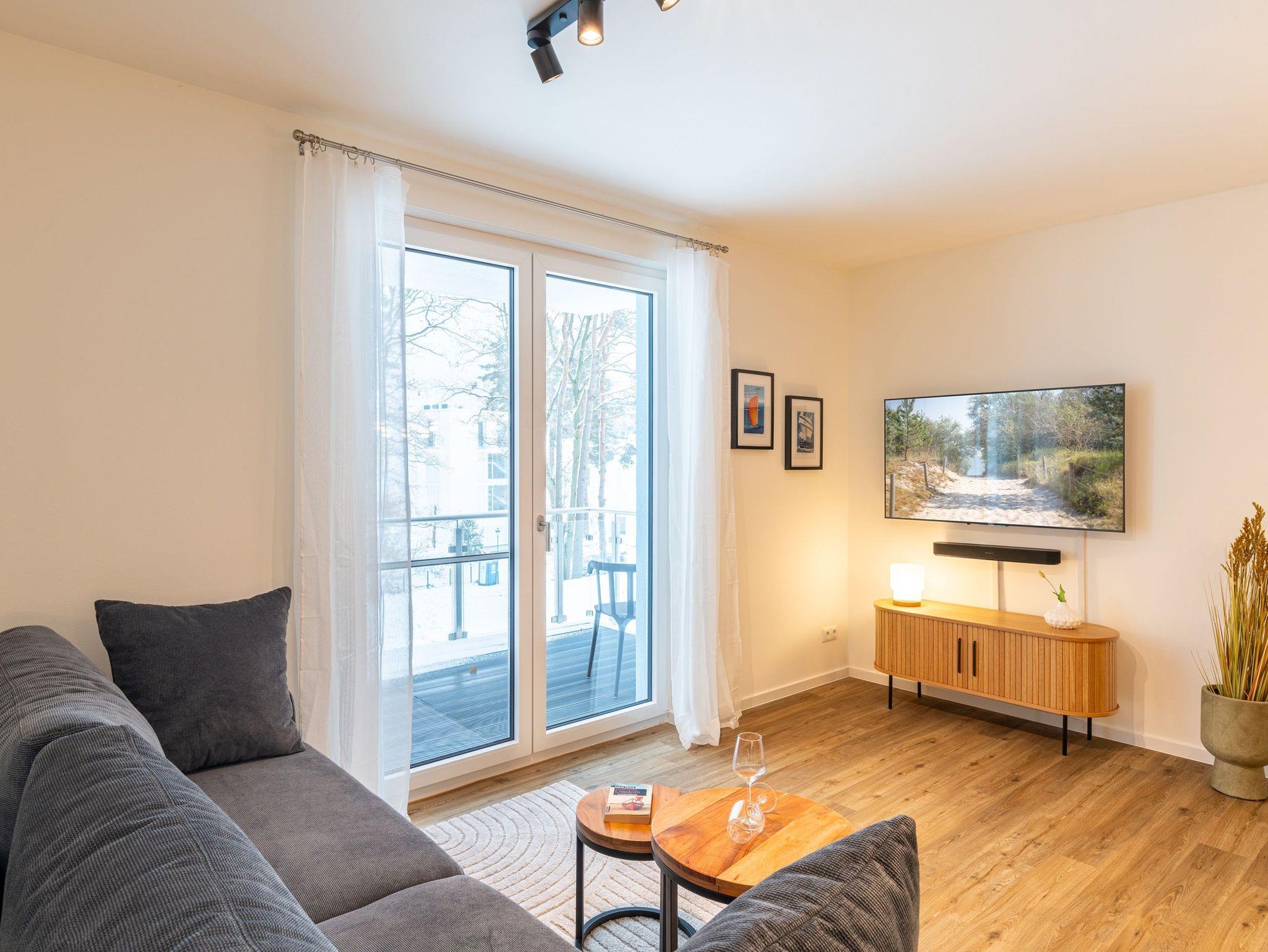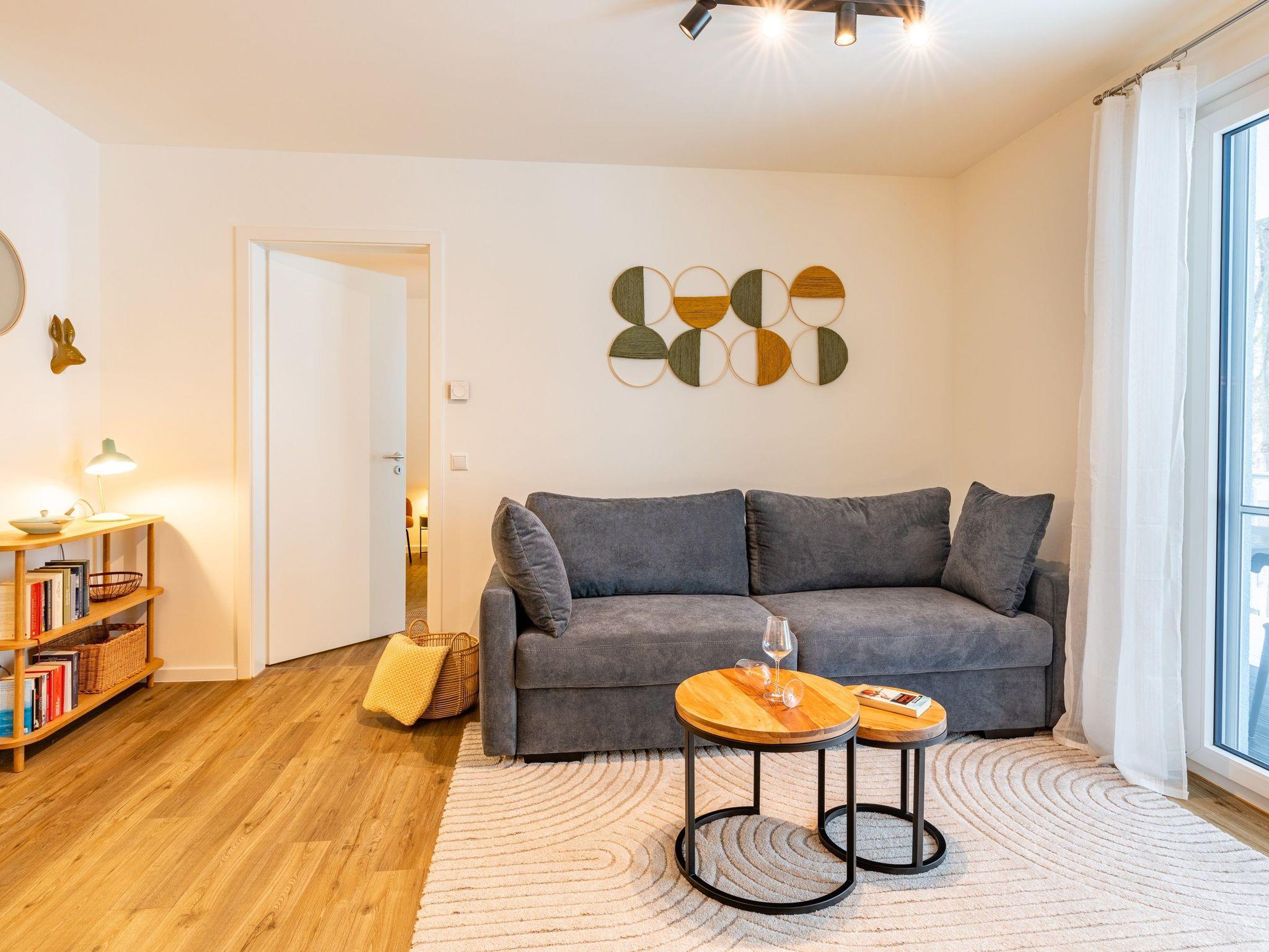Auf einer Wohnfläche von 61 m² finden drei Erwachsene und ein Kind bis 14 Jahre in dieser modern eingerichteten Ferienwohnung ausreichend Platz für einen entspannten Urlaub am Stettiner Haff auf Usedom.