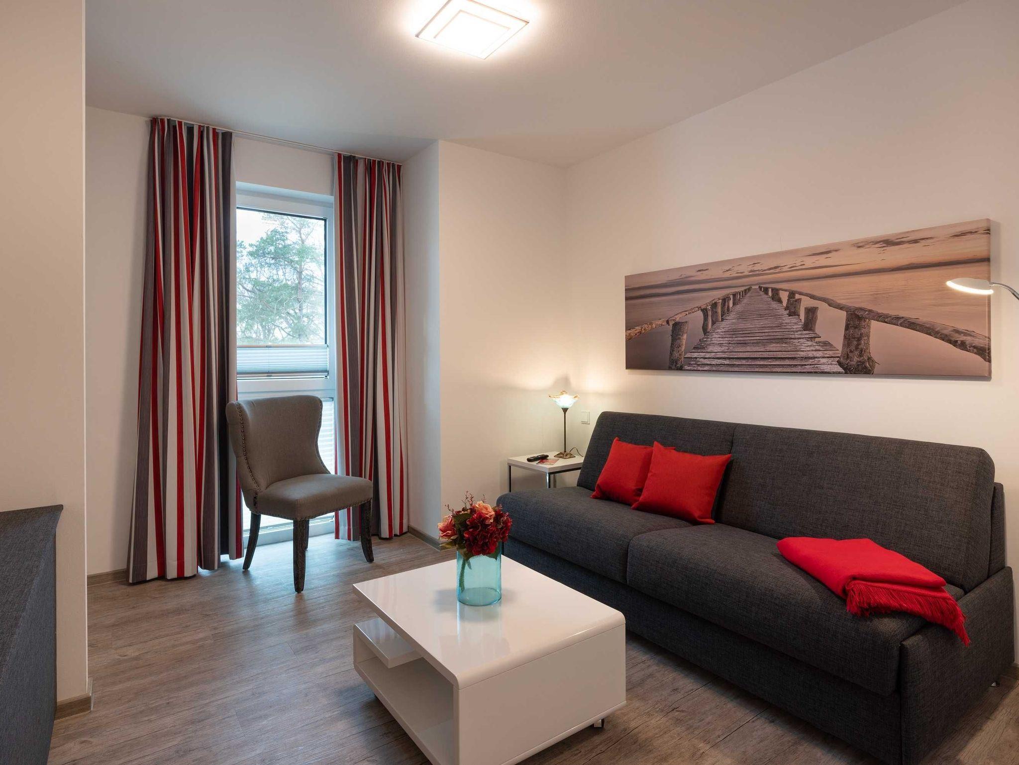 Alle Terrassenwohnungen und Appartements sind hochwertig und modern ausgestattet. Breite Rasenflächen mit angelegten Gehwegen umgeben unsere Ferienhäuser auf einer weitflächigen Außenanlage. Separierte Terrassen laden mit Sitzgelegenheiten an der Steilküste zum Verweilen ein.