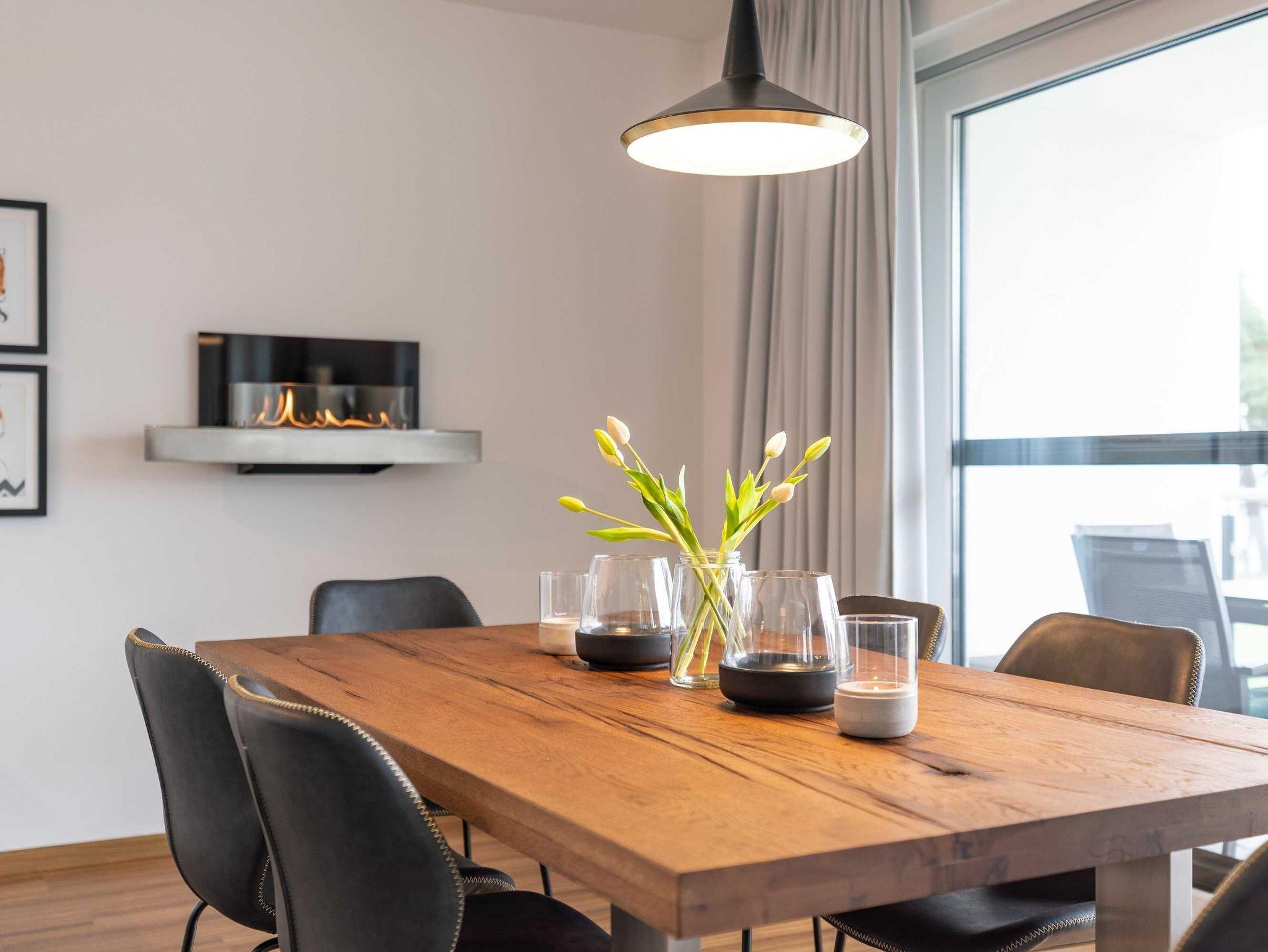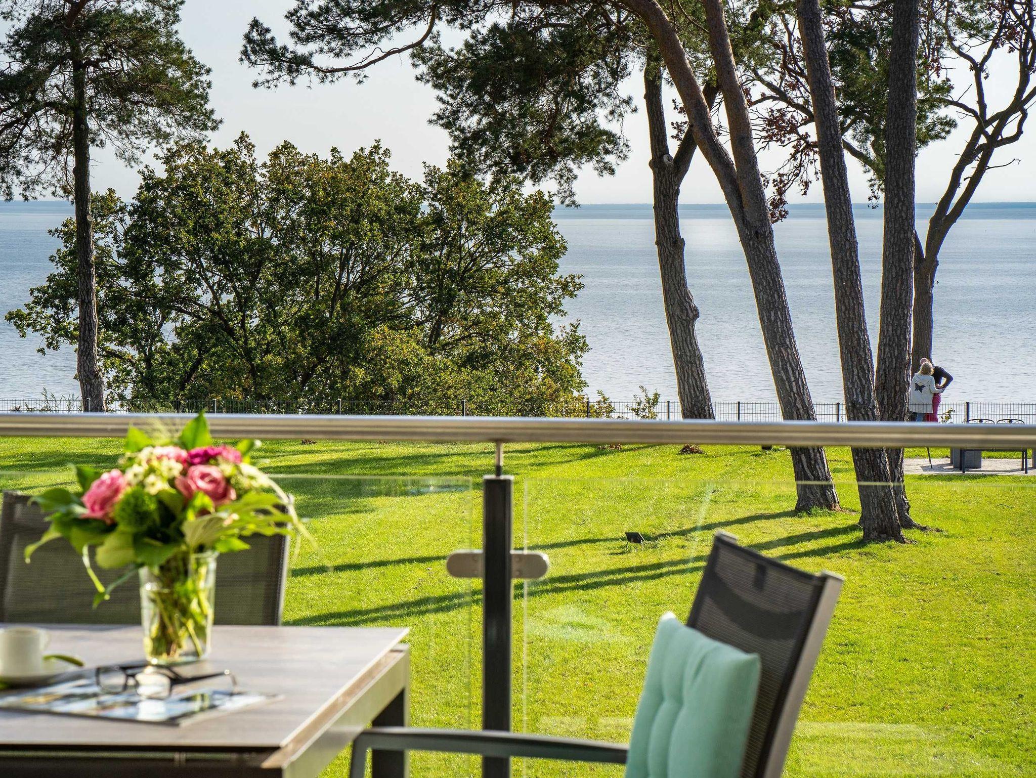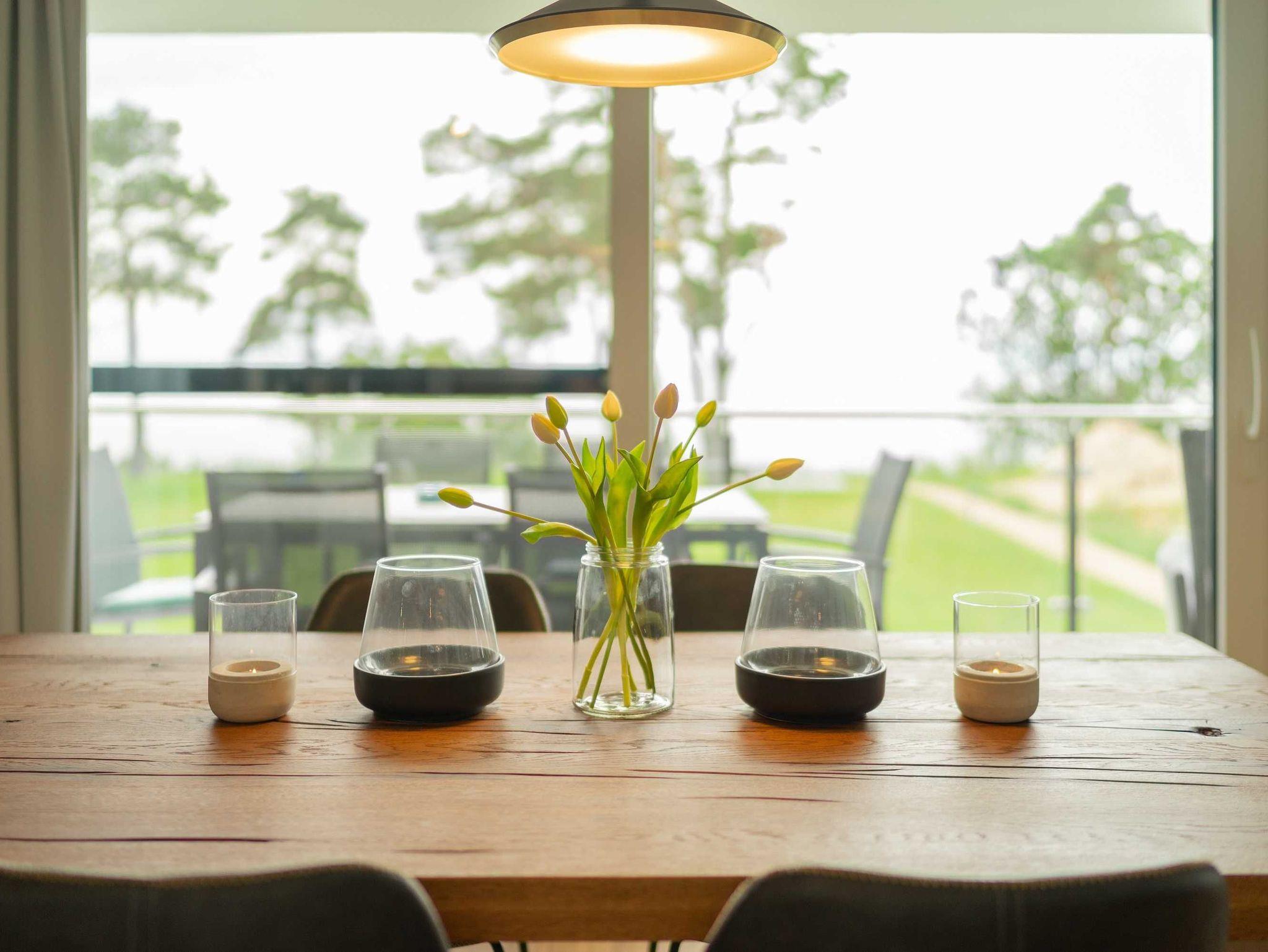 Schöne Ferienappartements, hochwertig ausgestattet im modernen Einrichtungsstil mit Terrassen auf ganzer Appartementbreite, bieten einen wunderschönen Blick auf das direkt vor uns gelegene Stettiner Haff. Erleben Sie die Sonne über dem Wasser vom Aufgehen bis zum Untergehen. Die funkelnden Wassersterne werden Sie entzücken.