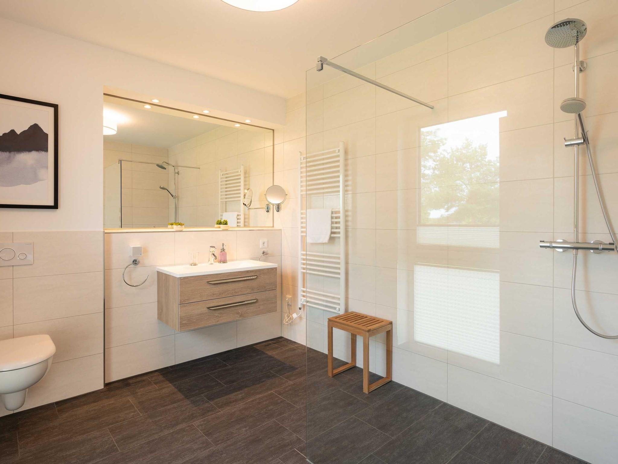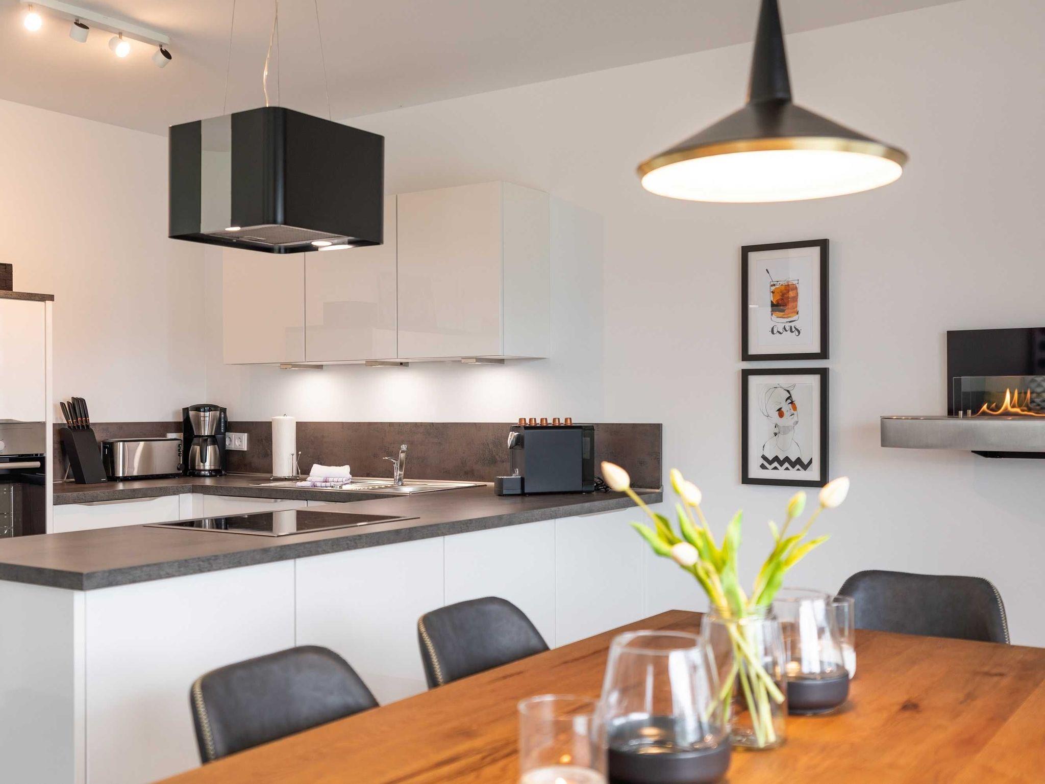 Diese luxuriöse 4-Zimmer-Wohnung im ersten Obergeschoss von Haus 4 (Aufzug vorhanden) mit Platz für maximal 6 Personen sowie einem Kleinkind bis 2 Jahre im Babybett verfügt über eine Wohnfläche von 119 m² und hat 3 Schlafzimmer sowie 2 voll ausgestattete Duschbäder. Die große Sonnenterrasse mit 17 m² liegt in idealer Süd-Ausrichtung. Die Wohnung ist modern eingerichtet mit offenem Wohn-Essbereich, großem Esstisch, Ledersofa sowie Smart-TV (inkl. Sky-Abo). Die hochwertig ausgestattete Küche, offen zum Wohnbereich, lässt keine Wünsche offen. Erholsamer Schlaf in den beiden Schlafzimmern mit Boxspringbetten und Smart-TV ist garantiert. Im dritten Schlafzimmer befindet sich ein bequemes Schlafsofa (Liegefläche: 1,80 x 2,00 m) und ein Smart-TV. Das Badezimmer en Suite ist mit einer begehbaren Dusche ausgestattet. Auf dem großen, überdachten Sonnenbalkon mit Essgruppe und zwei Relax-Sesseln, Fußhockern sowie einem Sonnenschirm können Sie die Seele baumeln lassen.