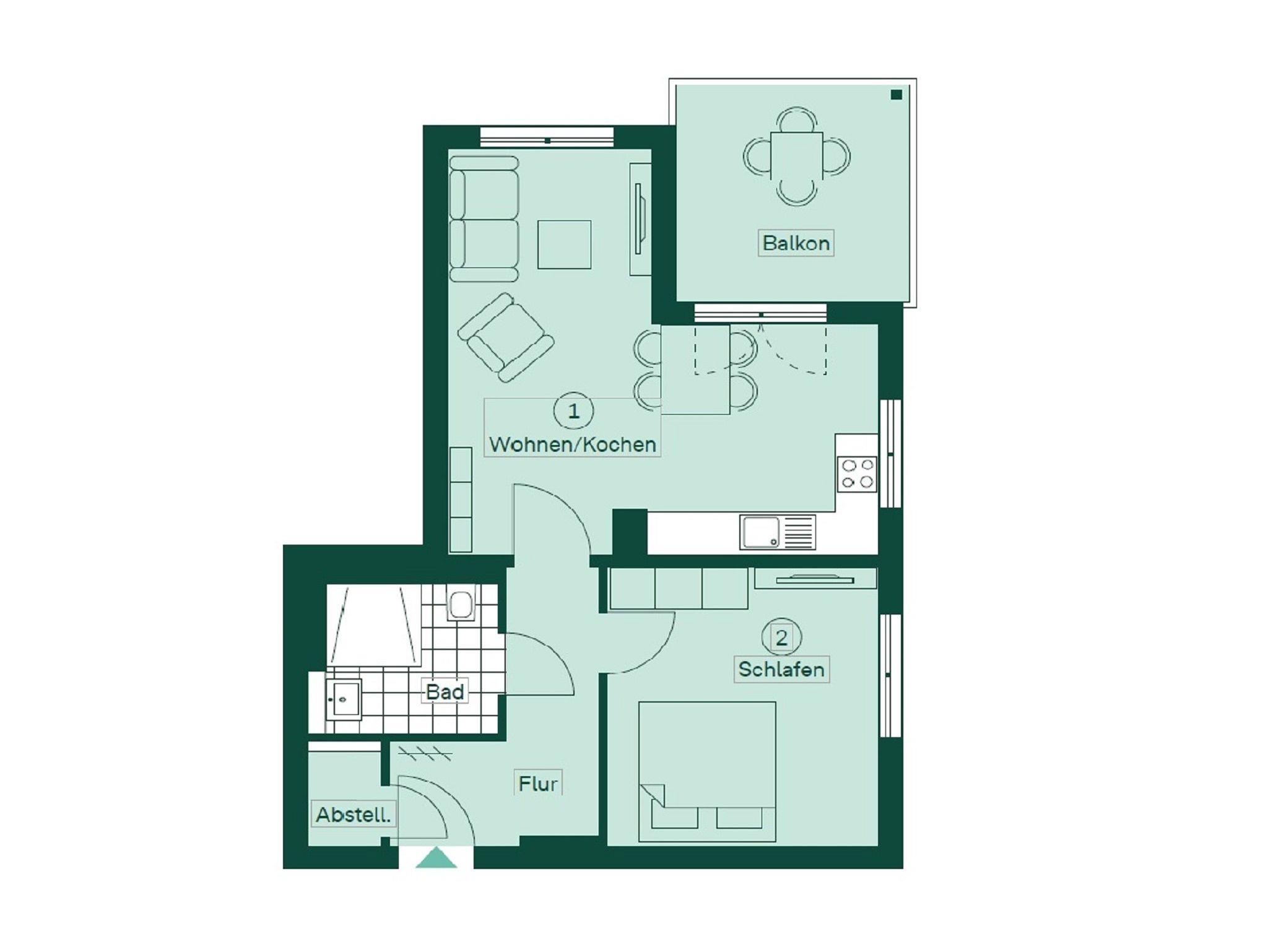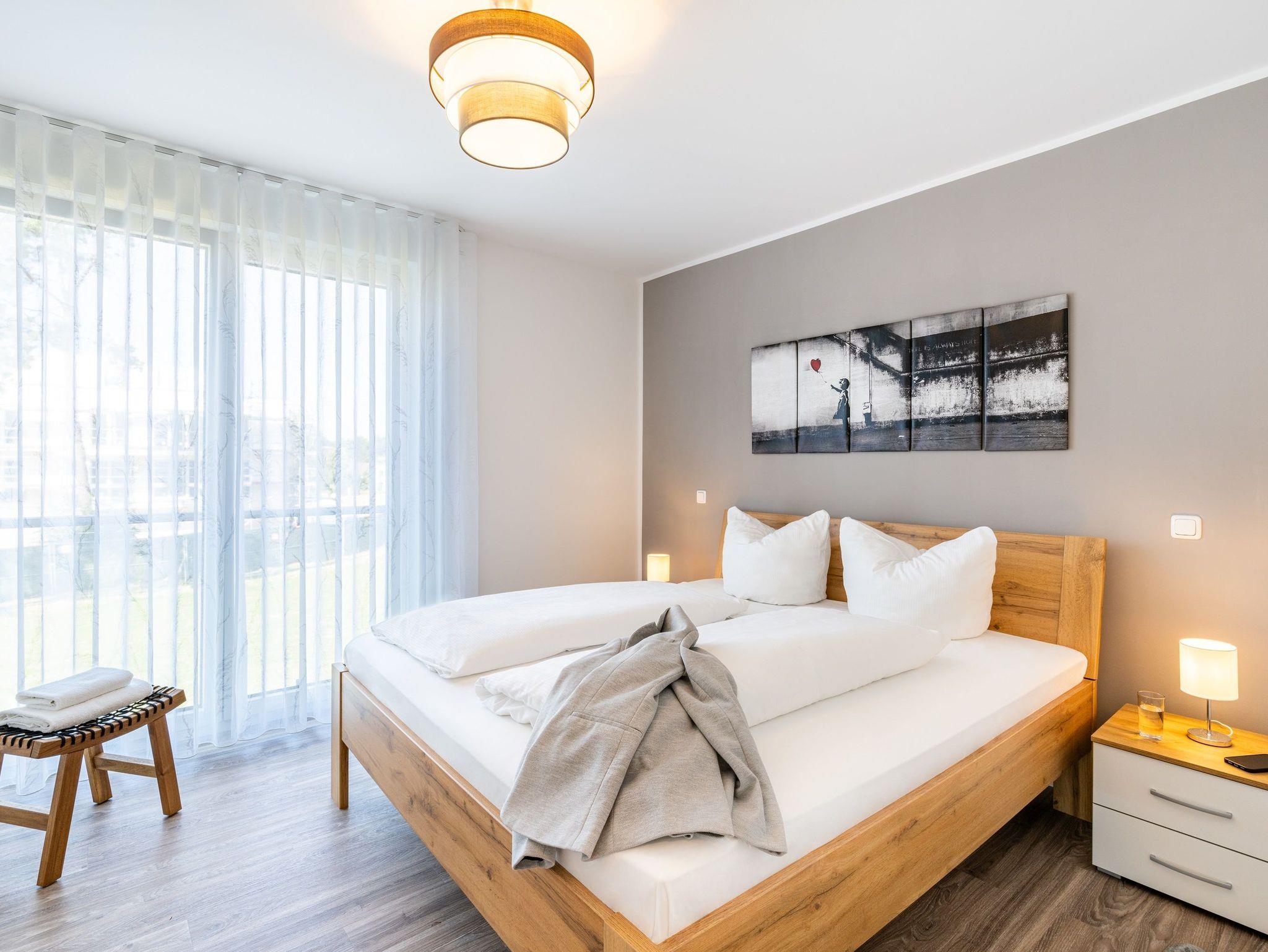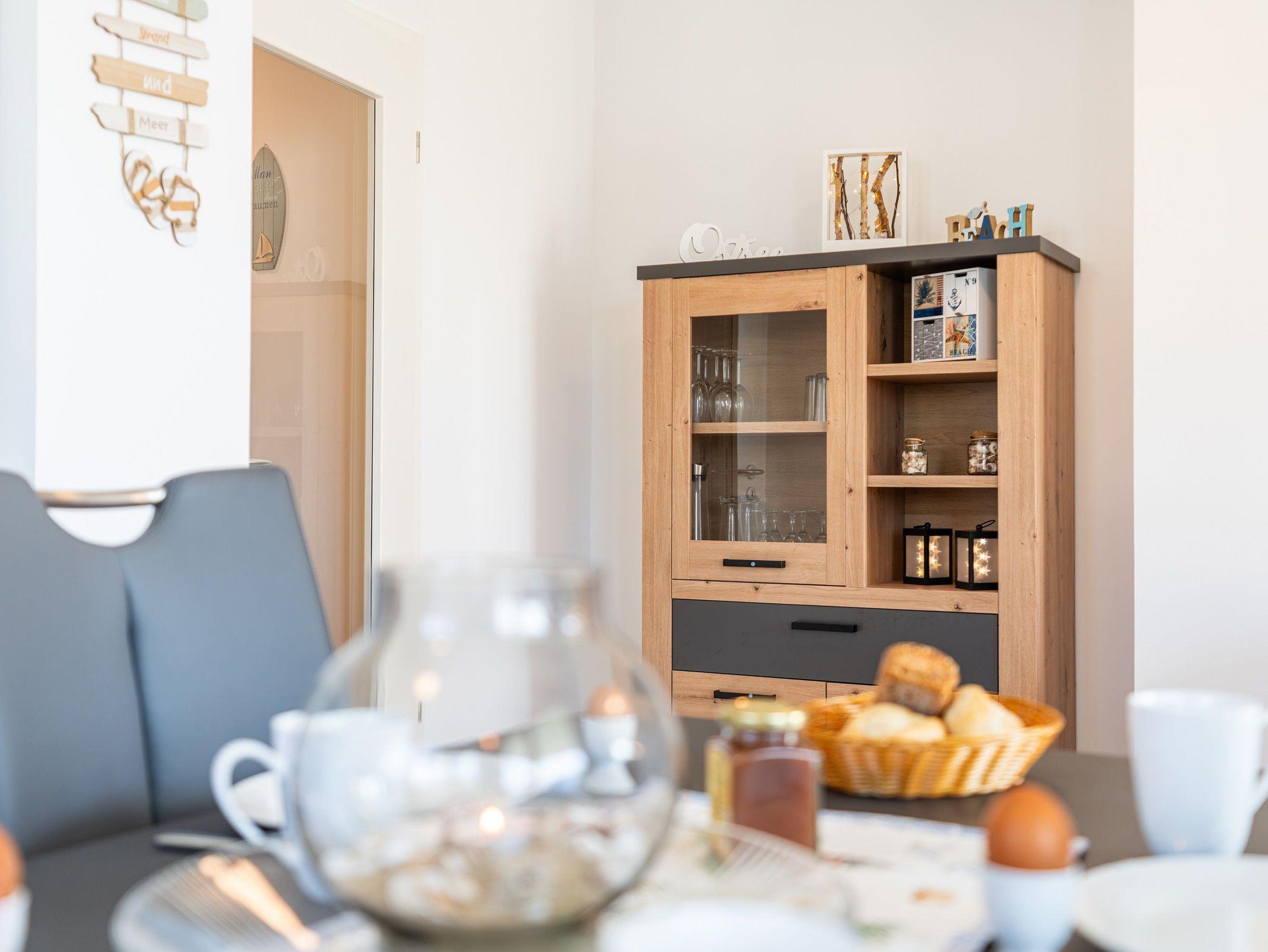 Auf einer Wohnfläche von 61 m² finden drei Erwachsene und ein Kleinkind bis zwei Jahre (im Babybett) in dieser modern eingerichteten Ferienwohnung ausreichend Platz für einen entspannten Urlaub am Stettiner Haff auf Usedom.