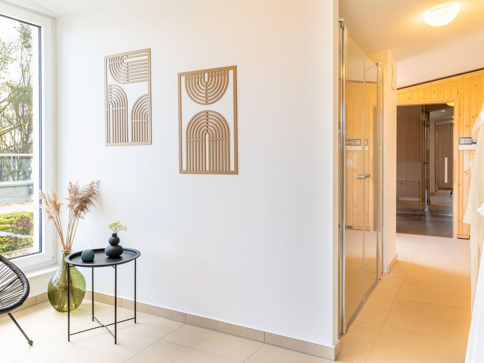 Weit ab von der Hektik und den Besuchermassen öffentlicher Wellnessangebote, finden Sie im Dachgeschoss des Hauses auf 190 m² die Ruhe, die Sie sich verdient haben. Entspannen Sie im hauseigenen, kostenfreien Wellnessbereich mit drei Saunen. Genießen Sie die klare Ostseeluft auf der großen angrenzenden Dachterrasse.