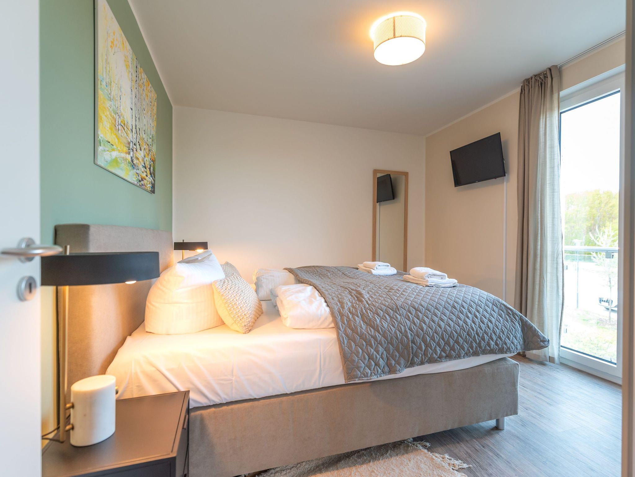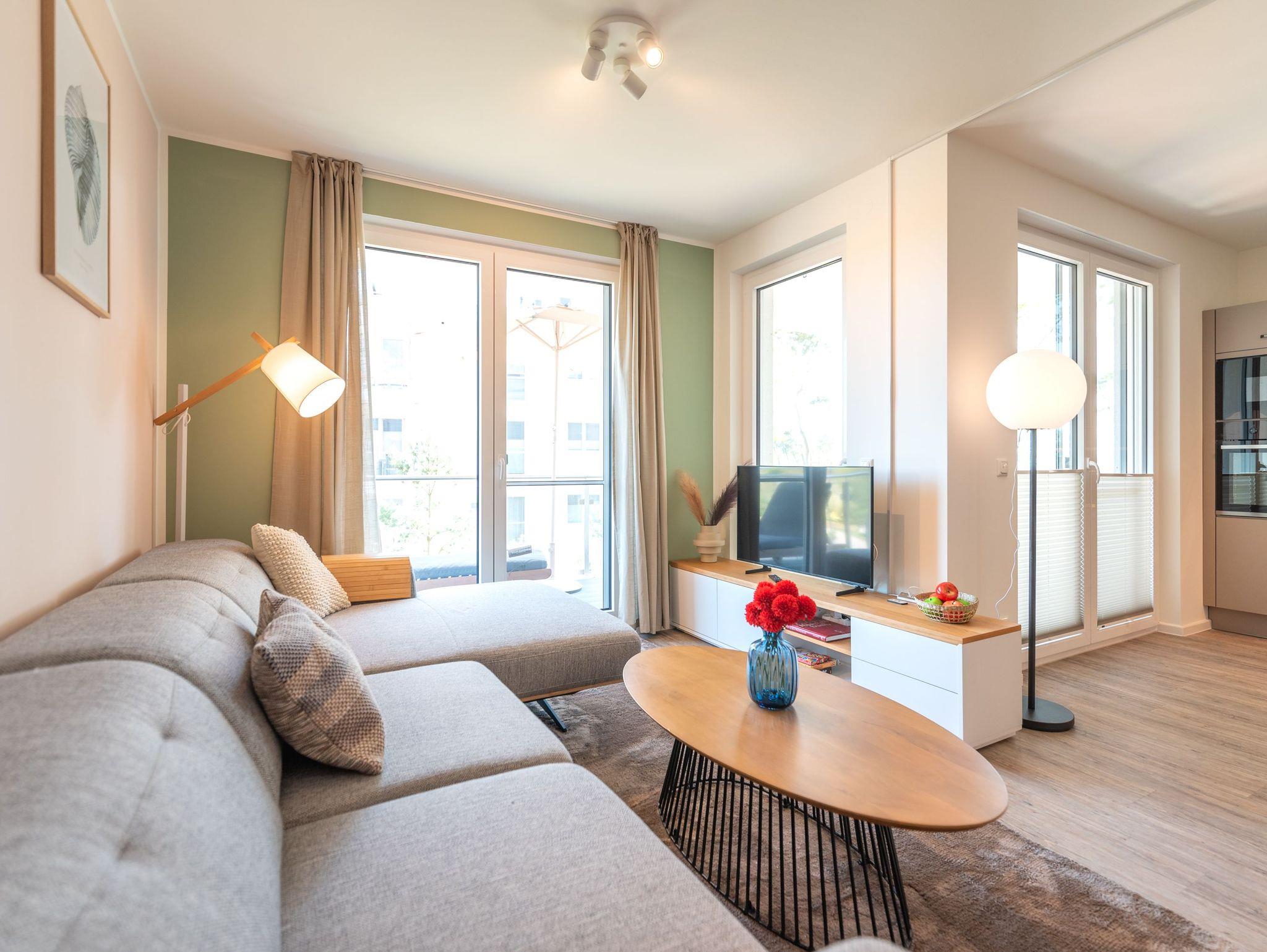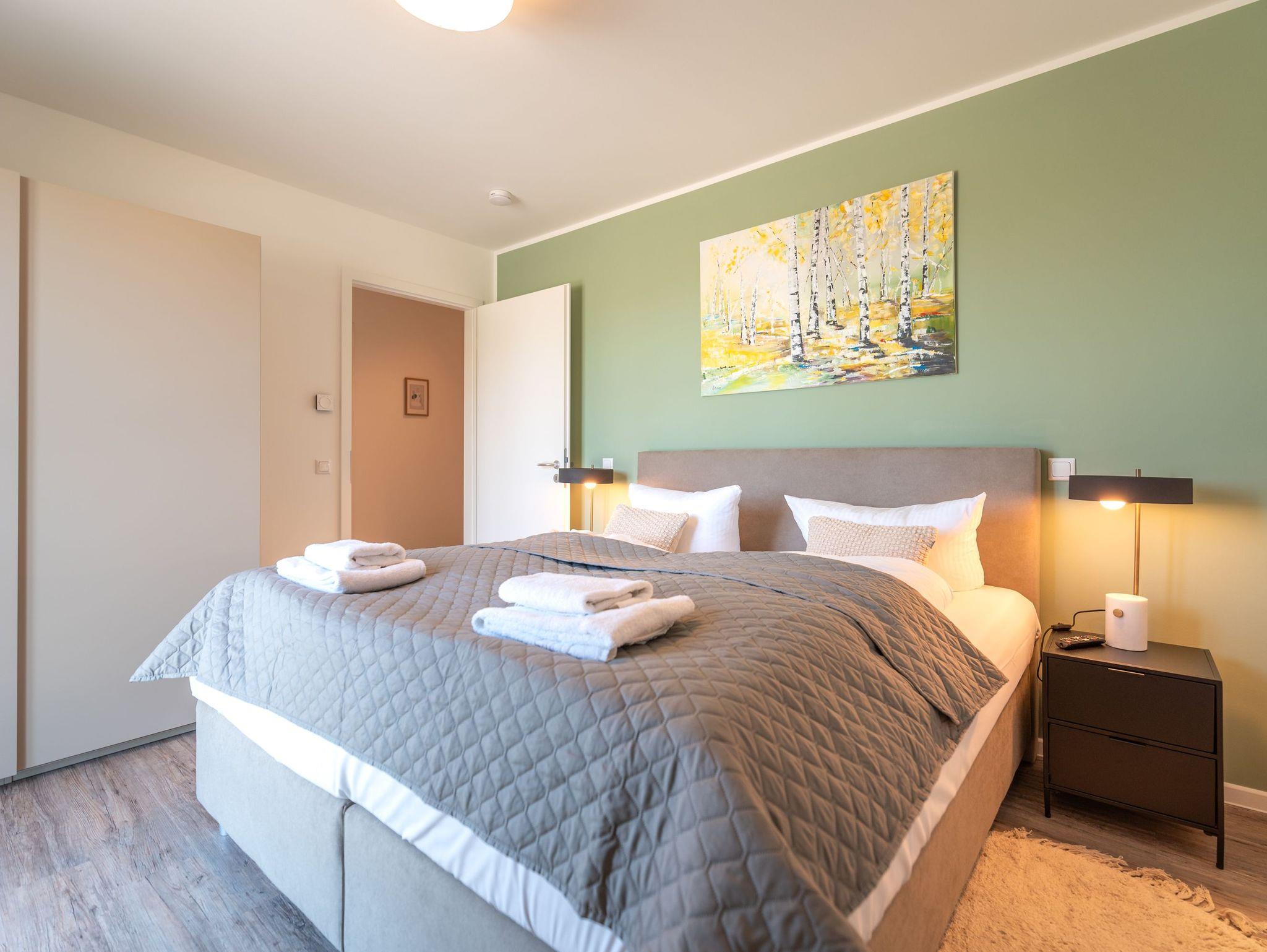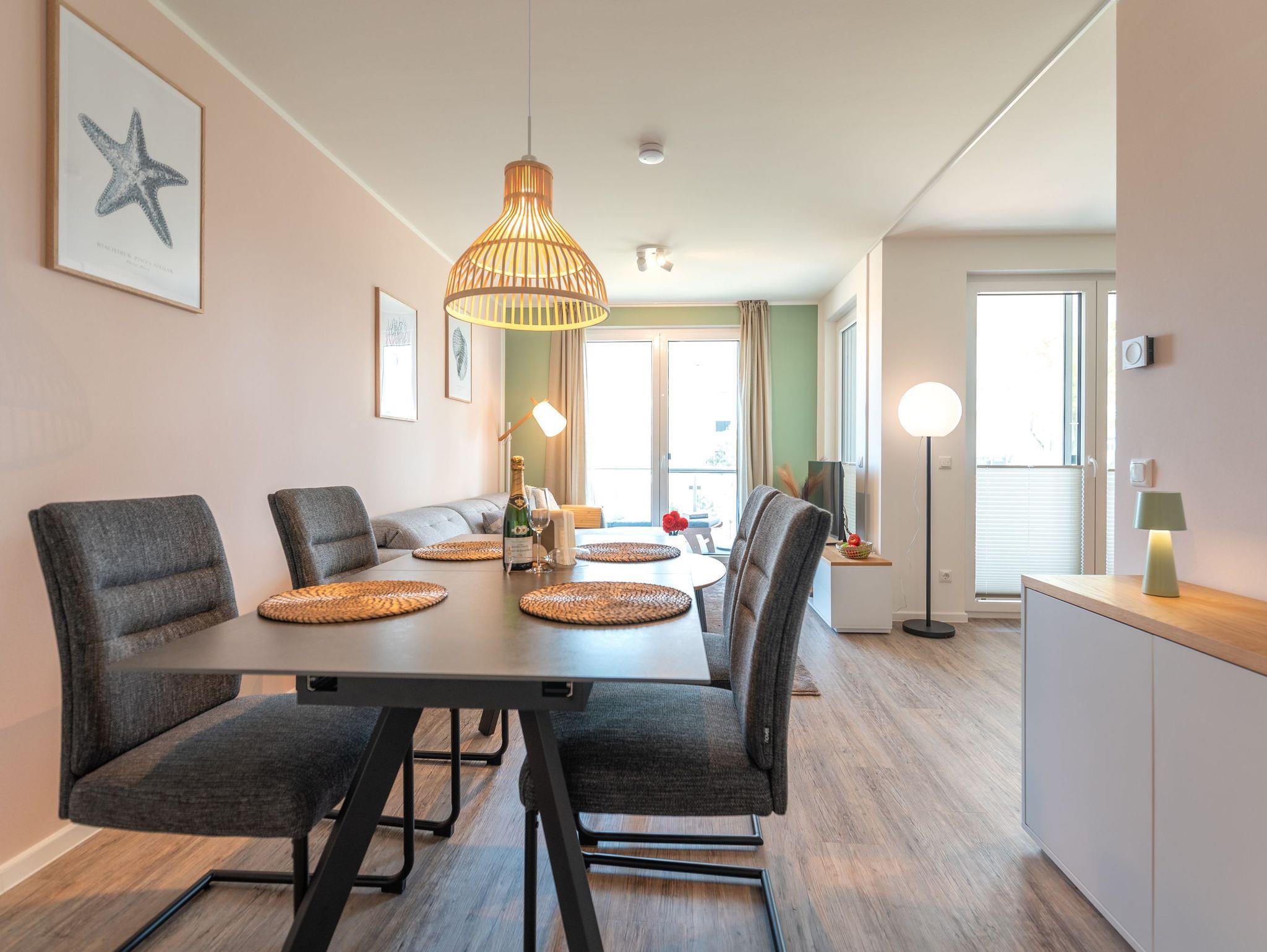 Willkommen in der Ferienwohnung Birkenberg, Ihrem stilvollen Rückzugsort im 1. Obergeschoss der modernen Ferienanlage Am Kiefernhain am Stettiner Haff. Die hochwertig ausgestattete 3-Raum-Wohnung bietet auf ca. 96?m² viel Platz für bis zu 4 Erwachsene und 2 Kleinkinder im Babybett und eignet sich perfekt für Familien oder befreundete Paare.
