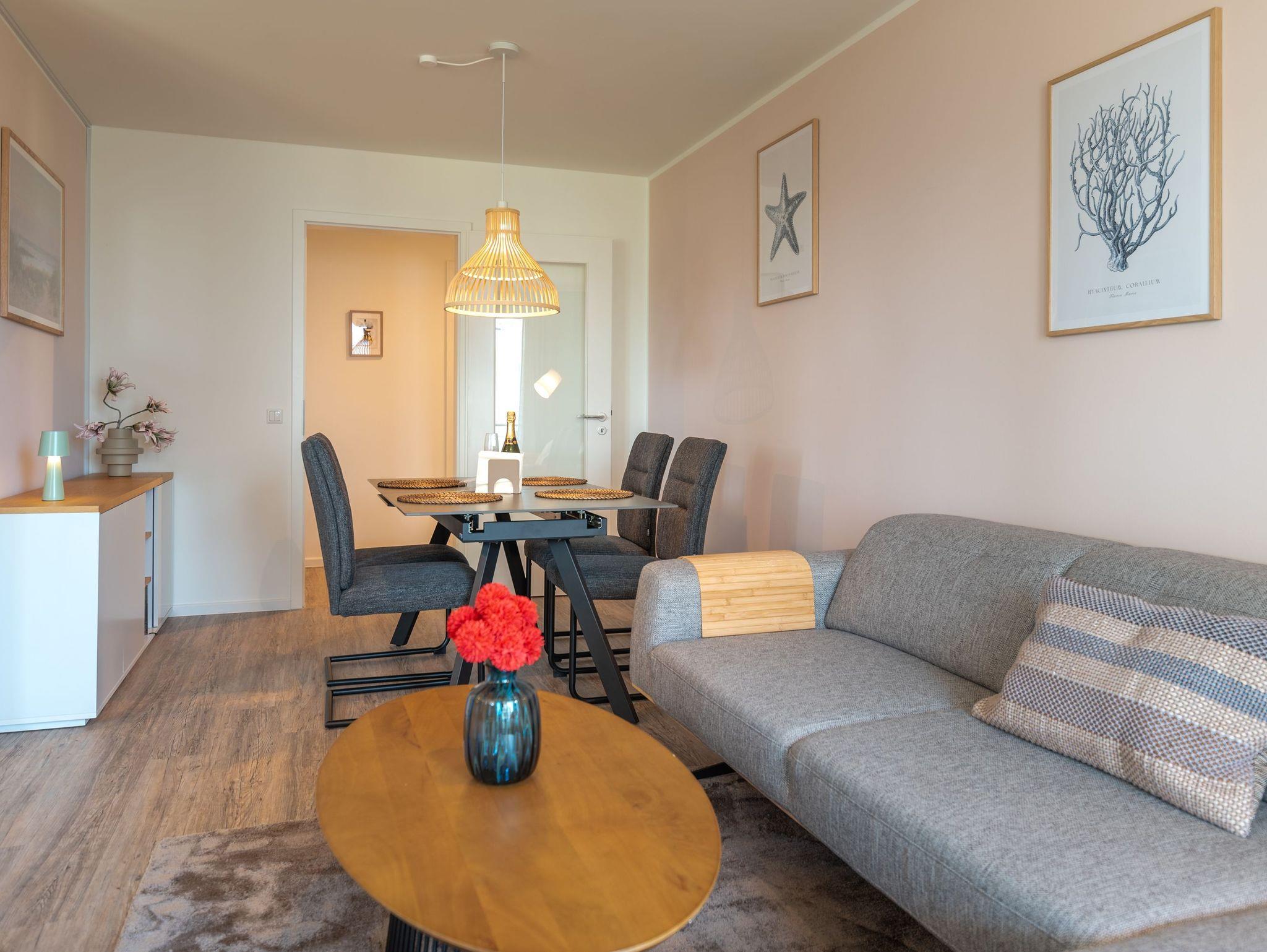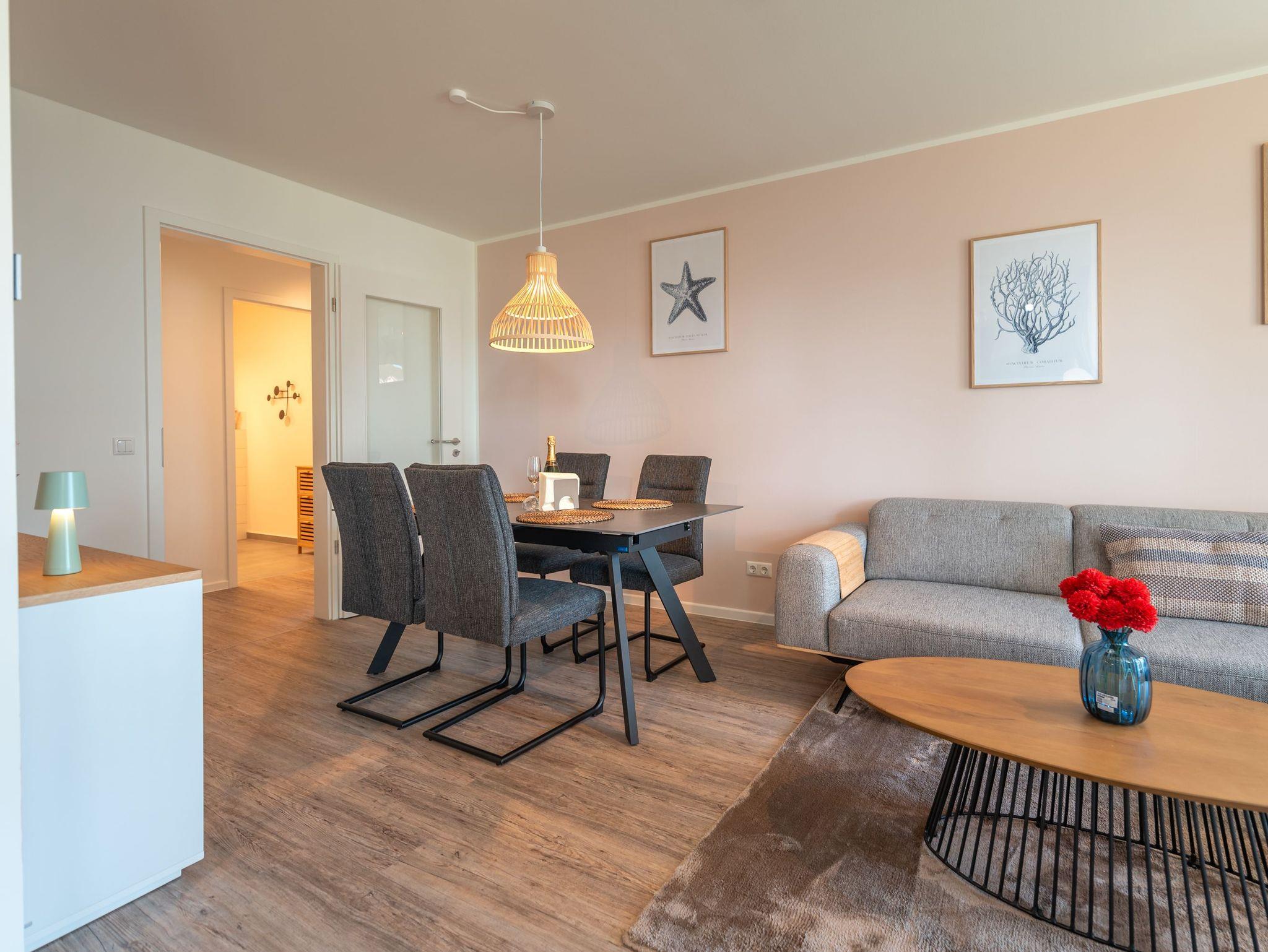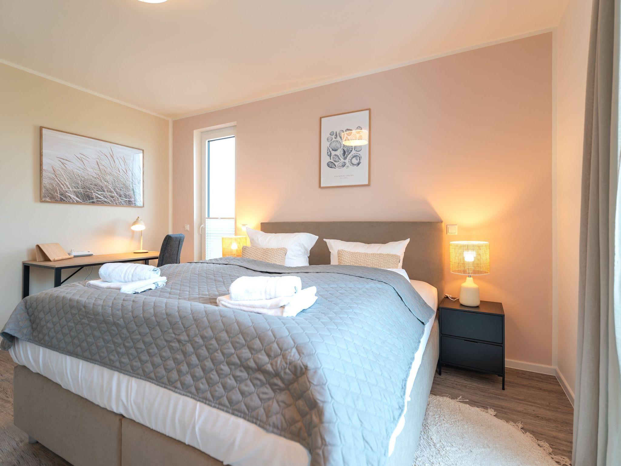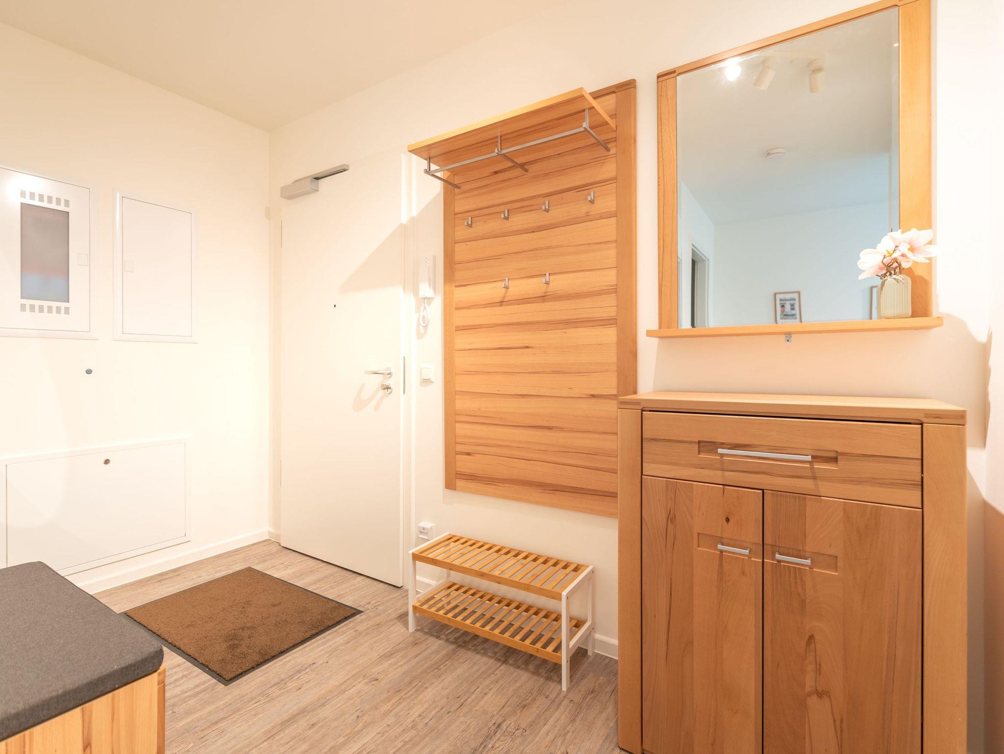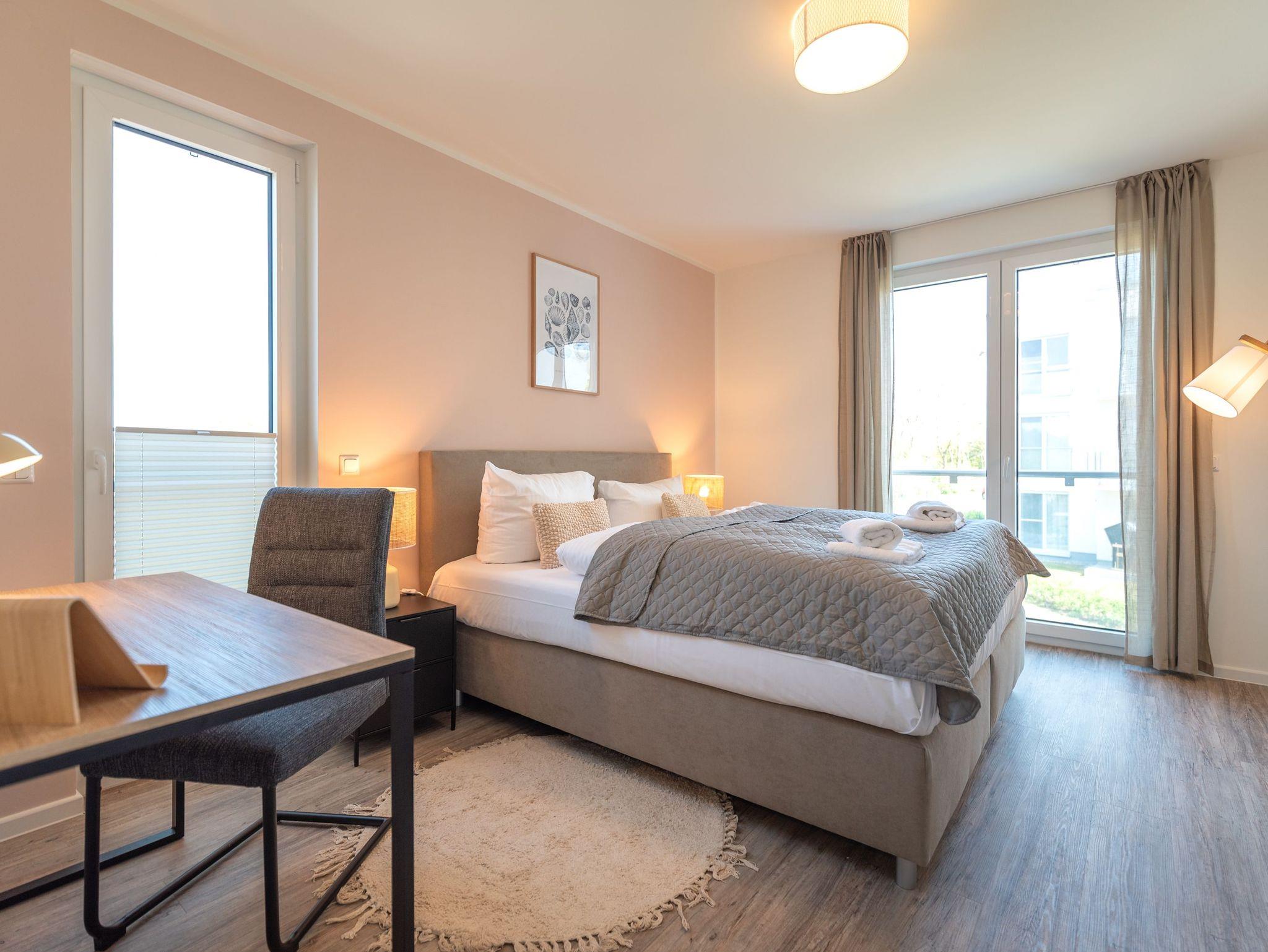 Willkommen in der Ferienwohnung Birkenberg, Ihrem stilvollen Rückzugsort im 1. Obergeschoss der modernen Ferienanlage Am Kiefernhain am Stettiner Haff. Die hochwertig ausgestattete 3-Raum-Wohnung bietet auf ca. 96?m² viel Platz für bis zu 4 Erwachsene und 2 Kleinkinder im Babybett und eignet sich perfekt für Familien oder befreundete Paare.